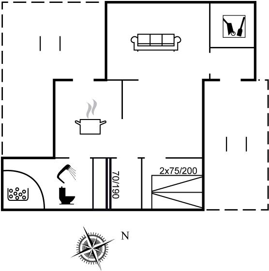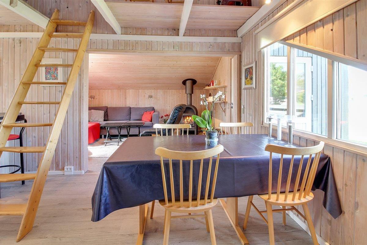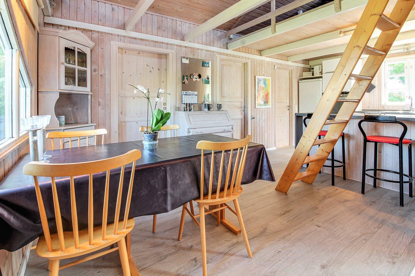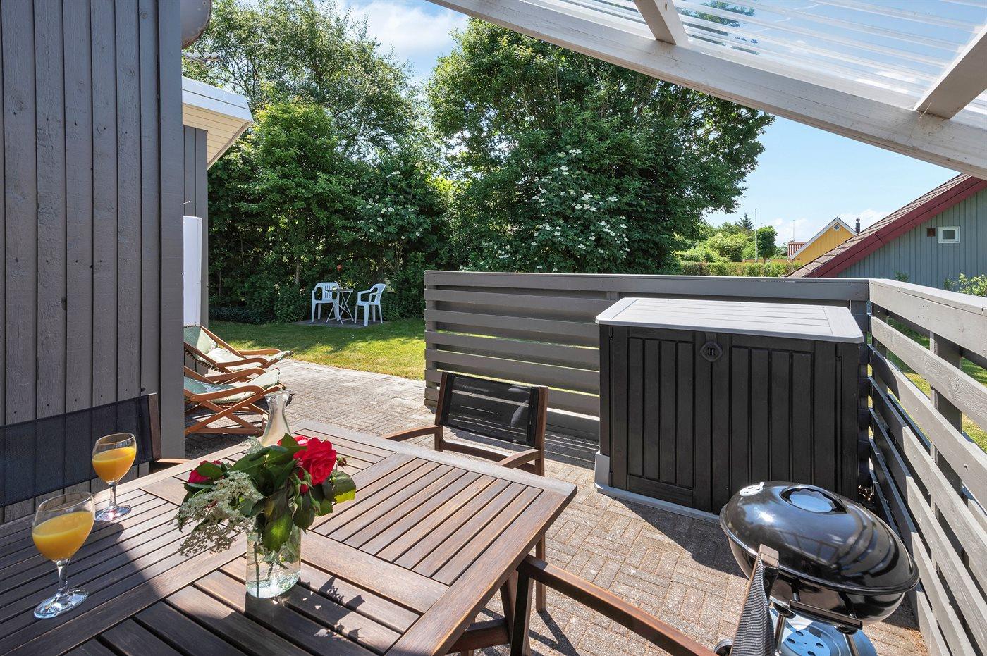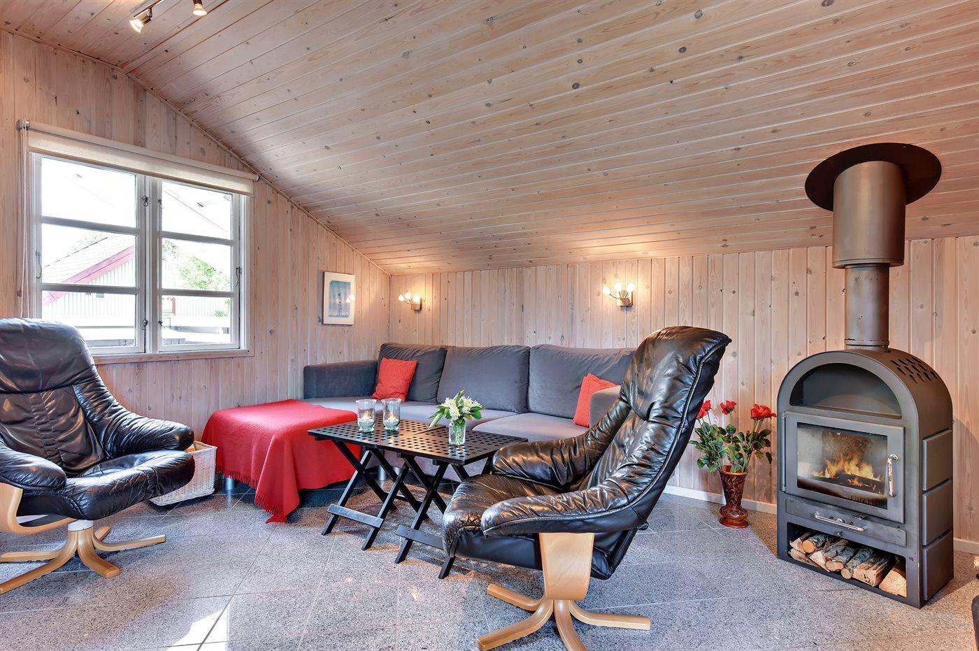 De vakantiewoning is gelegen op een 225 m² groot natuural grond. Afstand tot de zee 6200 m. Afstand tot de fjord 1500 m. Dichtstbijzijnde winkel 1500 m. Bij de vakantiewoning hoort 30 m² terras. Daarnaast is er een 4 m² groot overdekt terras. Gereedschapsruimte. Zandbak. Parkeerplaats bij het huis.