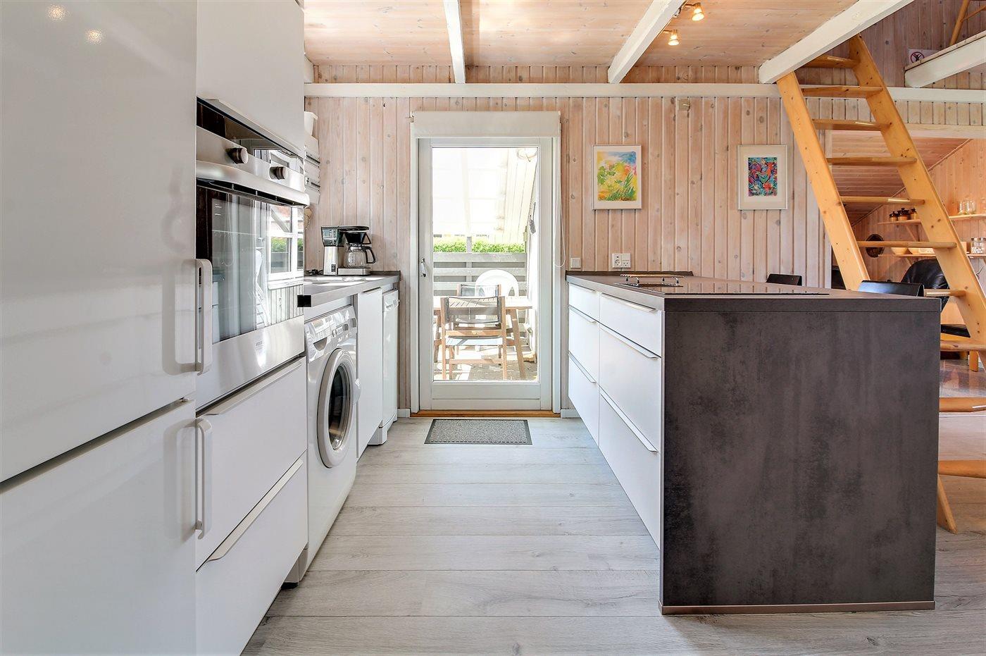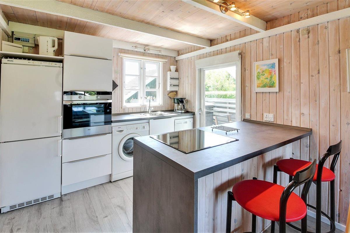 De keuken is uitgerust met koelkast Er is 3 elektrische kookplaten, bakoven, magnetron en vaatwasser.