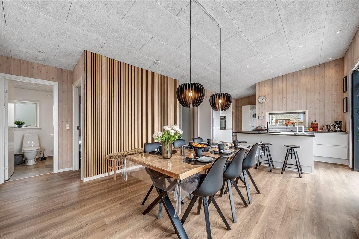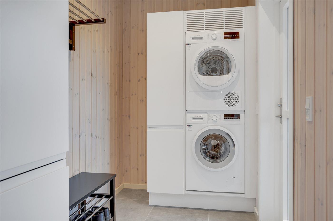 De vakantiewoning is gelegen op een 1202 m² groot natuural grond. De tuin is omheind. Afstand tot de fjord 1300 m. Dichtstbijzijnde winkel 1100 m. Bij de vakantiewoning hoort 50 m² beschut terras. Buitendouche. Parkeerplaats bij het huis.