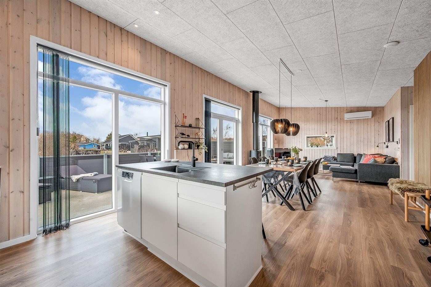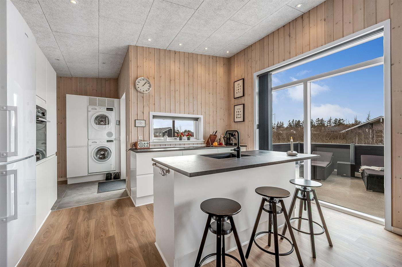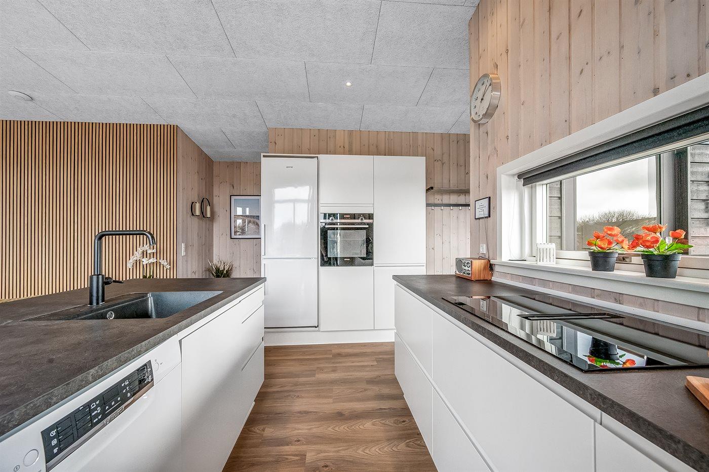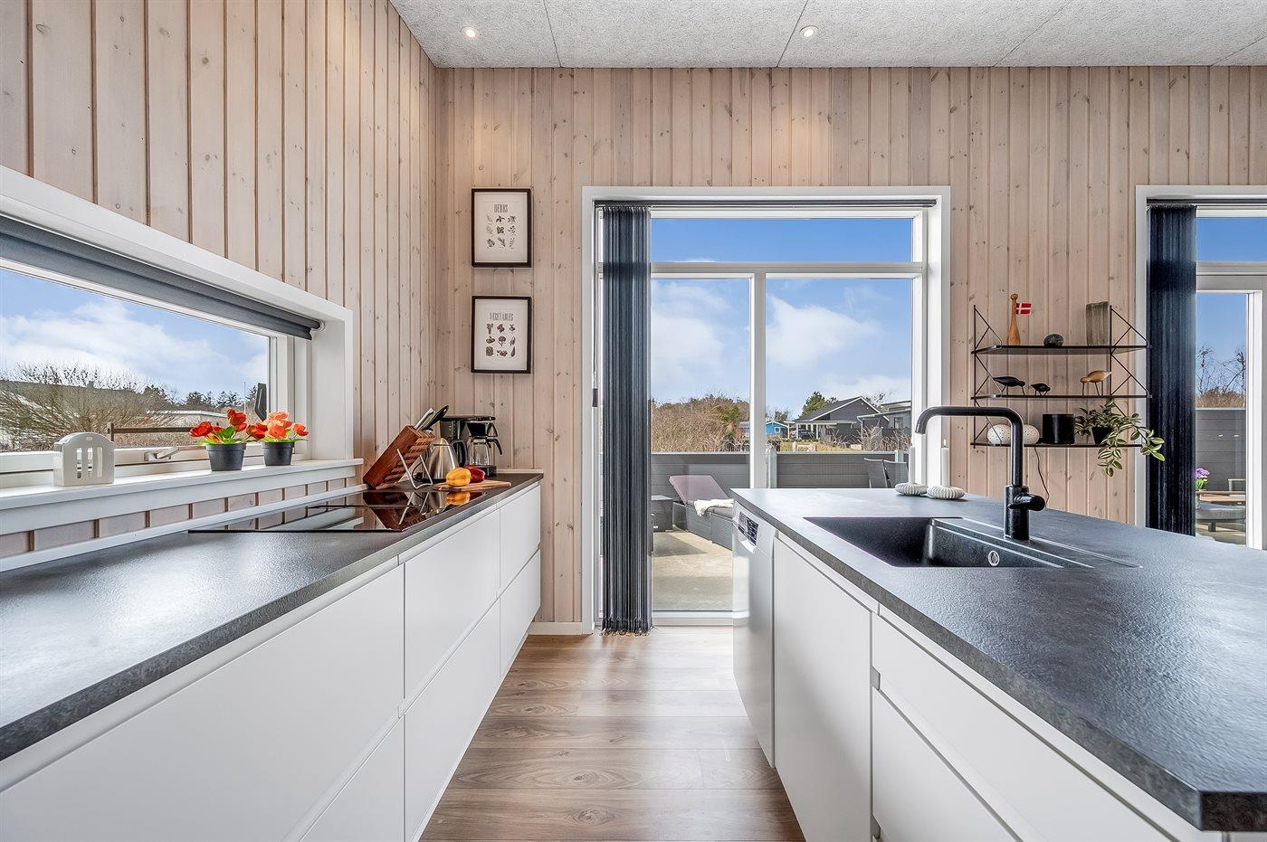 De keuken is uitgerust met koelkast Er is 4 inductiekookplaten, heteluchtoven, magnetron en vaatwasser.