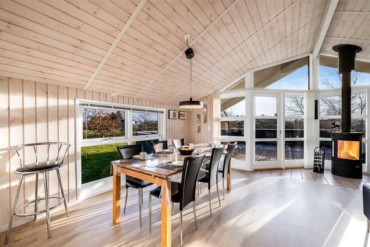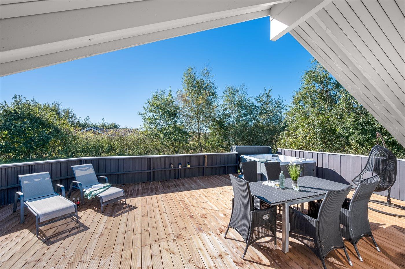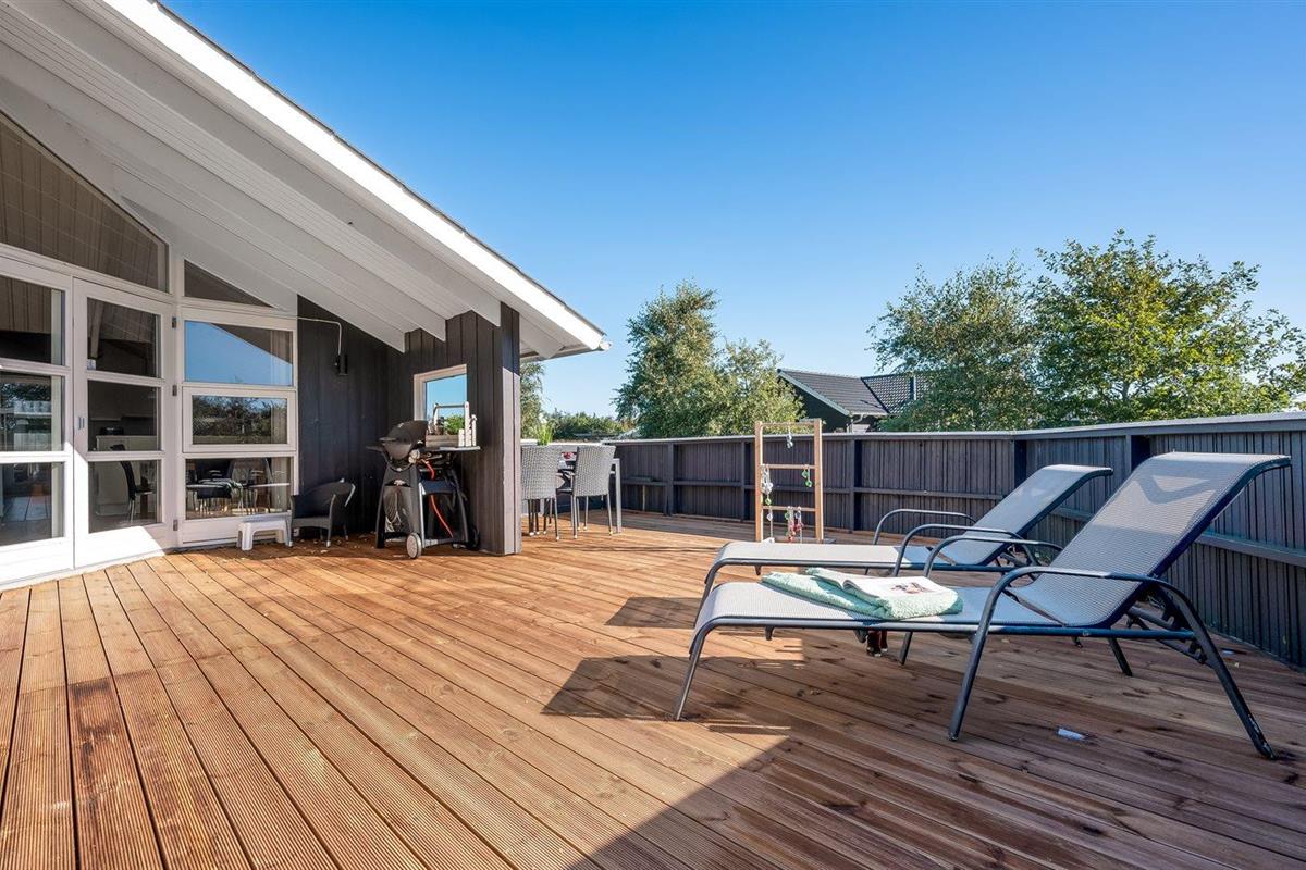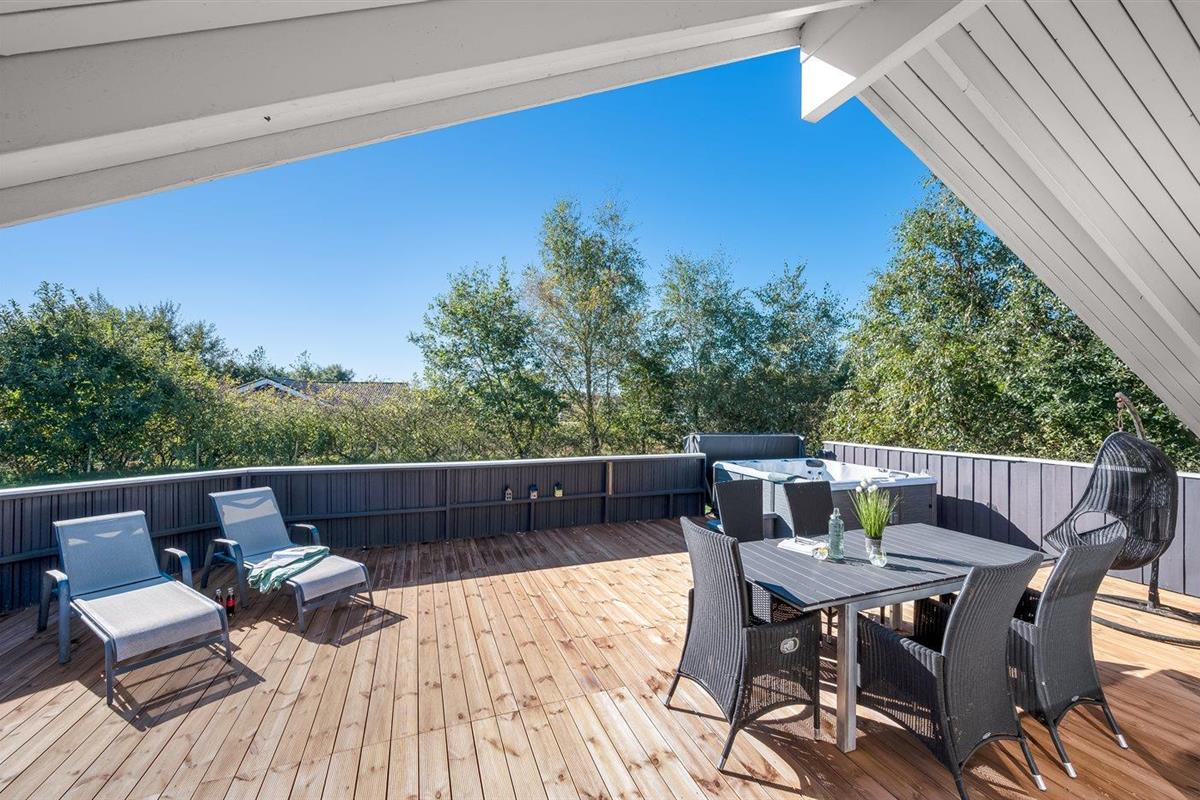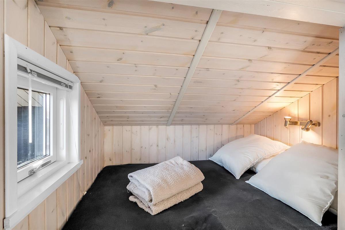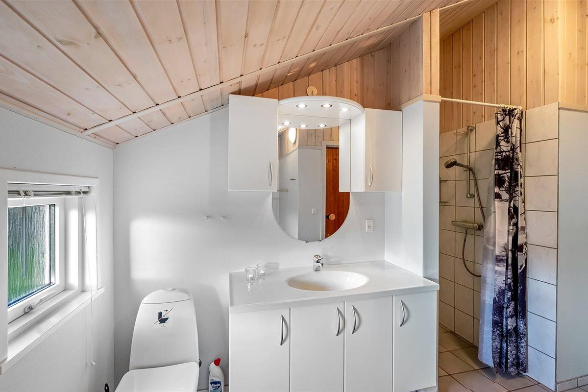 De vakantiewoning is gelegen op een 1205 m² groot natuural grond. De grond is omheind. Afstand tot de zee 7100 m. Afstand tot de fjord 1000 m. Dichtstbijzijnde winkel 1000 m. Bij de vakantiewoning hoort terras, gedeeltelijk overdekt terras en beschut terras. Er is een Weber barbecue beschikbaar. Parkeerplaats bij het huis.
