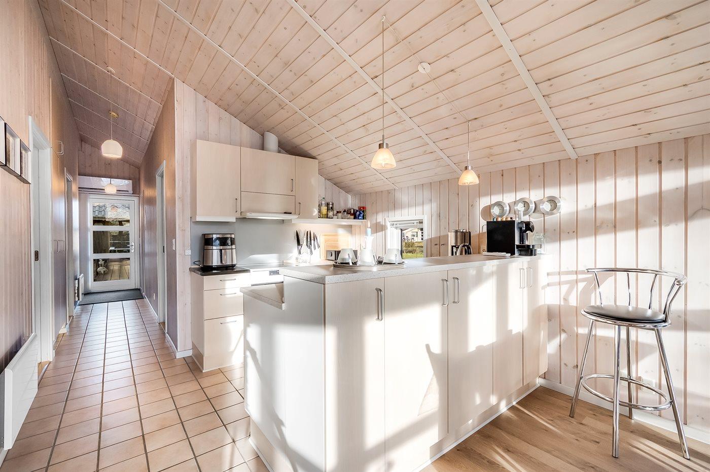 De keuken is uitgerust met koelkast Er is 4 inductiekookplaten, heteluchtoven en vaatwasser. Daarnaast is er een airfryer.