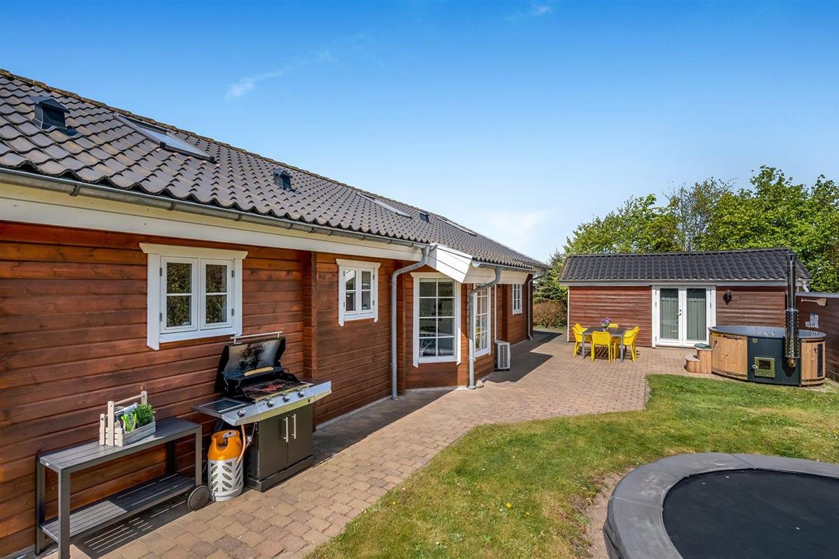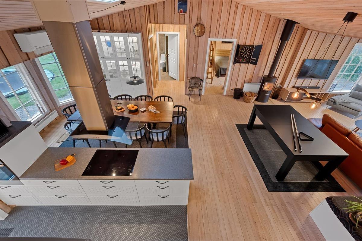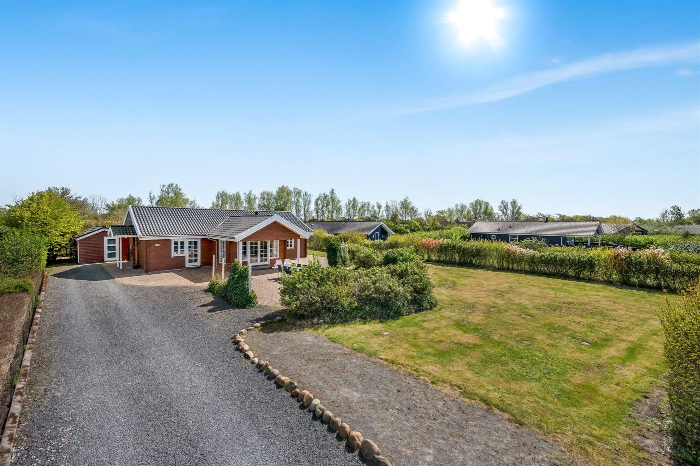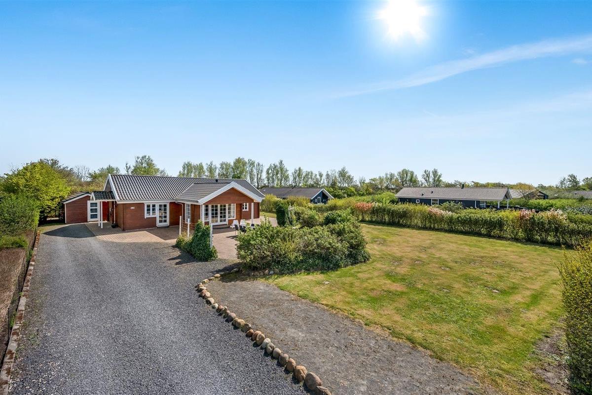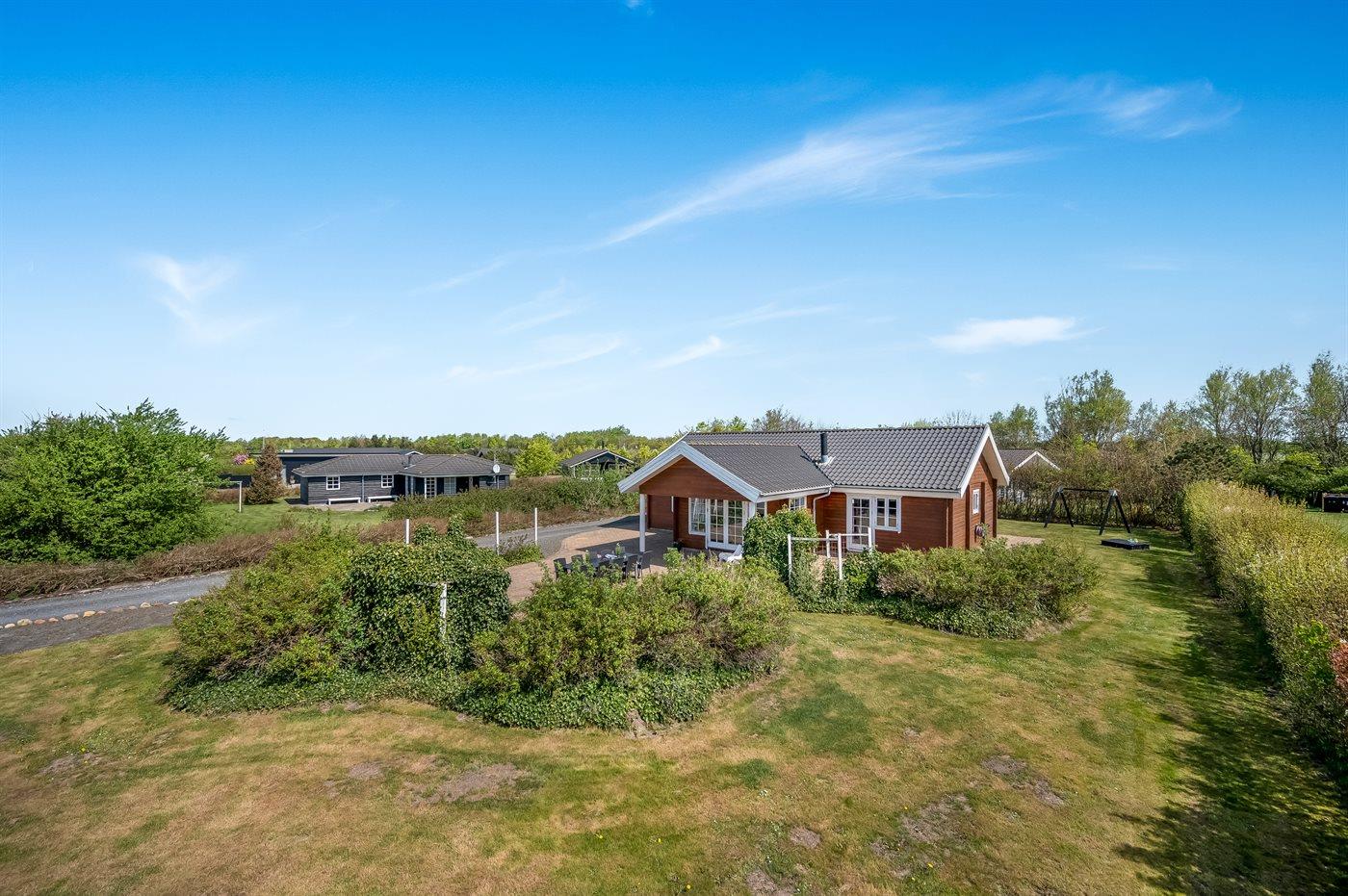 De vakantiewoning is gelegen op een 1200 m² groot natuural grond. De grond is omheind. Afstand tot de zee 7100 m. Afstand tot de fjord 1000 m. Dichtstbijzijnde winkel 1000 m. Bij de vakantiewoning hoort terras. Daarnaast is er een overdekt terras. Schommel. Zandbak. Trampoline. Het huis heeft een stopcontact voor het opladen van een elektrische auto. Oplaadstekker type 2. Met 11 kW-laadvermogen. Parkeerplaats bij het huis.