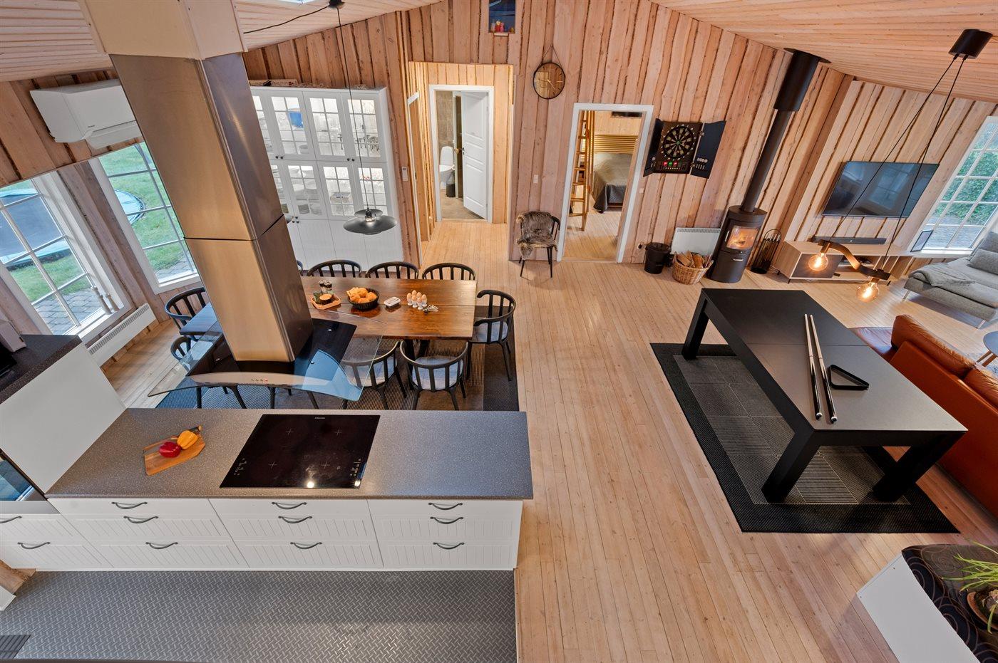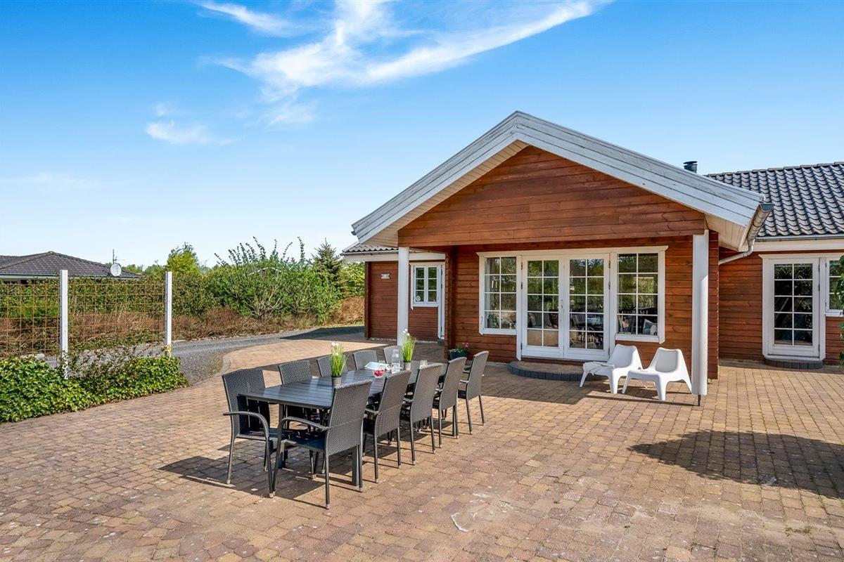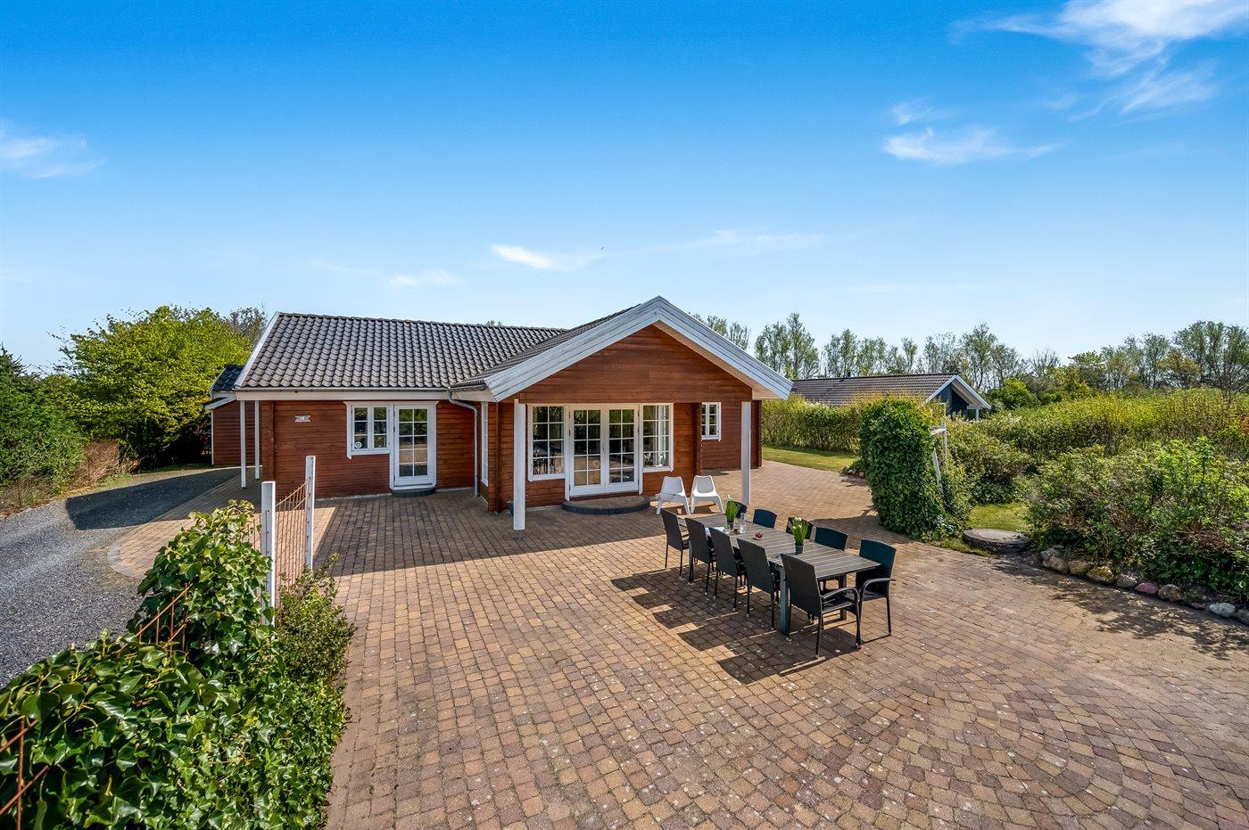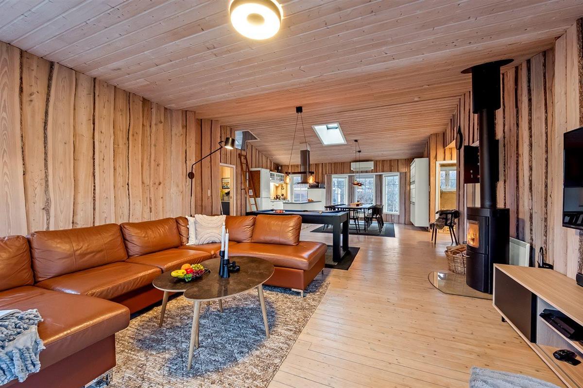 De vakantiewoning is gelegen op een 1200 m² groot natuural grond. De grond is omheind. Afstand tot de zee 7100 m. Afstand tot de fjord 1000 m. Dichtstbijzijnde winkel 1000 m. Bij de vakantiewoning hoort terras. Daarnaast is er een overdekt terras. Schommel. Zandbak. Trampoline. Het huis heeft een stopcontact voor het opladen van een elektrische auto. Oplaadstekker type 2. Met 11 kW-laadvermogen. Parkeerplaats bij het huis.