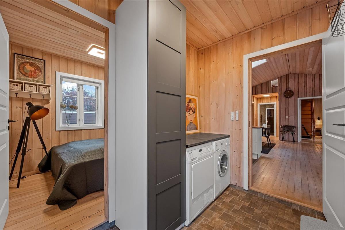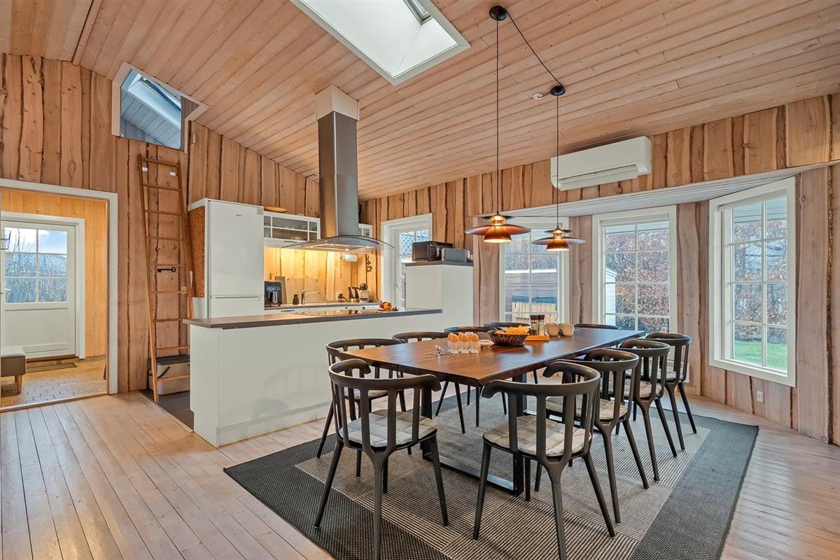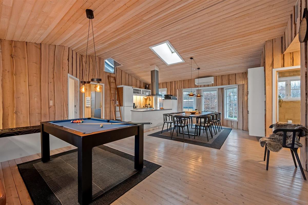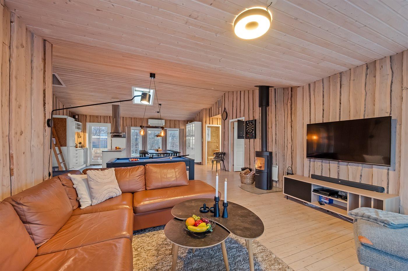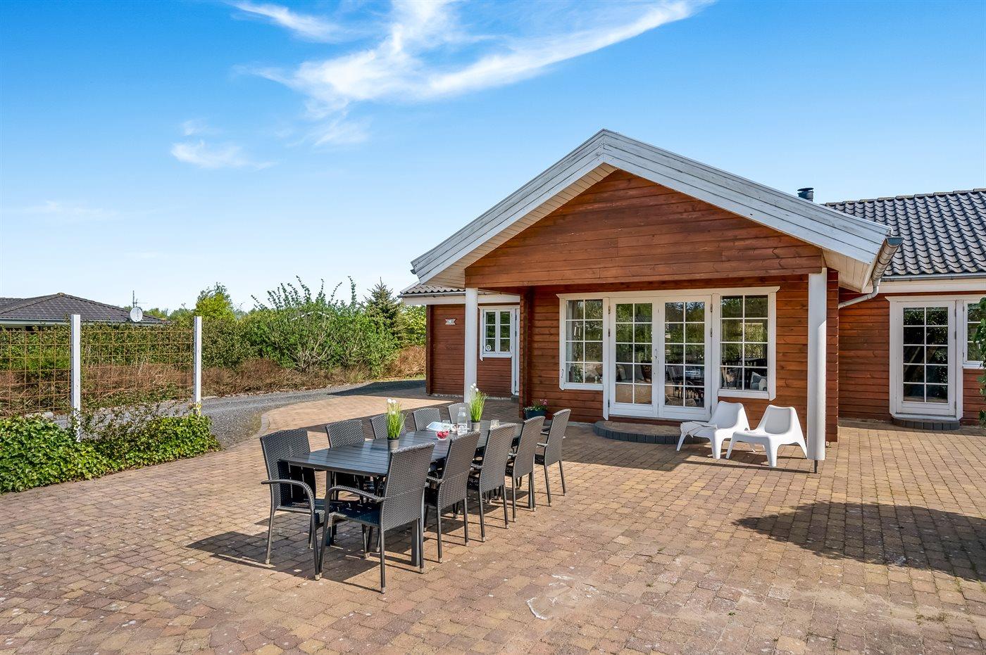 De vakantiewoning is gelegen op een 1200 m² groot natuural grond. De grond is omheind. Afstand tot de zee 7100 m. Afstand tot de fjord 1000 m. Dichtstbijzijnde winkel 1000 m. Bij de vakantiewoning hoort terras. Daarnaast is er een overdekt terras. Schommel. Zandbak. Trampoline. Het huis heeft een stopcontact voor het opladen van een elektrische auto. Oplaadstekker type 2. Met 11 kW-laadvermogen. Parkeerplaats bij het huis.