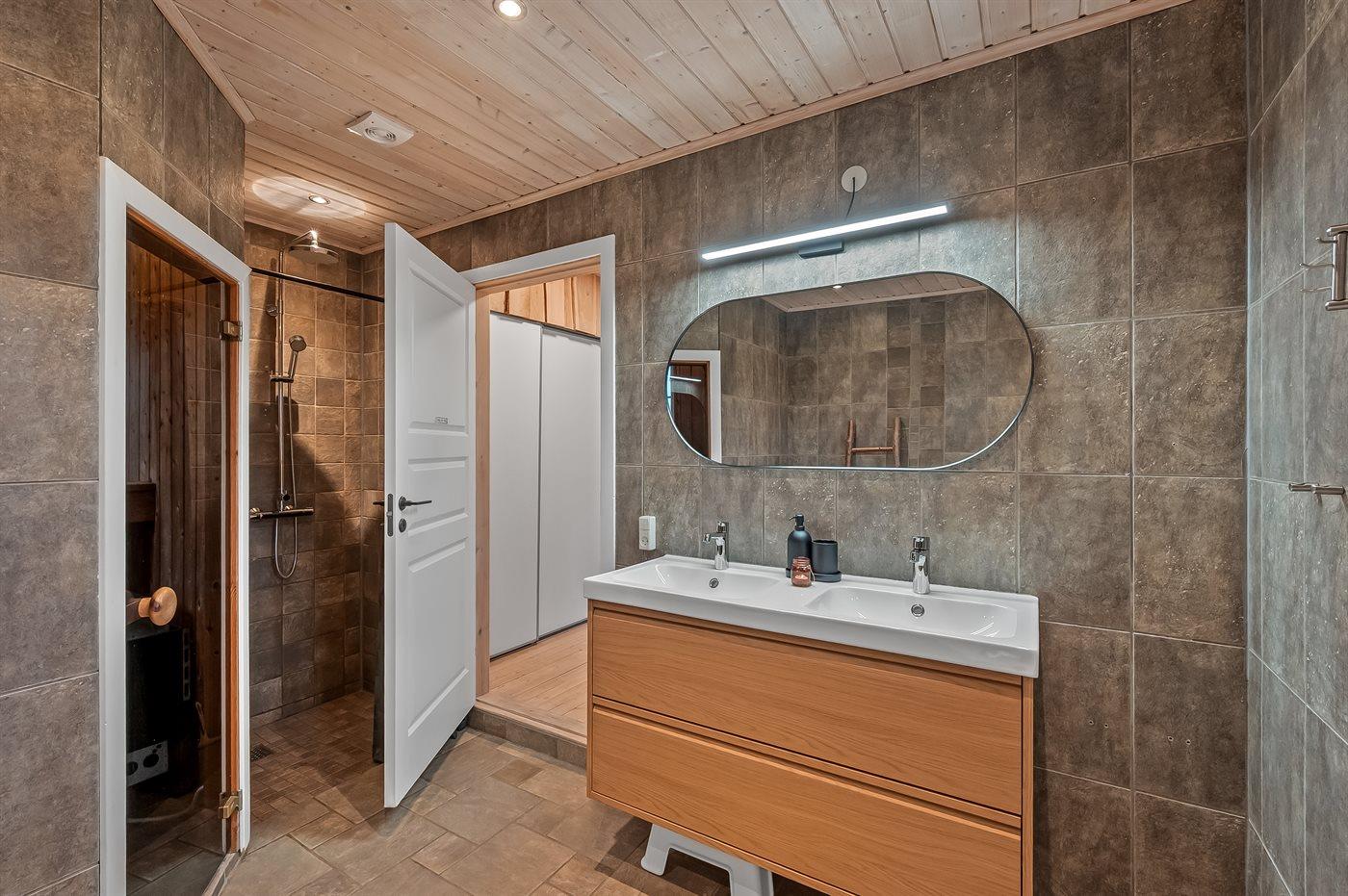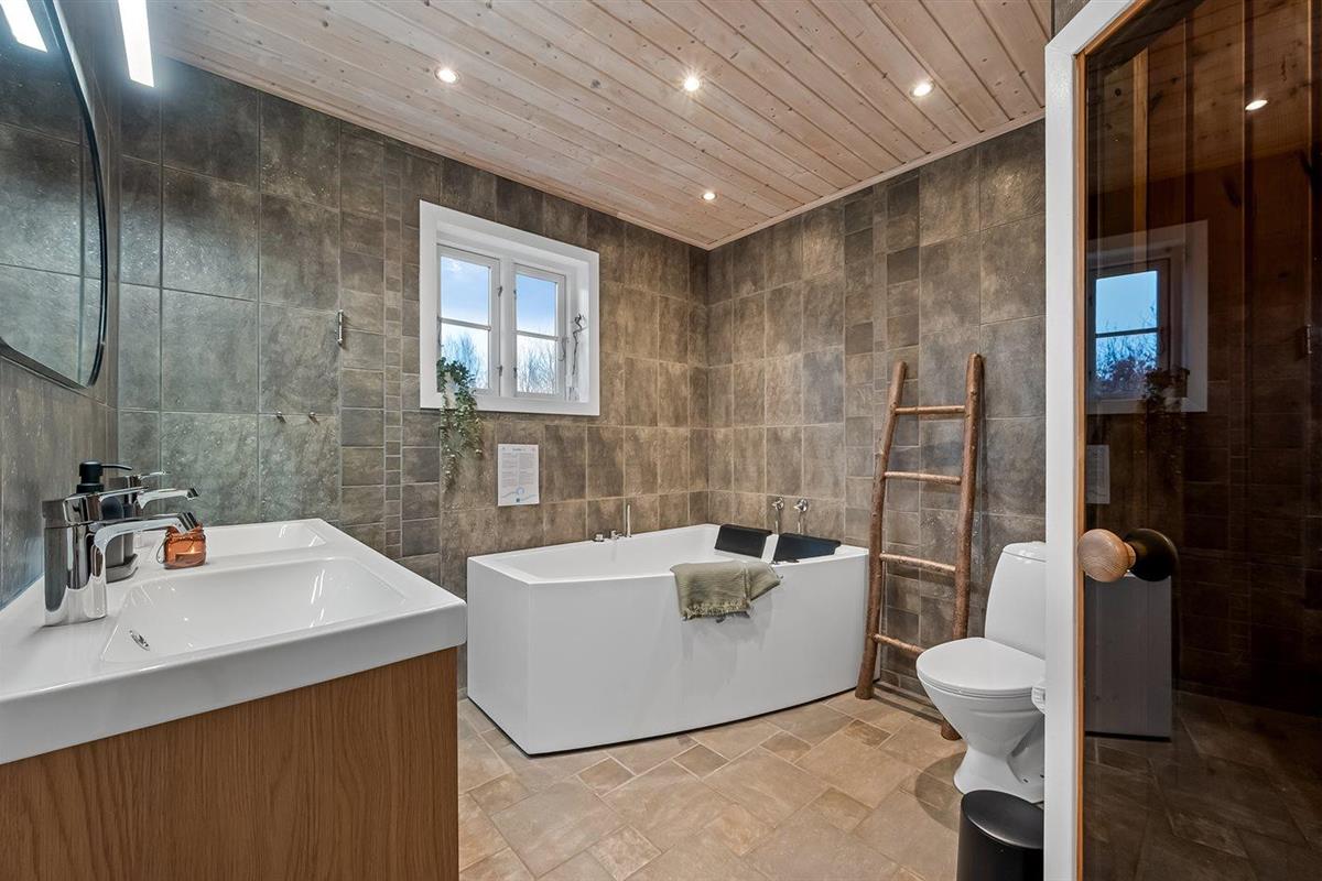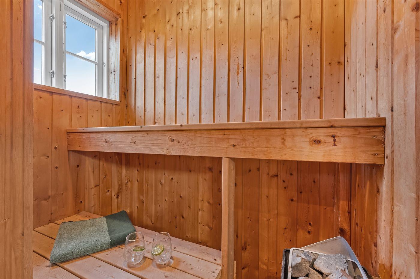 Er is 2 badkamers met douchehok en 2 toiletten. Er is vloerverwarming in 2 van de badkamers. De sauna biedt de gelegenheid tot ontspanning.