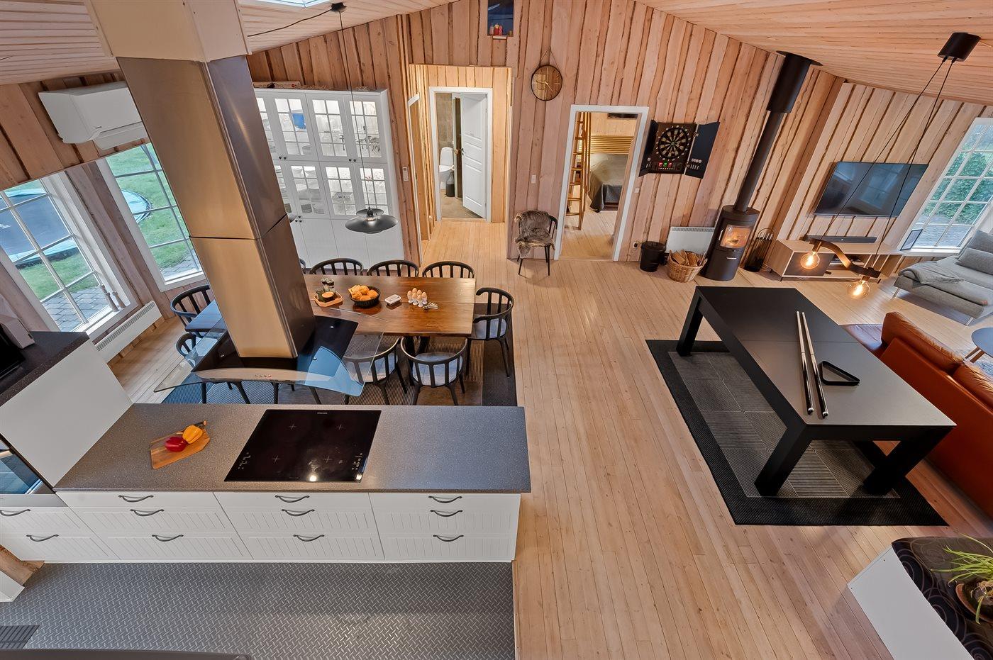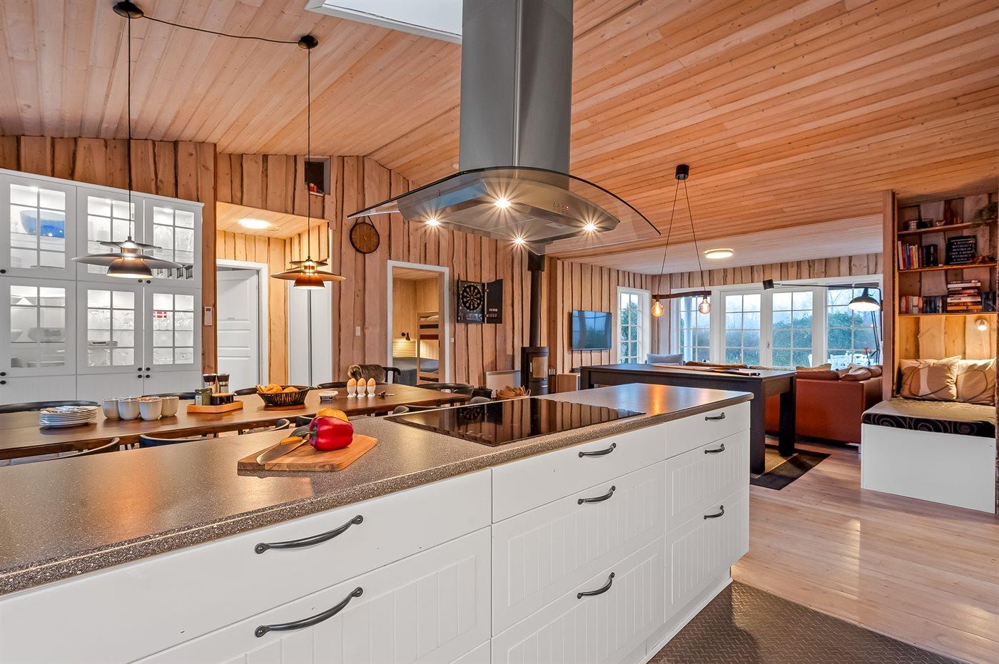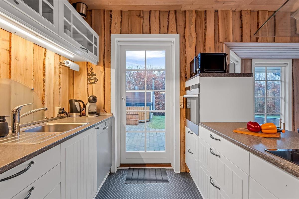 De keuken is uitgerust met koelkast Er is 4 inductiekookplaten, heteluchtoven, magnetron, Airfryer en vaatwasser.