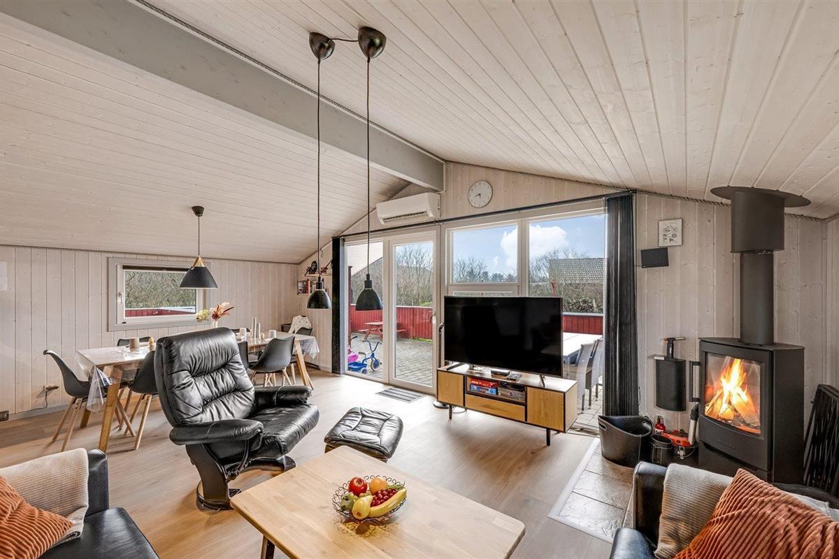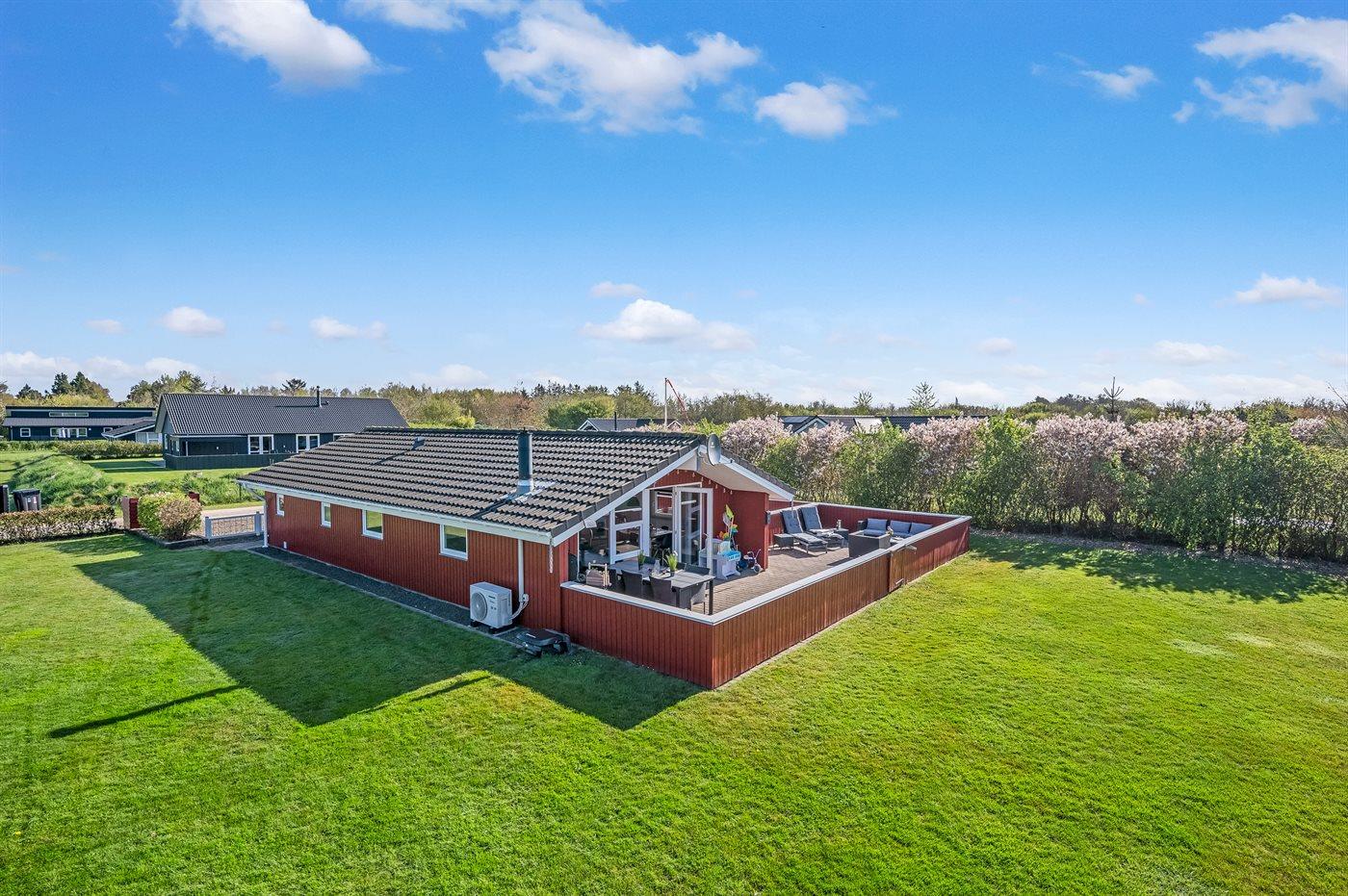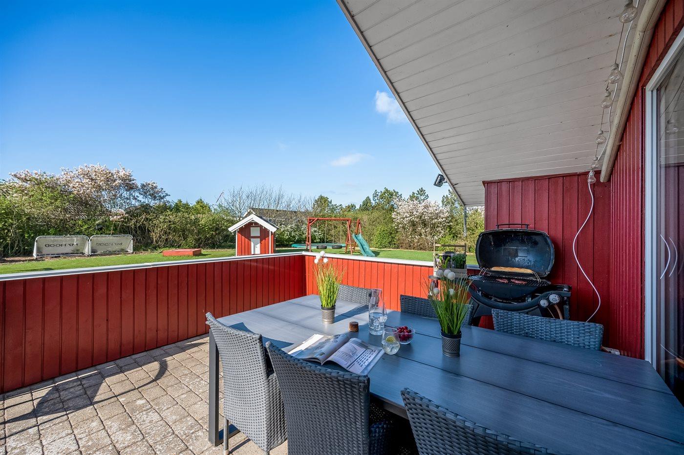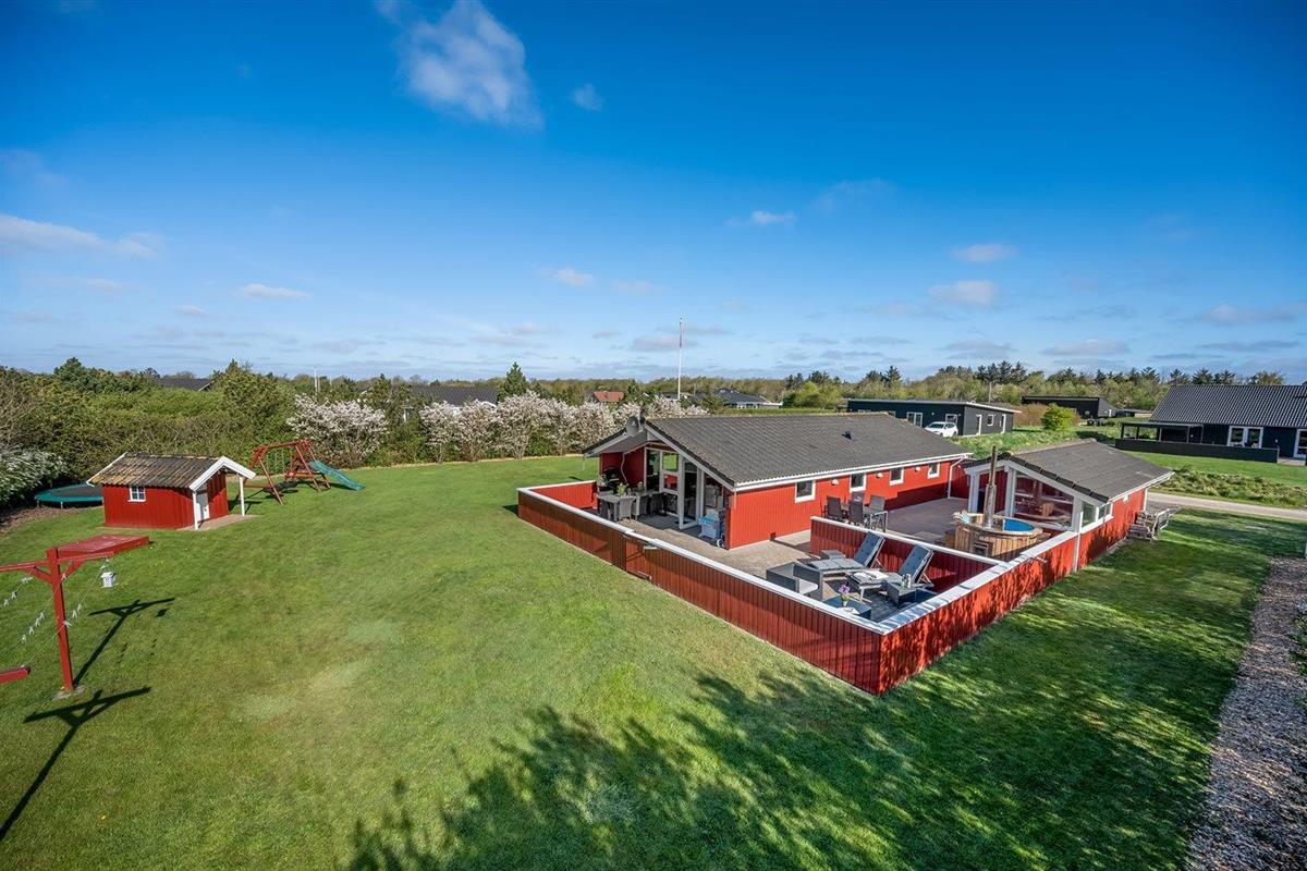 De vakantiewoning is gelegen op een 1204 m² groot natuural grond. De grond is omheind. Afstand tot de zee 9000 m. Afstand tot de fjord 1000 m. Dichtstbijzijnde winkel 1500 m. Er is een golfbaan op een afstand van 15000 m. Bij de vakantiewoning hoort terras. Daarnaast is er een overdekt terras. Gereedschapsruimte. Schommel. Zandbak. Speelhuisje. Trampoline. Glijbaan. Voetbaldoel. Afstand tot speelplaats 170 m. U kunt buiten een maaltijd bereiden in de buitenkeuken. Barbecue. Parkeerplaats bij het huis.