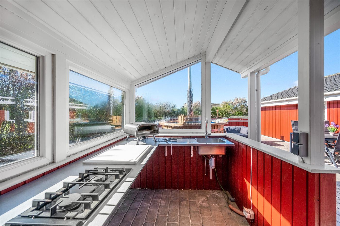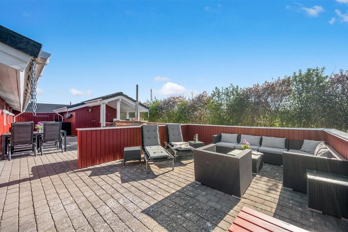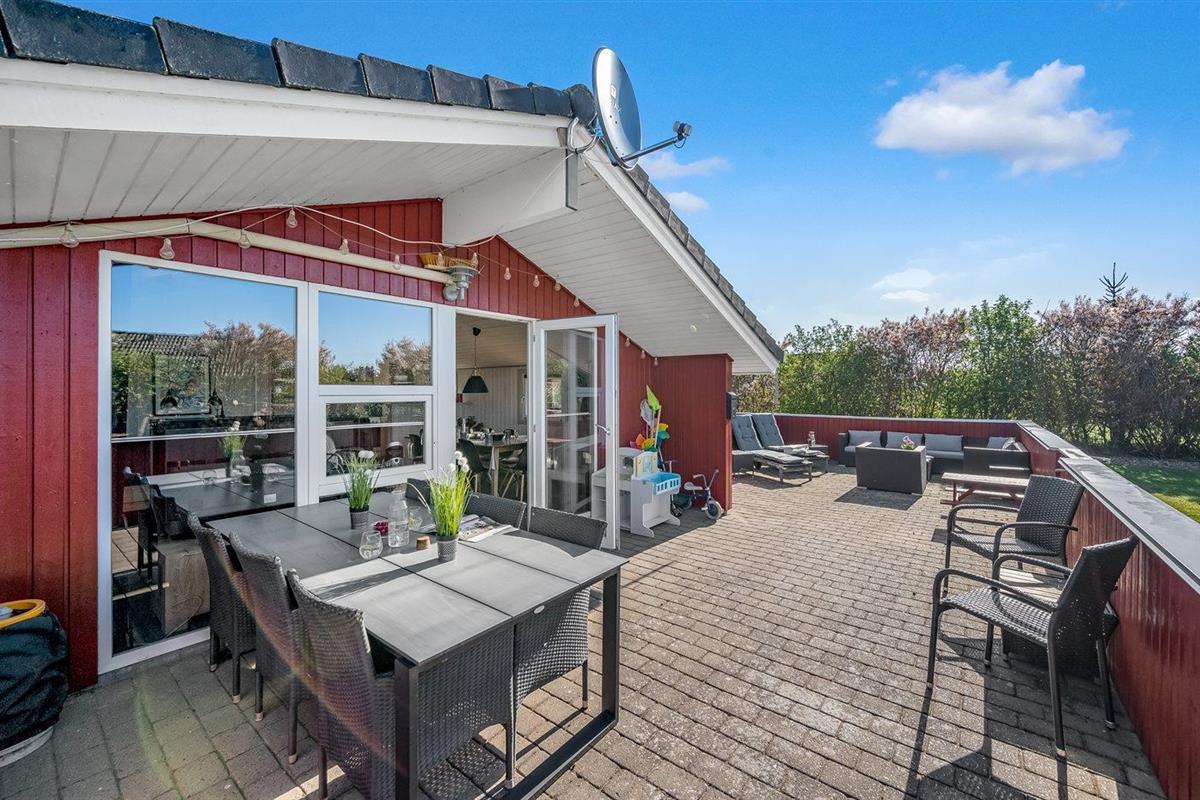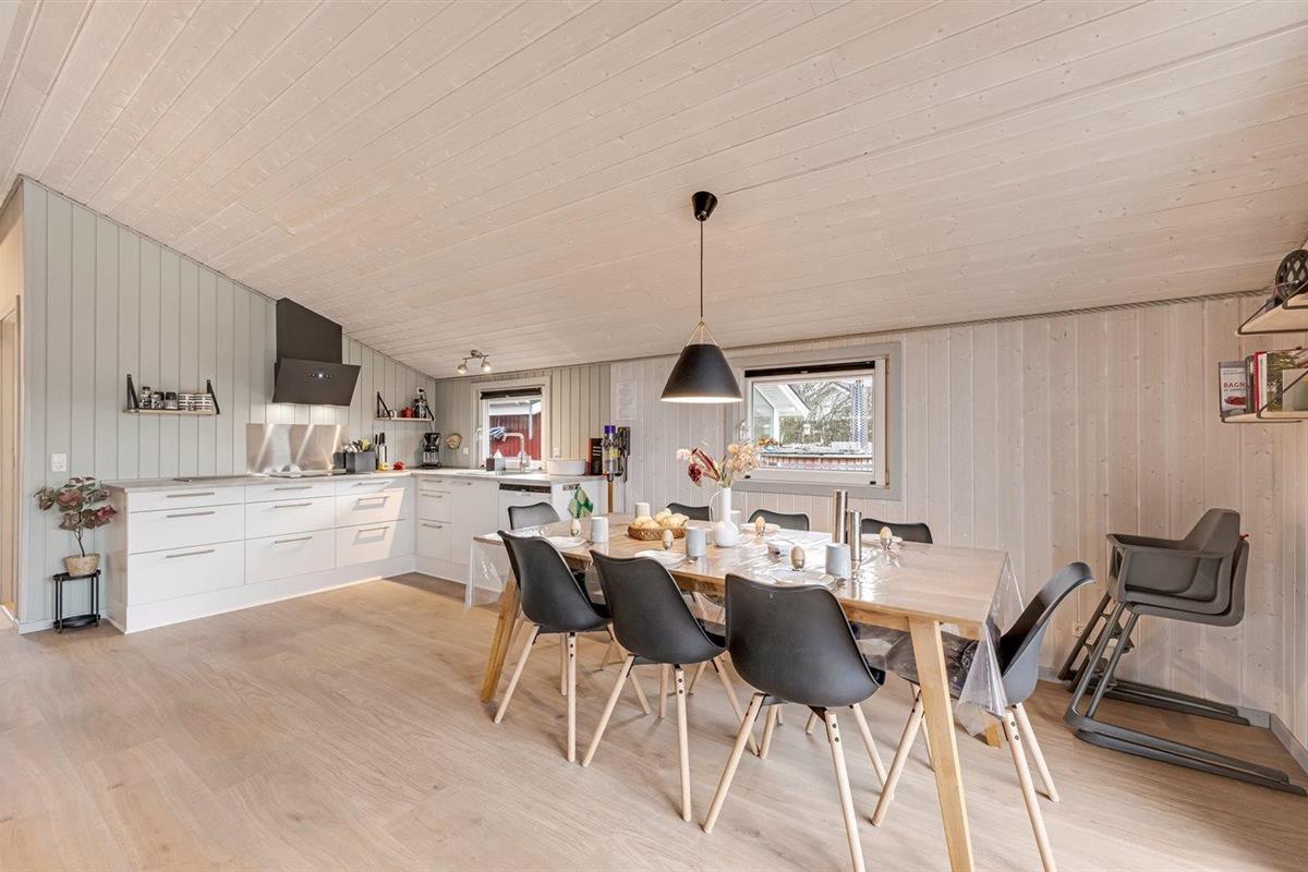 De vakantiewoning is gelegen op een 1204 m² groot natuural grond. De grond is omheind. Afstand tot de zee 9000 m. Afstand tot de fjord 1000 m. Dichtstbijzijnde winkel 1500 m. Er is een golfbaan op een afstand van 15000 m. Bij de vakantiewoning hoort terras. Daarnaast is er een overdekt terras. Gereedschapsruimte. Schommel. Zandbak. Speelhuisje. Trampoline. Glijbaan. Voetbaldoel. Afstand tot speelplaats 170 m. U kunt buiten een maaltijd bereiden in de buitenkeuken. Barbecue. Parkeerplaats bij het huis.