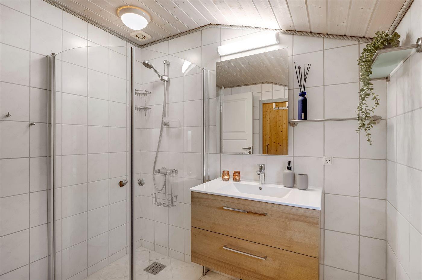 Er is 1 badkamer met douchehok en 1 toilet.. Er is vloerverwarming in 1 badkamer. De sauna biedt de gelegenheid tot ontspanning.