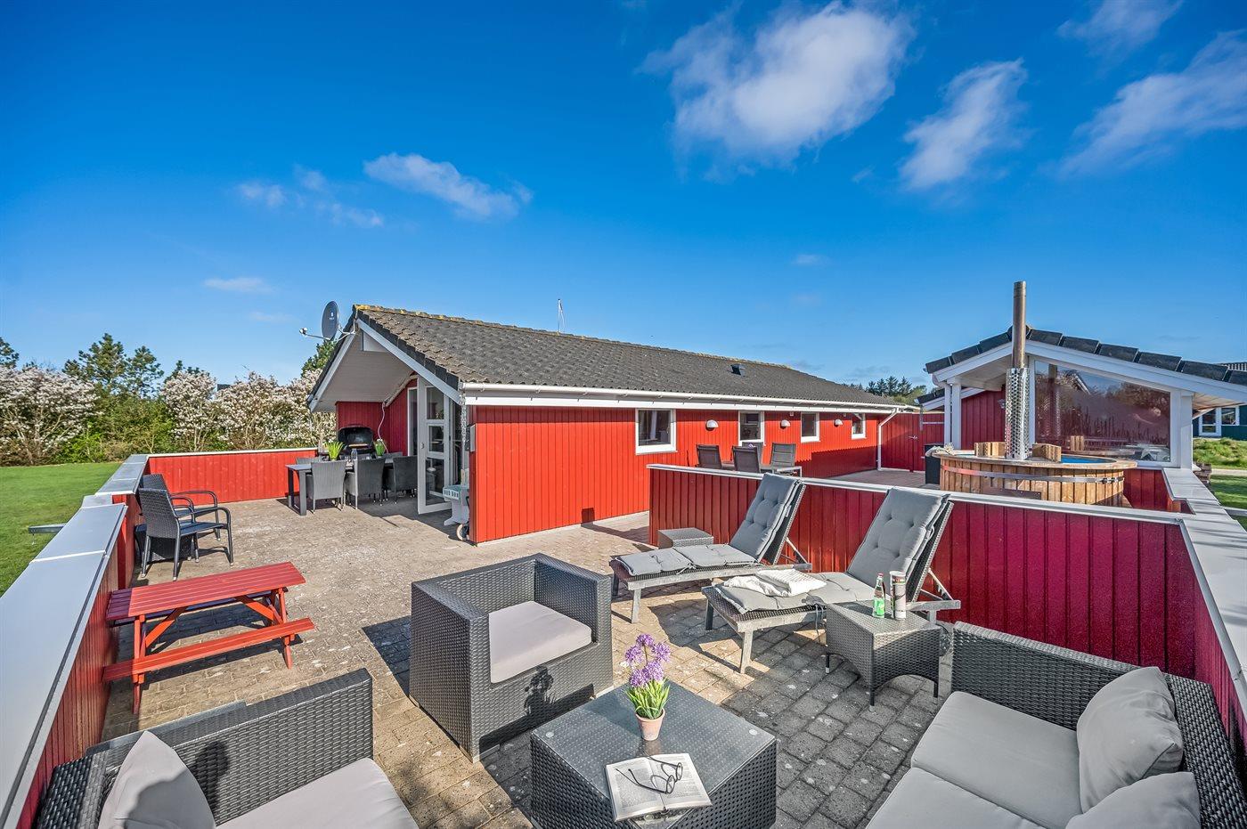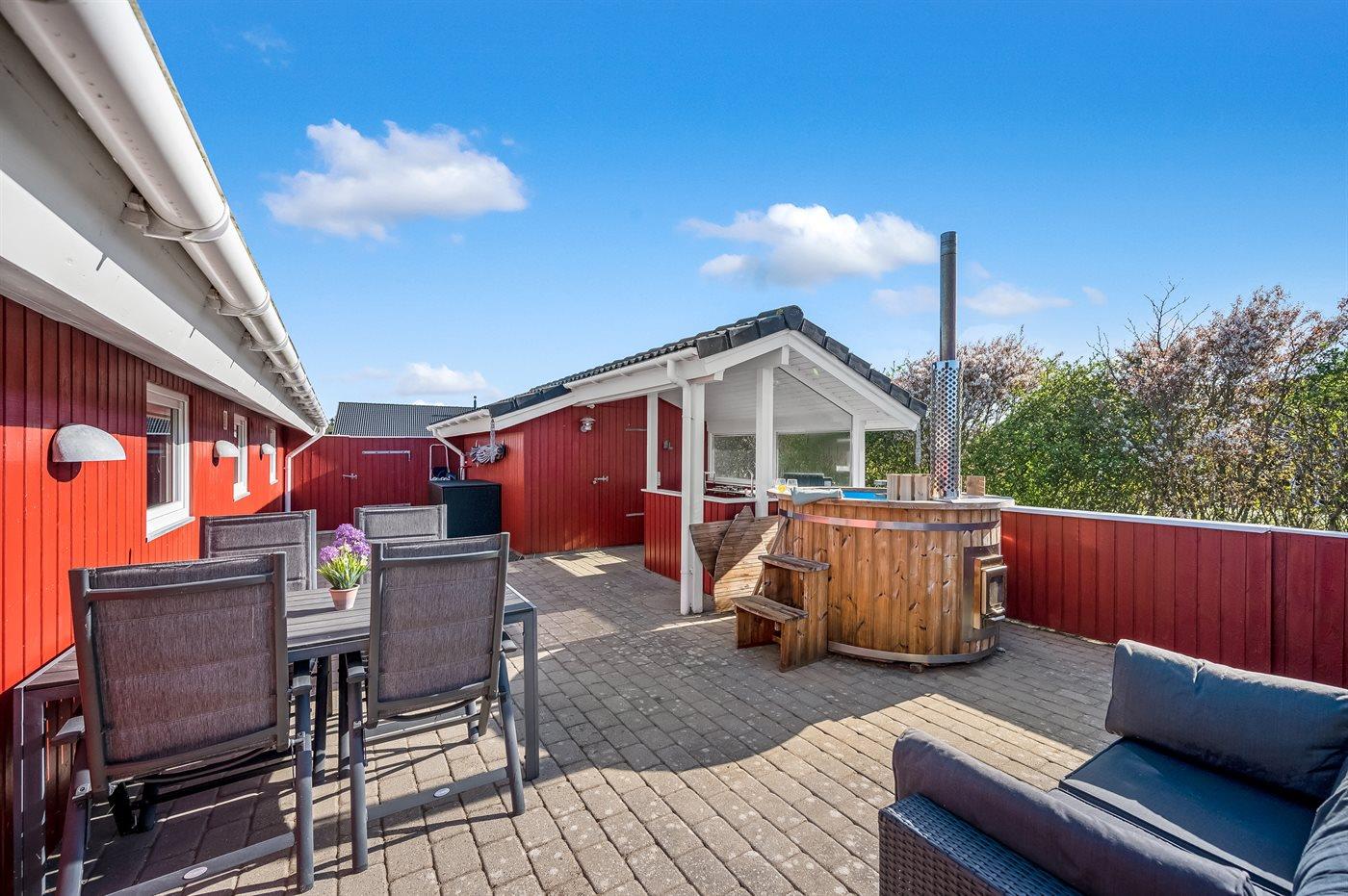 Het buiten hot tub biedt ontspanning aan 4 personen.