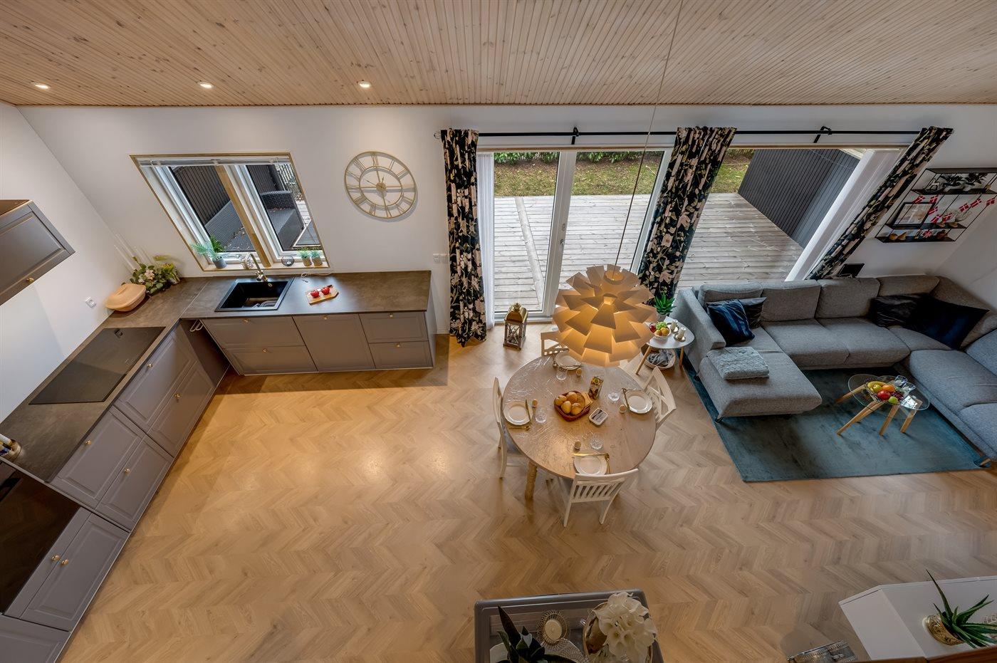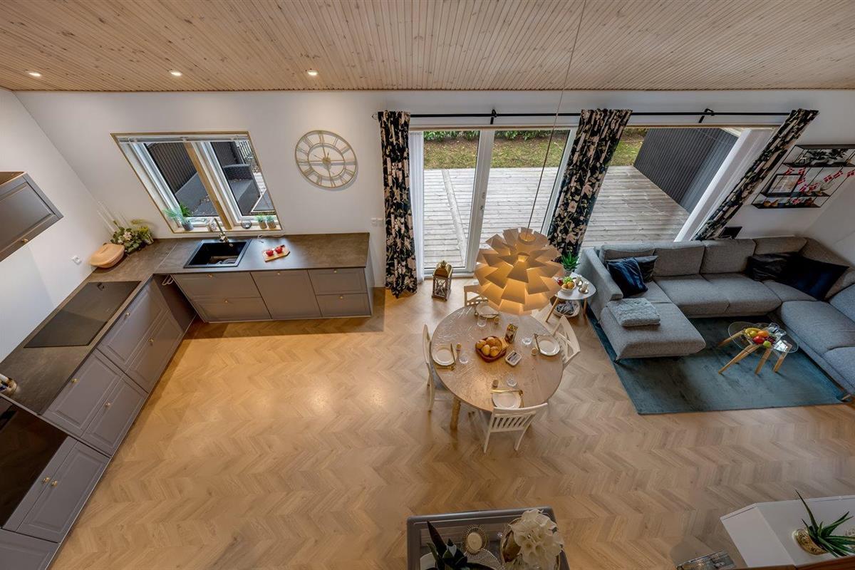 De vakantiewoning is gelegen op een 225 m² groot natuural grond. Afstand tot de zee 6500 m. Afstand tot de fjord 1190 m. Dichtstbijzijnde winkel 1800 m. Bij de vakantiewoning hoort terras. Barbecue. Parkeerplaats bij het huis.