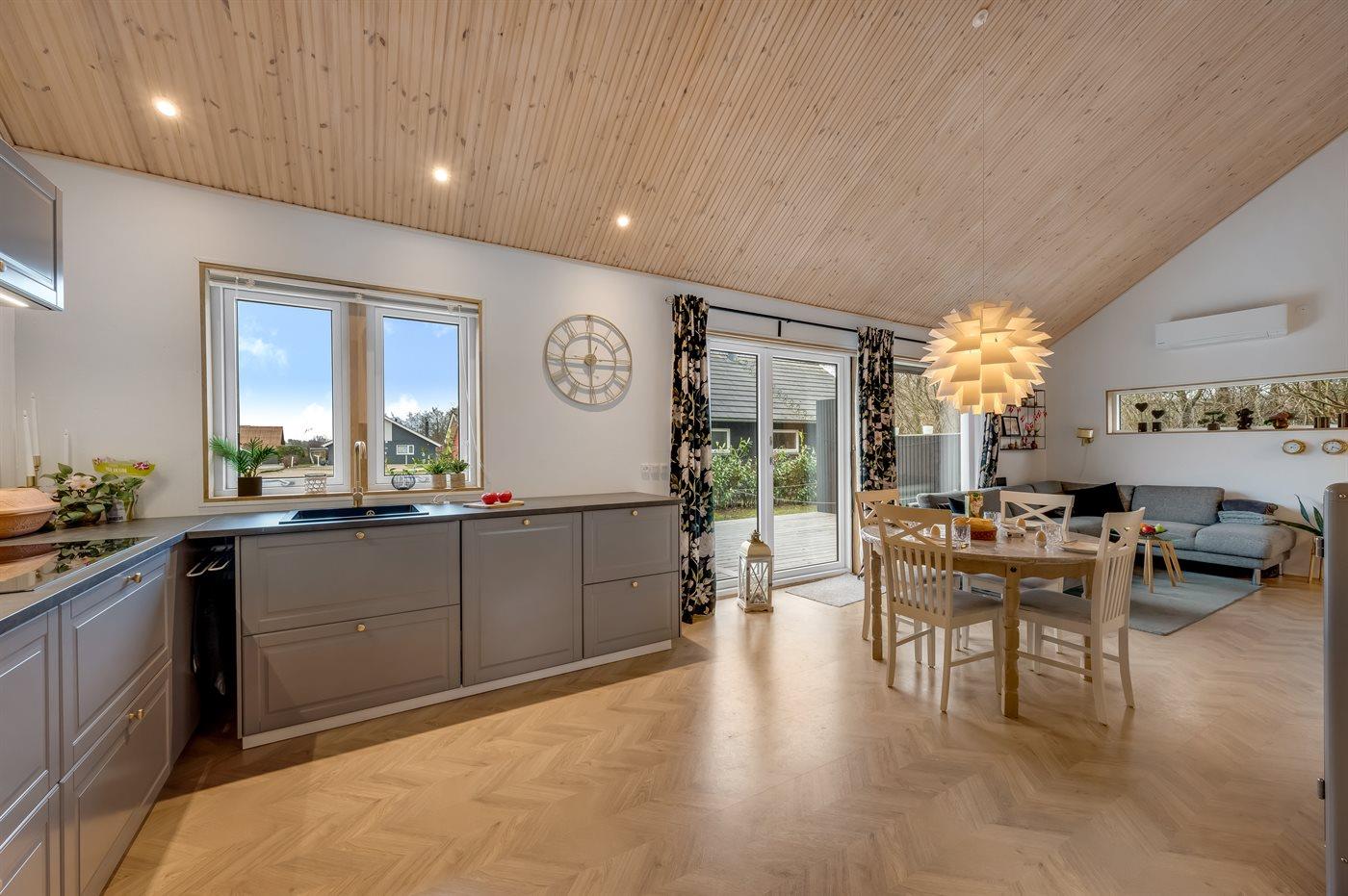 De keuken is uitgerust met koelkast Er is 4 inductiekookplaten, heteluchtoven, magnetron, Airfryer en vaatwasser.