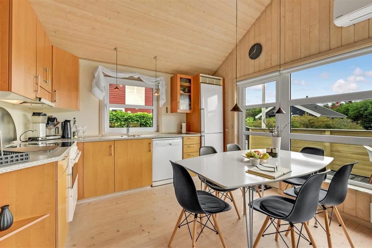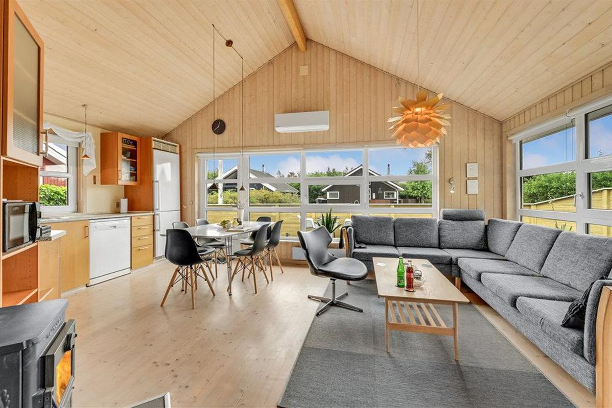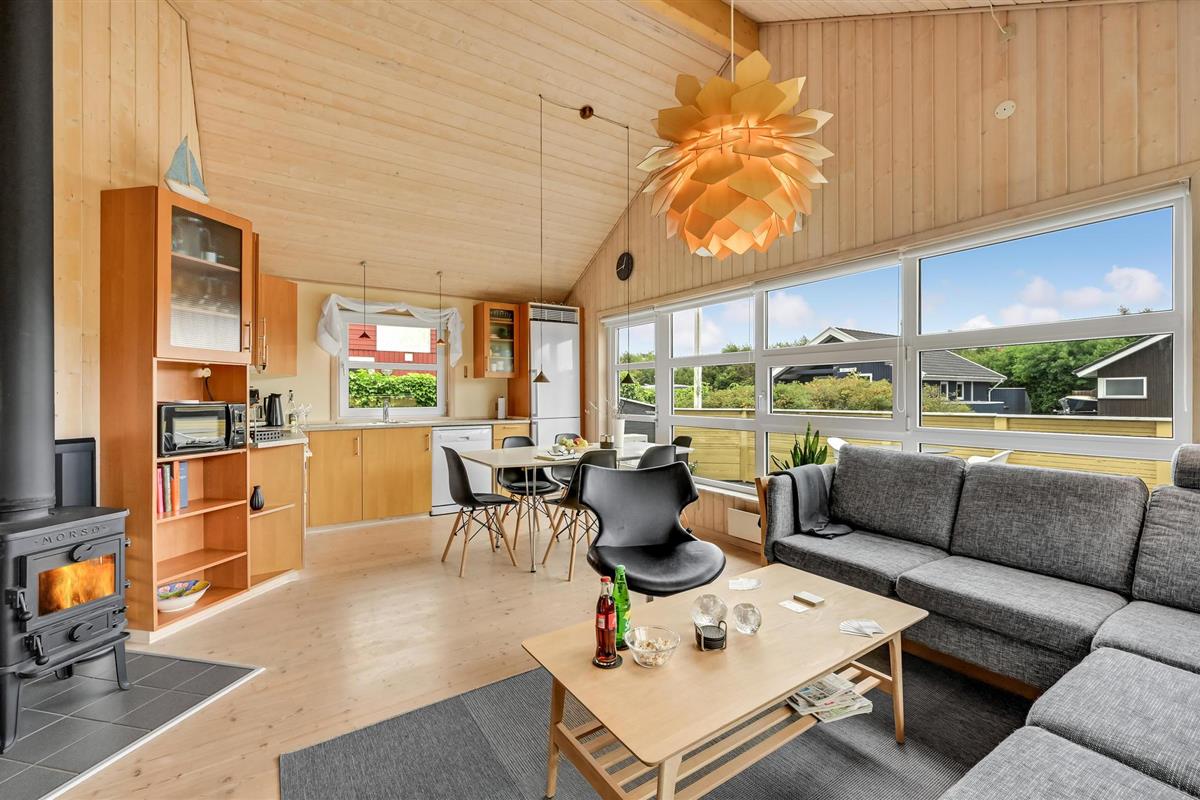 Gezellig, goed onderhouden vakantiehuis met buitenwhirlpool. U woont in het leuke vakantiehuisgebied Bork Hytteby, waar ook een sloepenhaven bij hoort. Geniet hier van uw vakantie en de prachtige natuur, want buiten heeft u bijvoorbeeld een gedeeltelijk overdekt terras, dat ook door een kleiner hek is omheind en een whirlpool herbergt. U bent hier ongestoord. De gezellige inrichting van het huis bestaat uit een keuken-woonkamer met houtkachel, twee mooie slaapkamers voor 4 personen en 2 slaapplaatsen op de slaapzolder. In de omgeving is er een gemeenschappelijke speeltuin met schommels, glijbanen, klimrekken, trampolines, balspelen en kampvuurplaatsen. Op een kilometer afstand kunt u winkelen, eten en de gezellige sfeer proeven in de haven in Bork Havn.