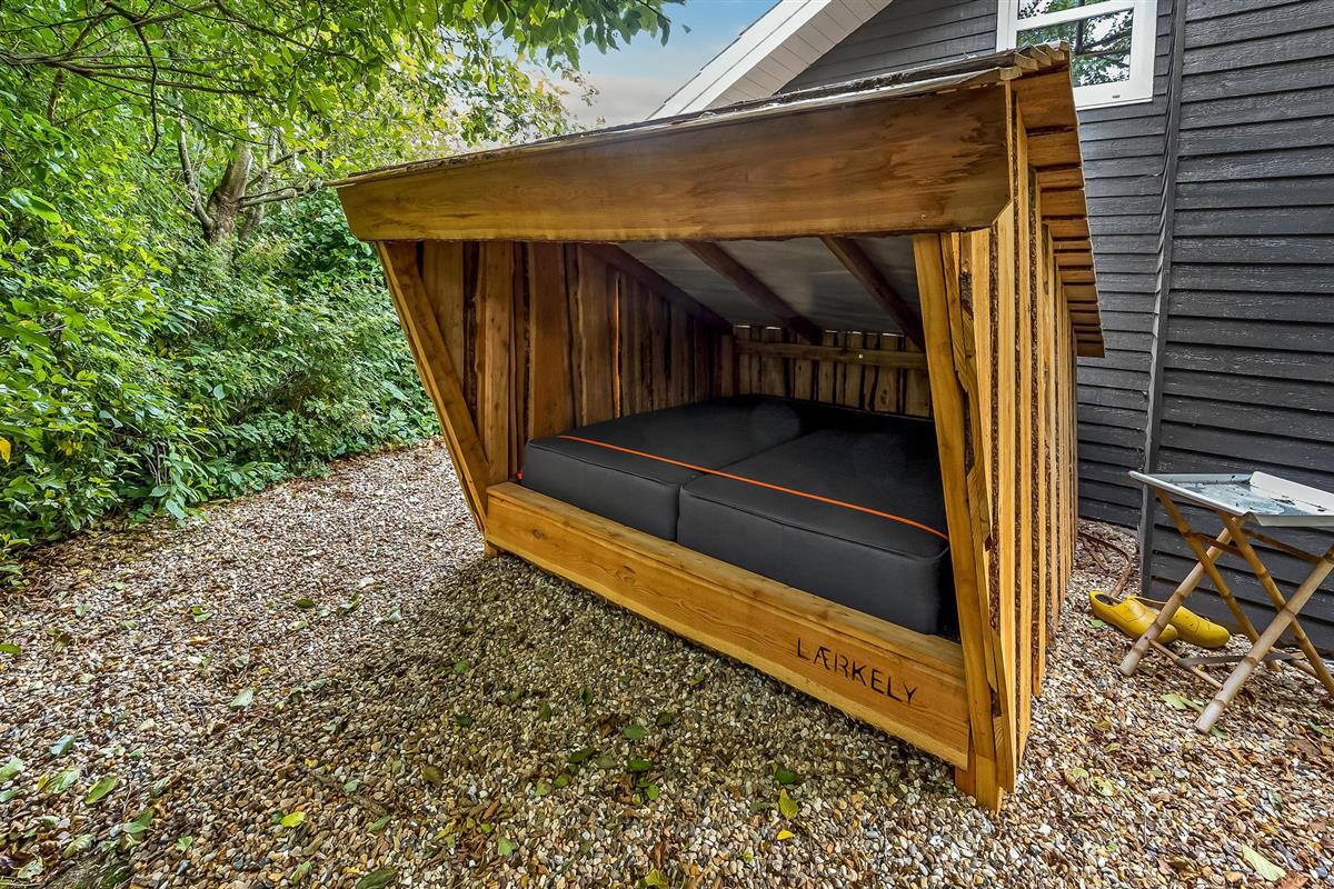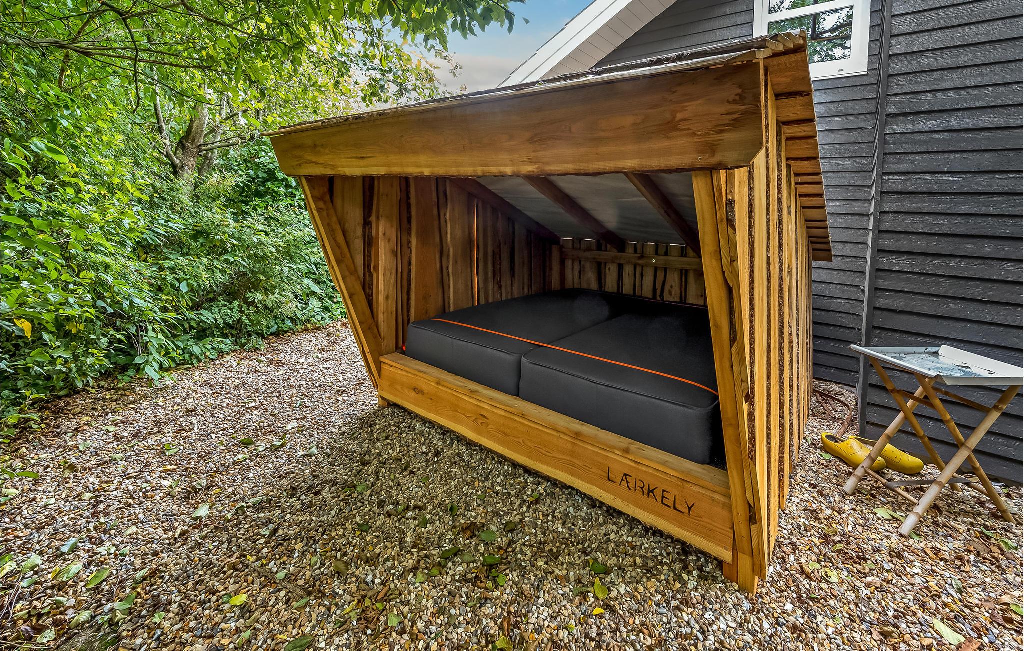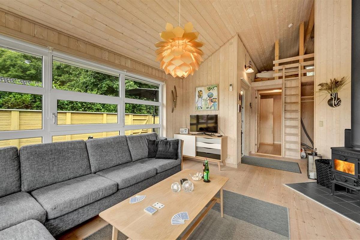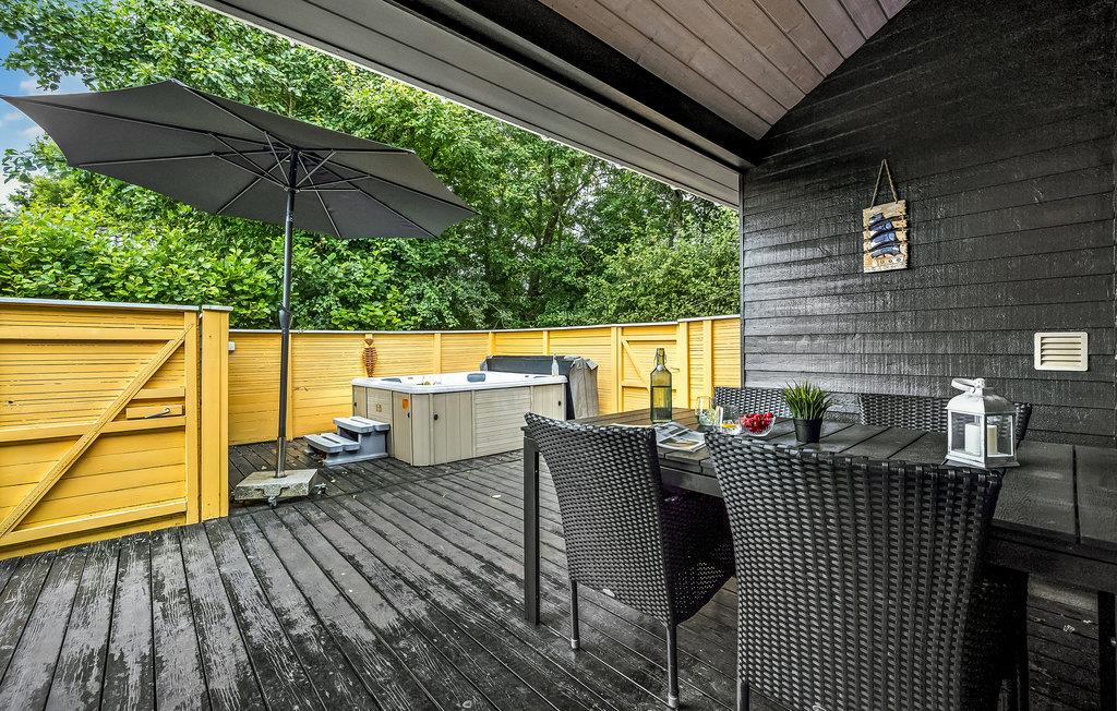 Ontdek dit gezellig vakantiehuis met buitenwhirlpool en houtkachel in het mooie Bork Hytteby, Denemarken.