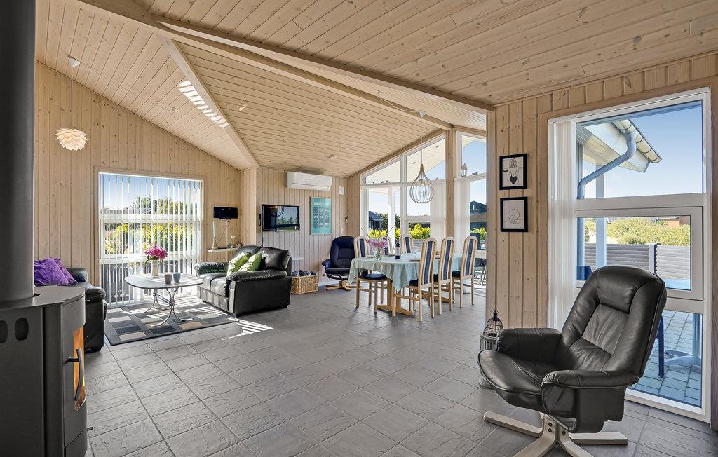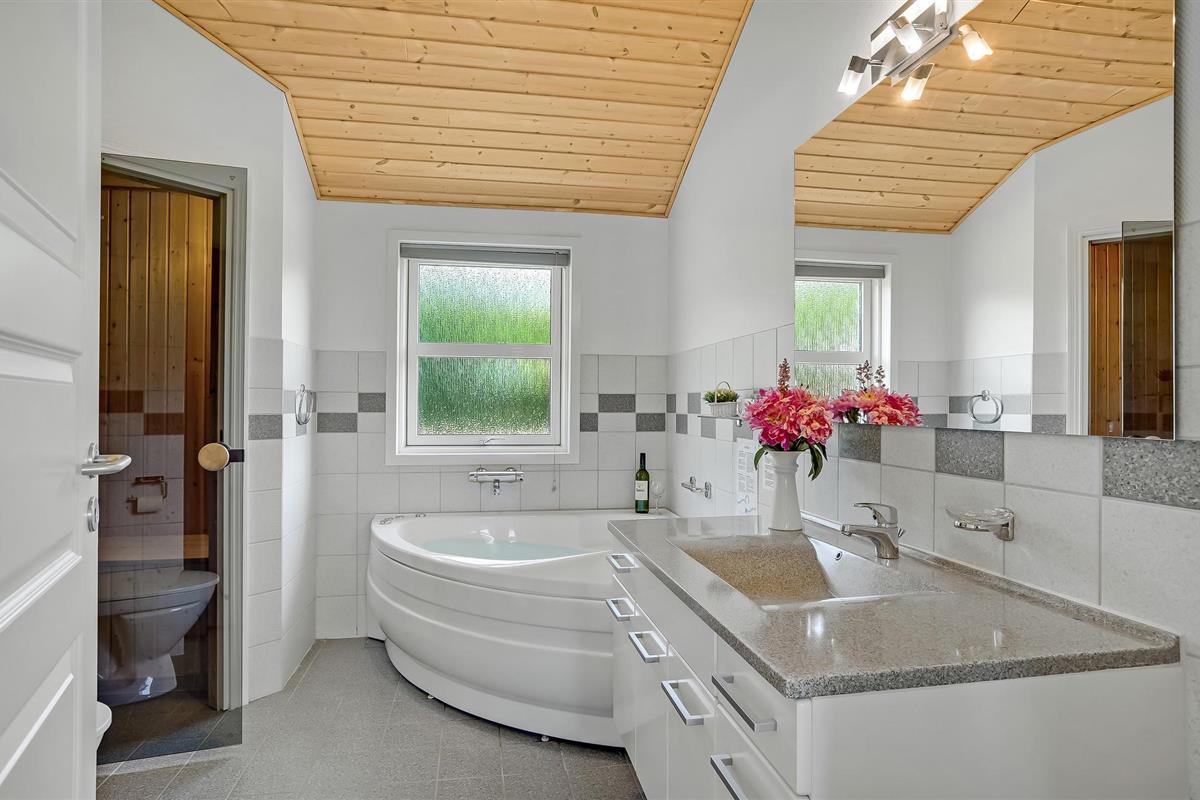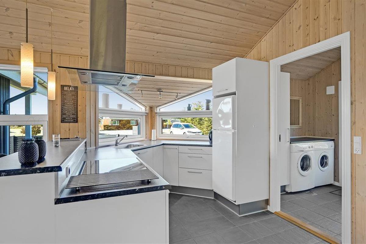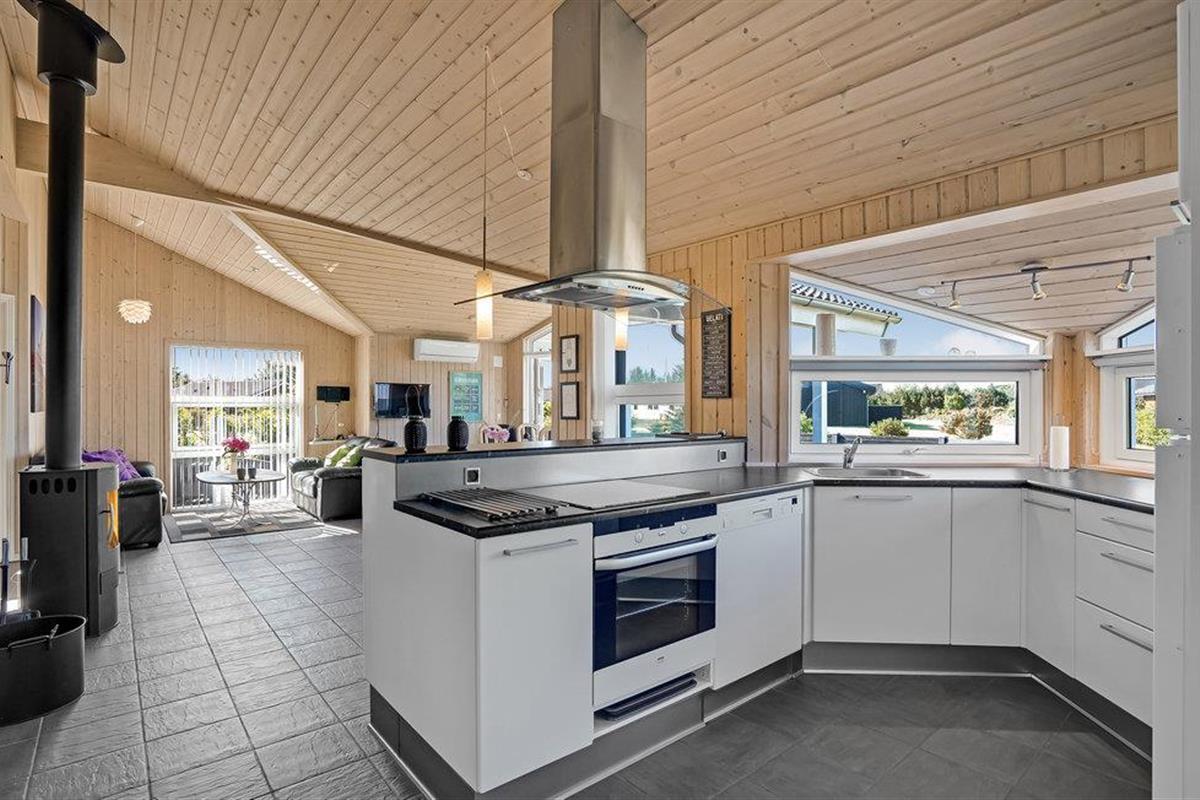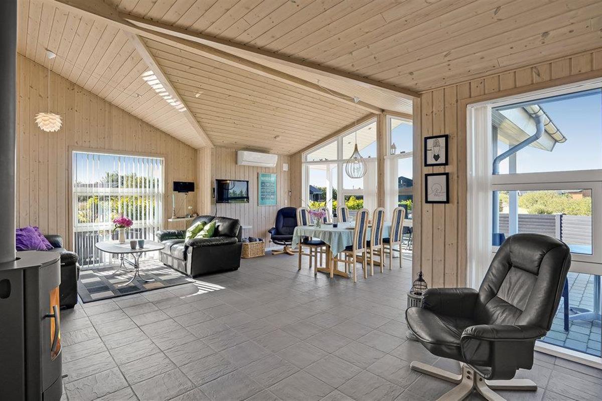 Zeer smaakvol ingericht huis in een nieuwer vakantiehuisgebied bij Bork Havn en dicht bij de gemeenschappelijke speeltuin. In Ringkøbing Fjord heeft u unieke surfomstandigheden. In het woongedeelte is het gezellig samenzijn, want de houtkachel verspreidt veel gezelligheid. De grote panoramische ramen zorgen voor een goed zicht op de tuin, waar u uw kinderen lekker kunt zien spelen. Het terras nodigt u uit om te ontspannen als u uit de whirlpool of de sauna komt. Slechts 15 minuten rijden brengt u naar de Noordzeekust.