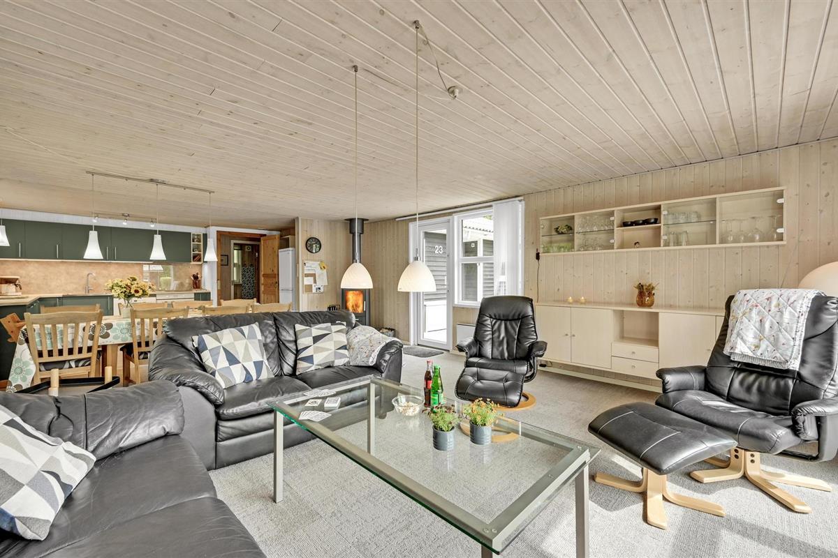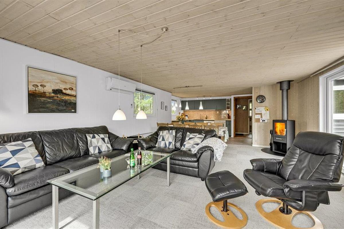Ruim en comfortabel vakantiehuis met whirlpool, houtkachel en speeltuin, op een rustig natuurperceel nabij Ringkøbing Fjord.