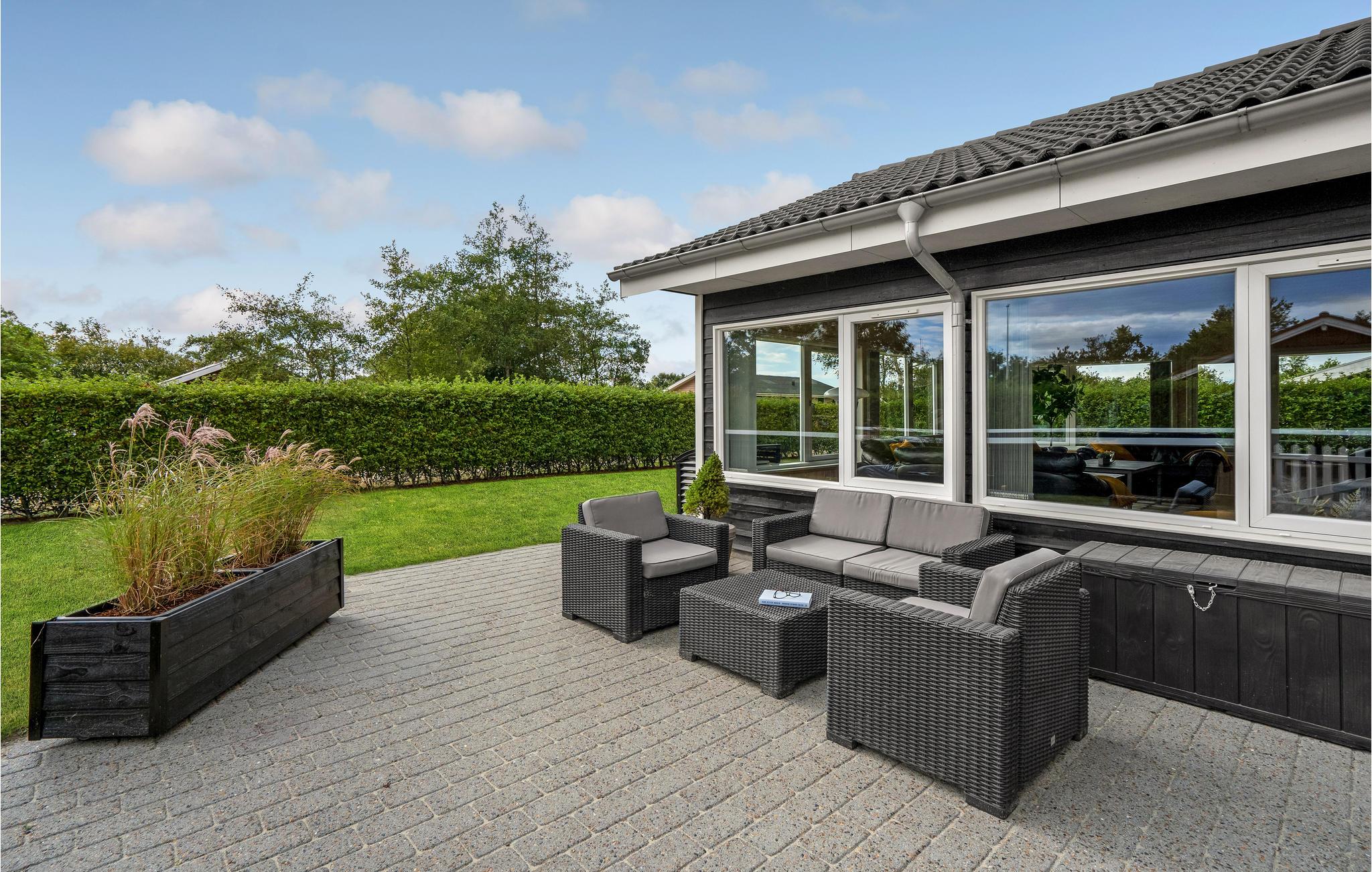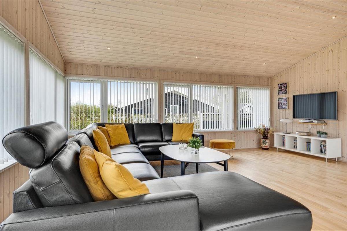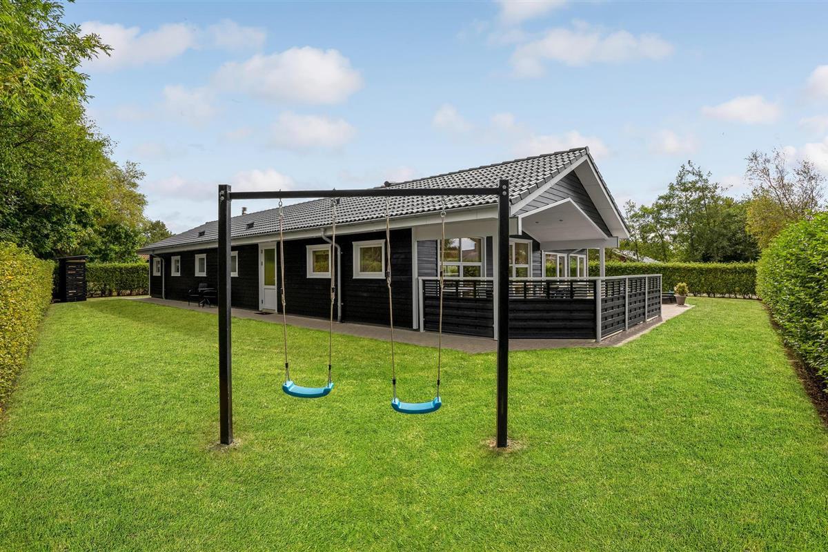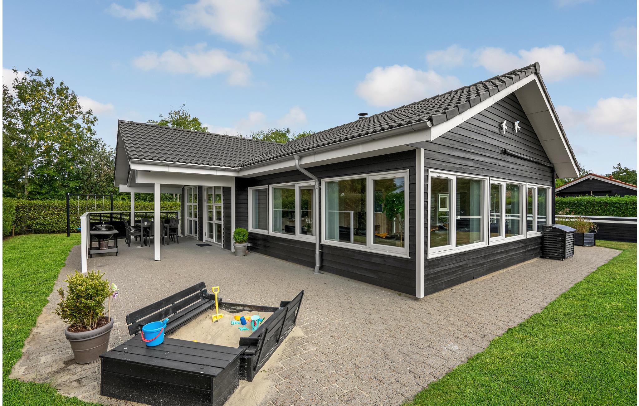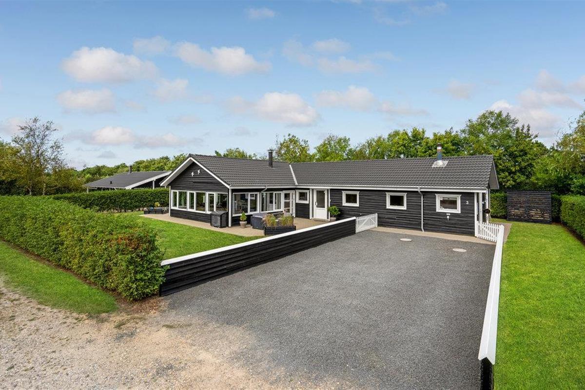 Dit grote en ruime vakantiehuis is ideaal voor een vakantie voor een groot gezin of een vakantie voor twee gezinnen. Het huis is goed ingericht met een grote eetkeuken, evenals een gezellige en ruime woonkamer met veel licht, die u uitnodigt om te ontspannen. Behalve in de woonkamer is er vloerverwarming in het hele huis - er is een houtkachel in de woonkamer en een warmtepomp. Het huis heeft vier mooie slaapkamers, allemaal met tweepersoonsbedden, en twee badkamers, waarvan één met whirlpool. Vanuit het huis heeft u toegang tot zowel een groot gedeeltelijk overdekt terras als een open terras. Het huis biedt spelletjes en activiteiten voor jong en oud, zowel binnen als buiten. Speelgoed voor kinderen is aanwezig.