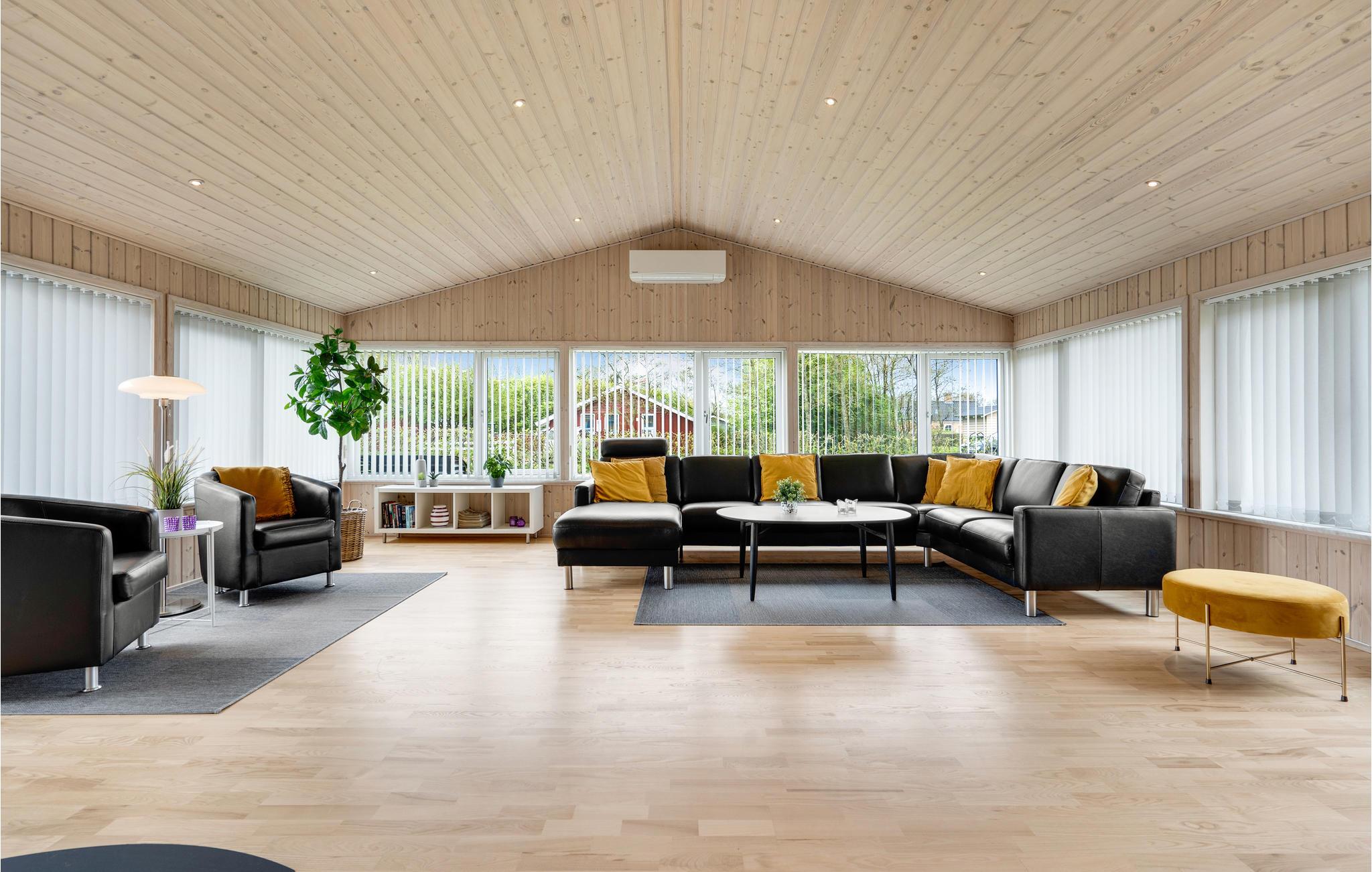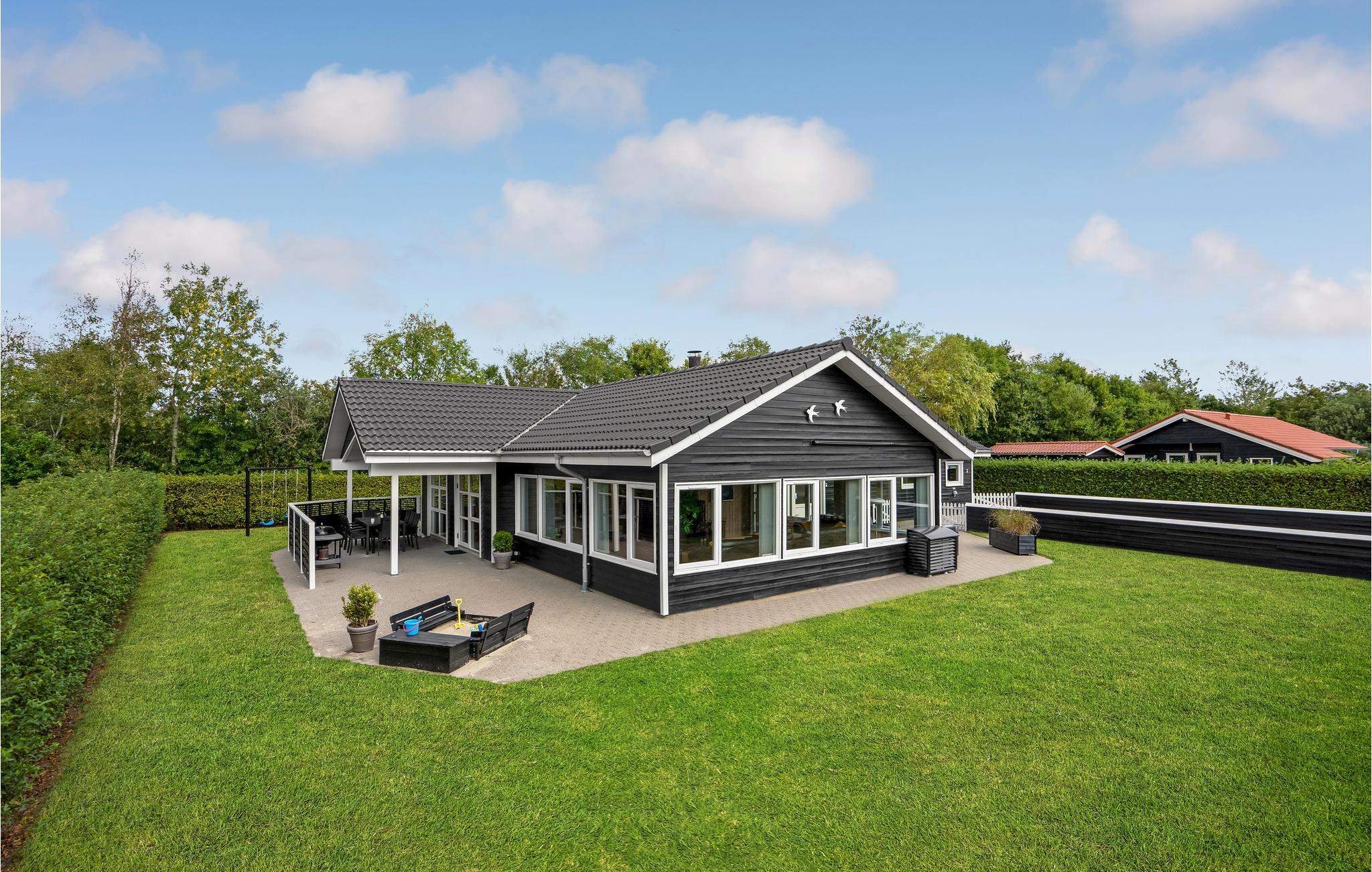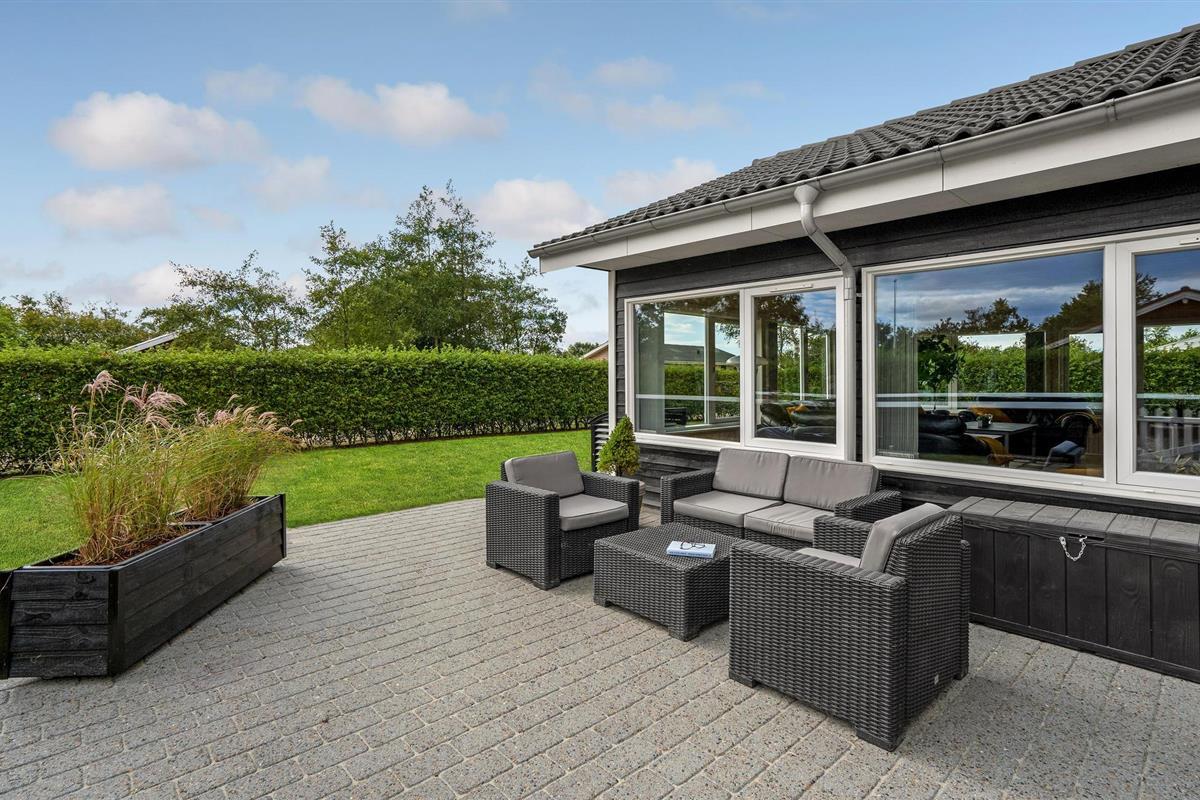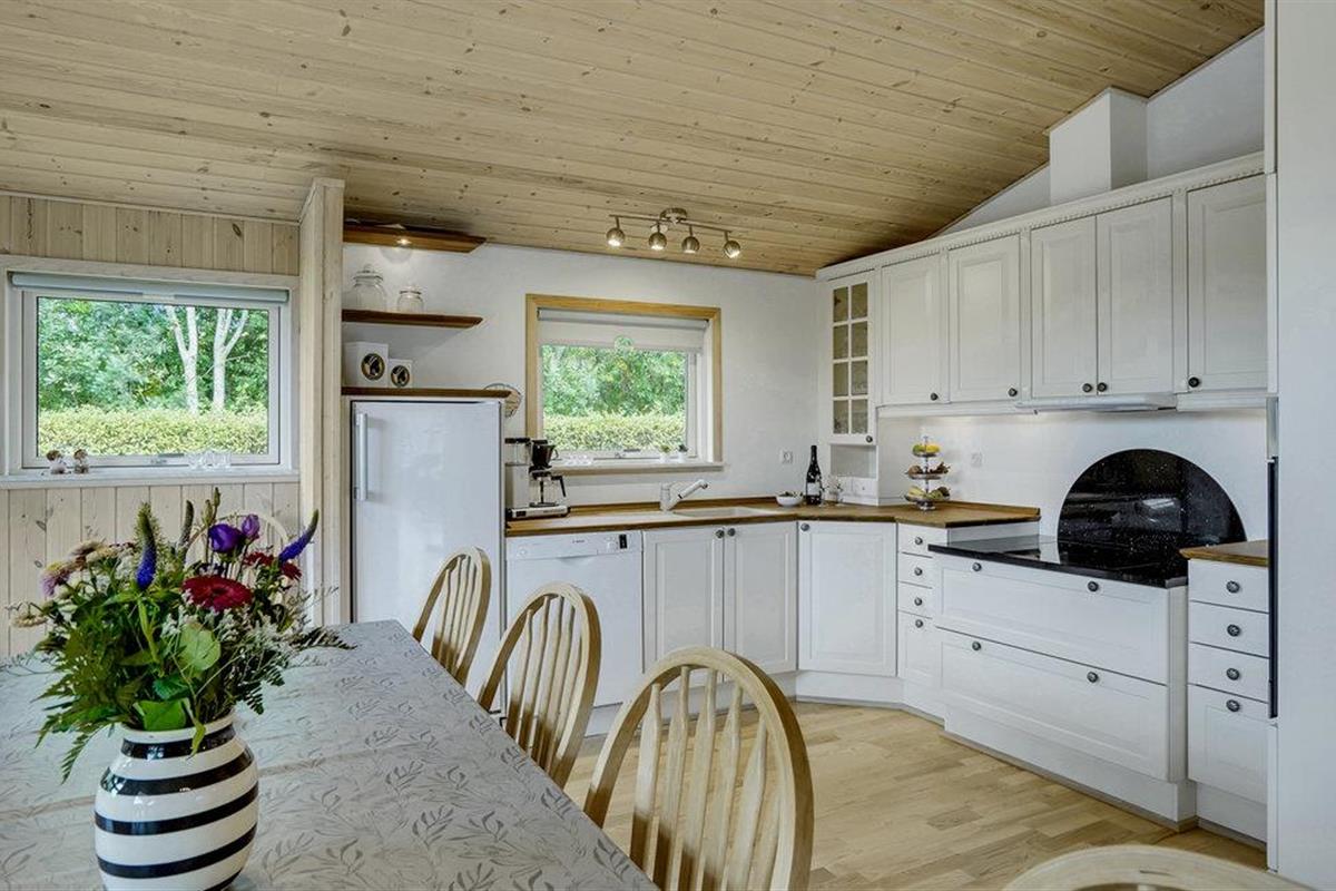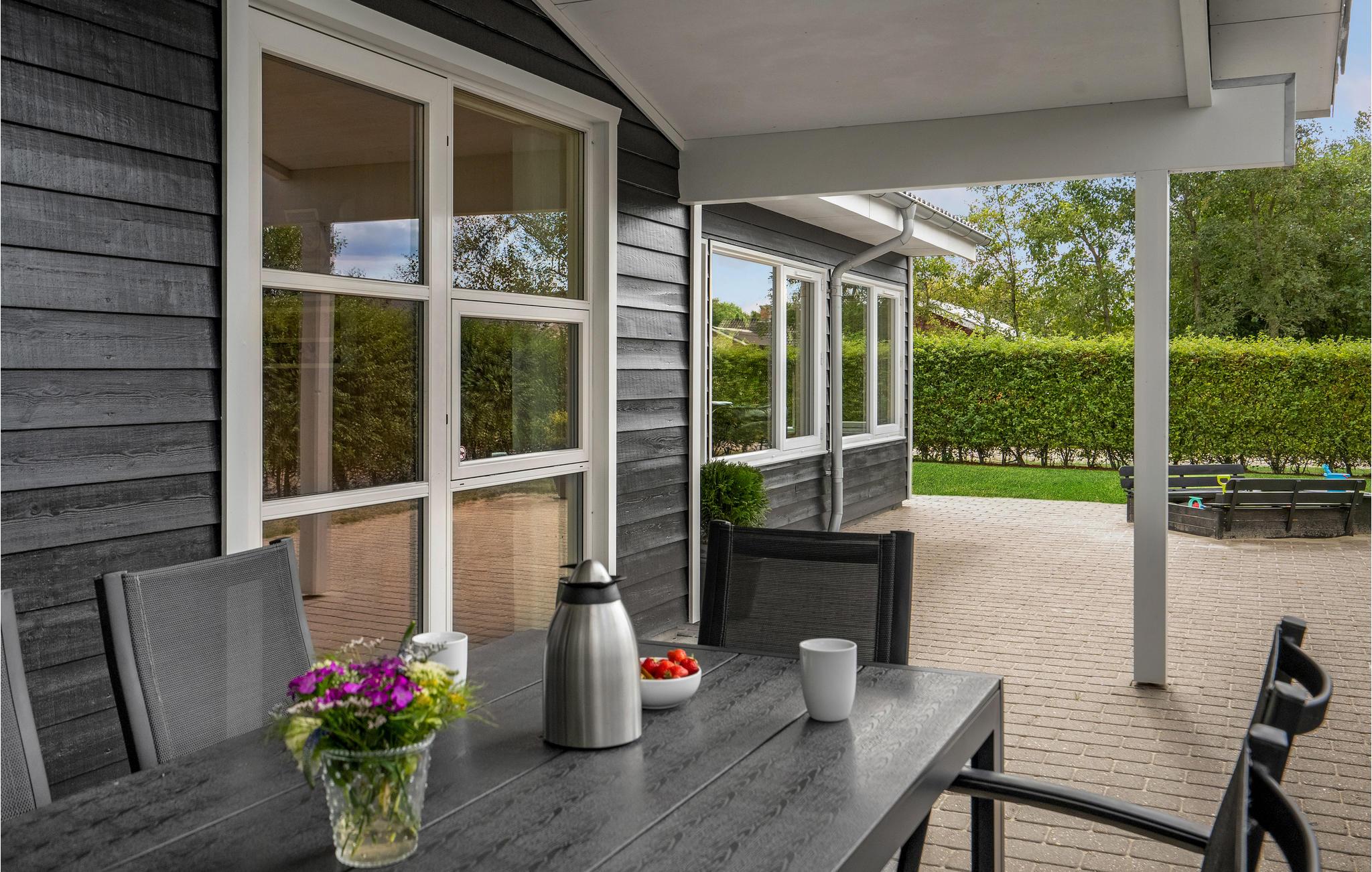 Dit grote en ruime vakantiehuis is ideaal voor een vakantie voor een groot gezin of een vakantie voor twee gezinnen. Het huis is goed ingericht met een grote eetkeuken, evenals een gezellige en ruime woonkamer met veel licht, die u uitnodigt om te ontspannen. Behalve in de woonkamer is er vloerverwarming in het hele huis - er is een houtkachel in de woonkamer en een warmtepomp. Het huis heeft vier mooie slaapkamers, allemaal met tweepersoonsbedden, en twee badkamers, waarvan één met whirlpool. Vanuit het huis heeft u toegang tot zowel een groot gedeeltelijk overdekt terras als een open terras. Het huis biedt spelletjes en activiteiten voor jong en oud, zowel binnen als buiten. Speelgoed voor kinderen is aanwezig.