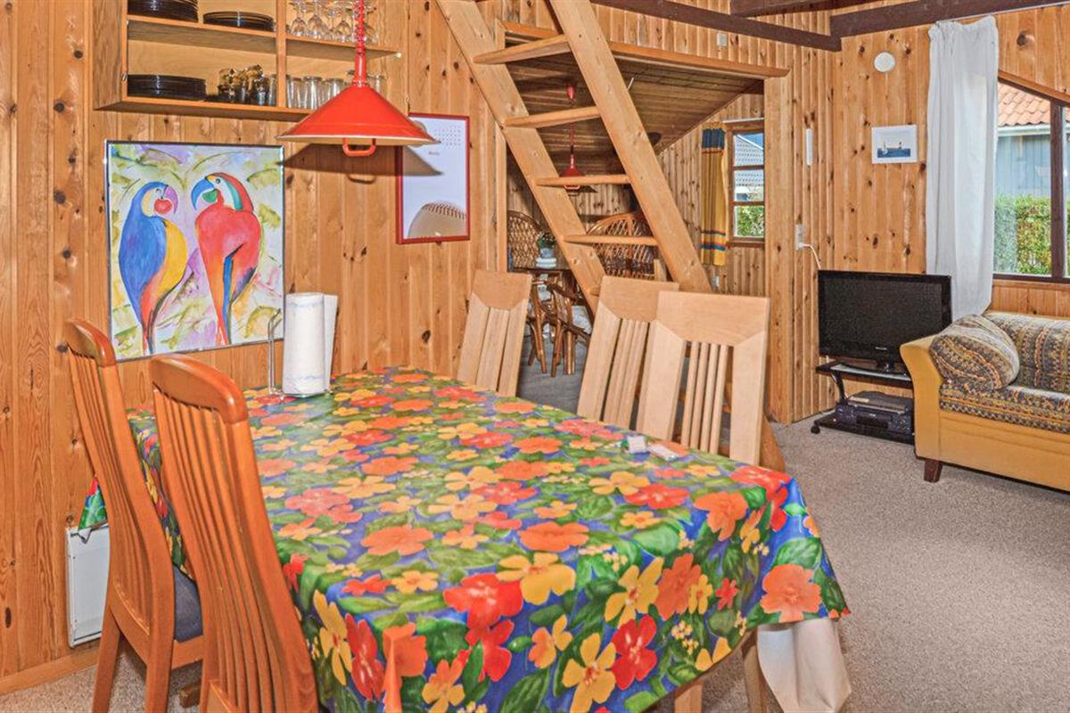 Het interieur met houten panelen van dit traditionele vakantiehuis op een rustige locatie is kleurrijk en uitnodigend. Verheug je op gezellige avonden voor de open haard met bordspellen of ontspan met een spannend boek in de huiselijke sfeer. Verwen jezelf met je favoriete gerechten, die je samen kunt bereiden in de liefdevol uitgeruste keuken.