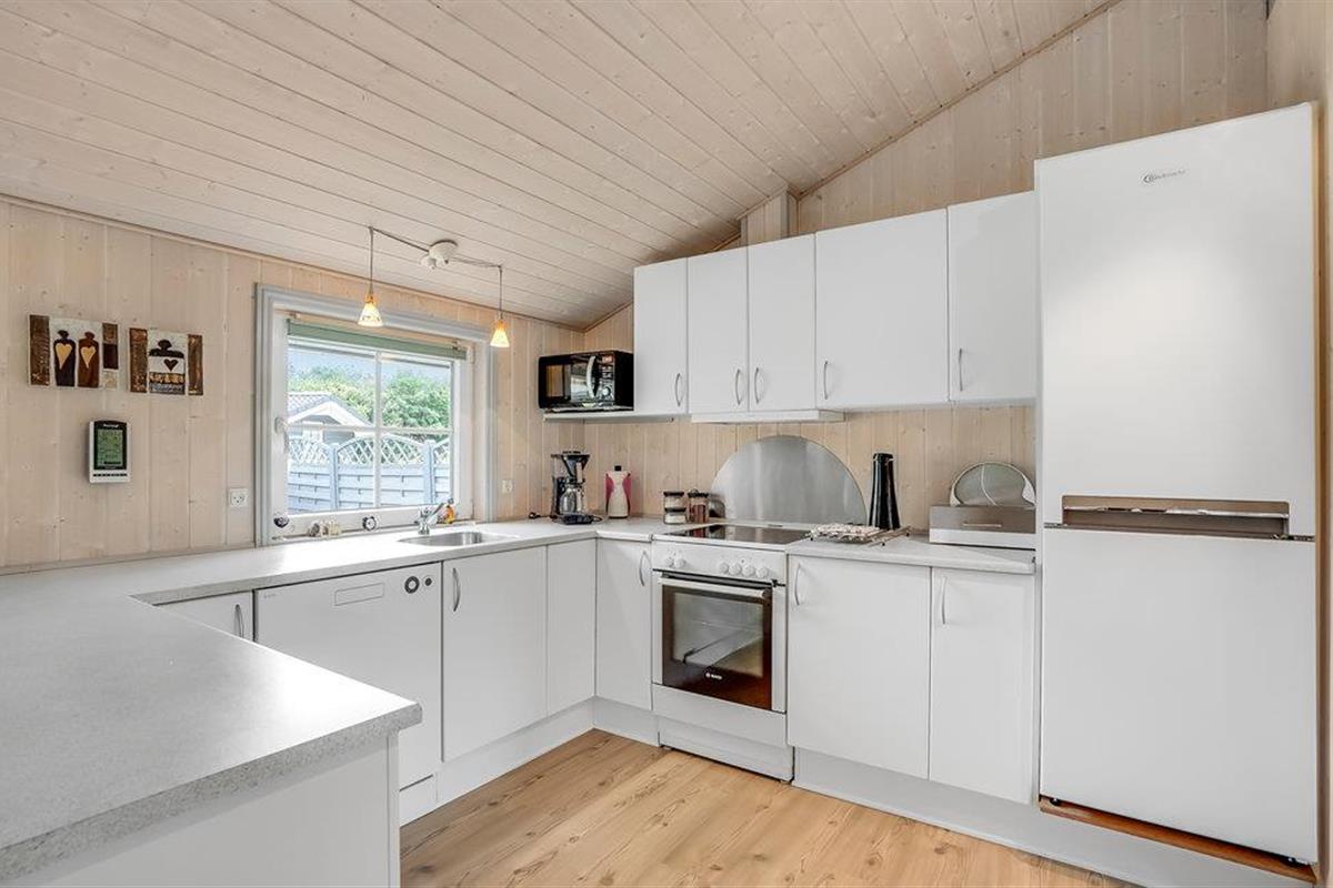 Het vakantiehuis ligt in een rustige en schilderachtige omgeving bij de haven van Bork en het Ringkøbing Fjord. Bij de haven vindt u een surfstrand en een surfschool, evenals restaurants en cafés. Er zijn ook goede fiets- en wandelpaden op het platteland, en het is 8 km naar de Noordzee.