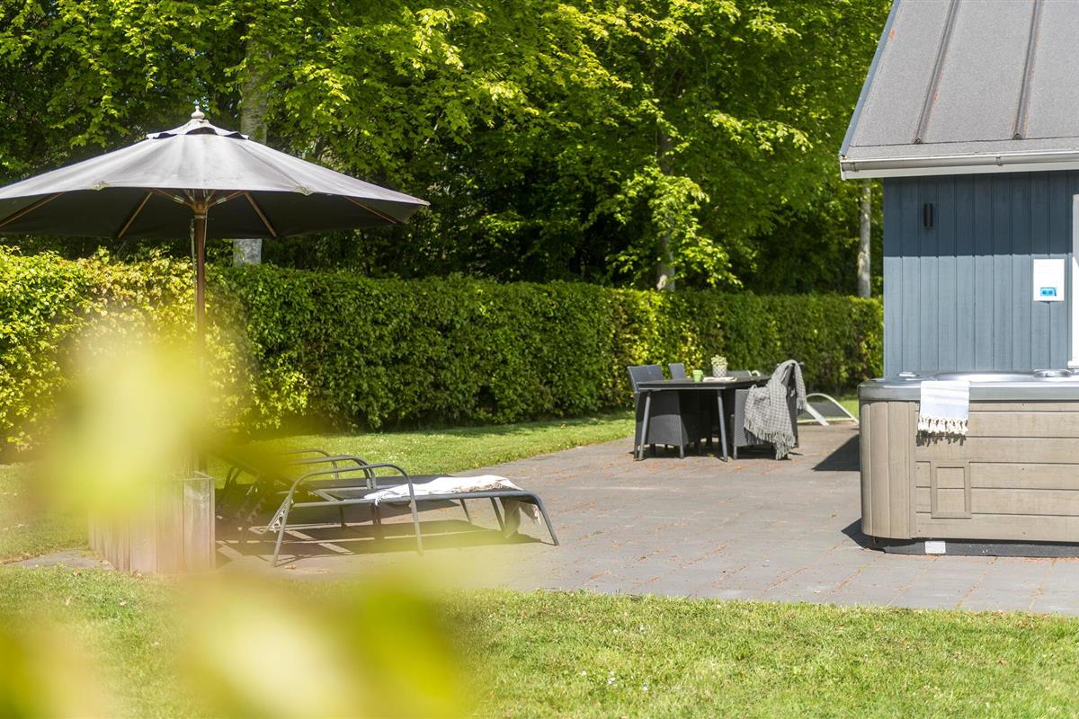 Geniet van de zon op het grote terras met ligstoelen of ontspan in de bubbelende whirlpool. Gebruik de barbecueplaats voor gezellige maaltijden in de buitenlucht. De ruime tuin biedt veel ruimte om te spelen en rond te rennen. Laat je kinderen de nabijgelegen speeltuin ontdekken met glijbaan, schommels, klimtoestellen en grote trampoline.