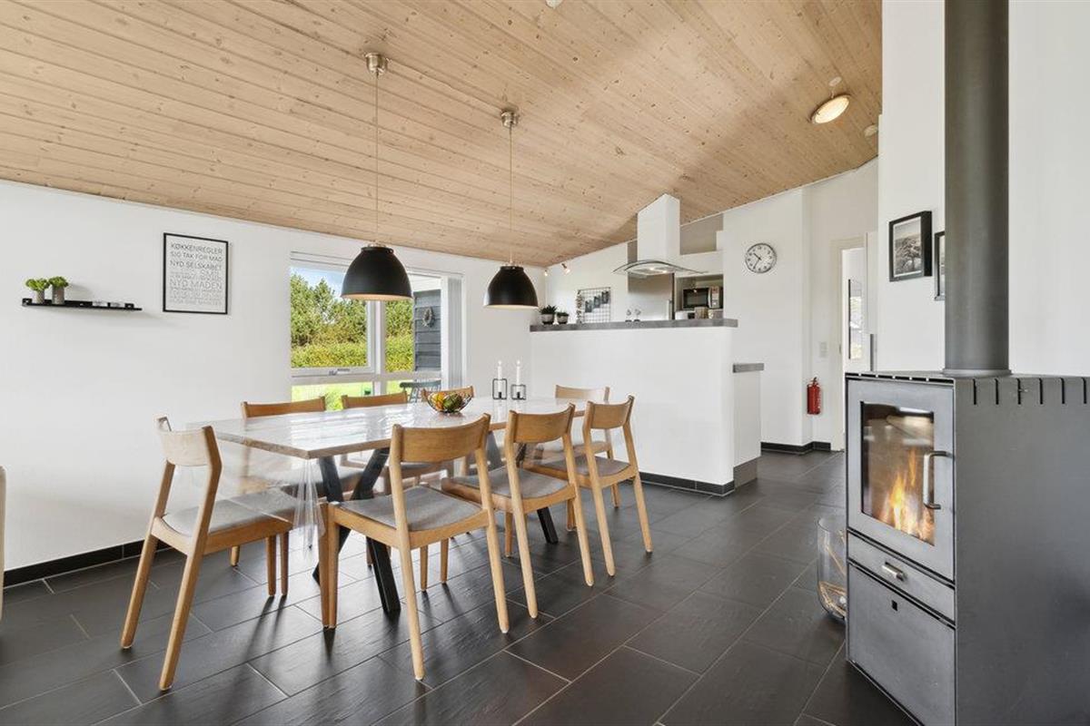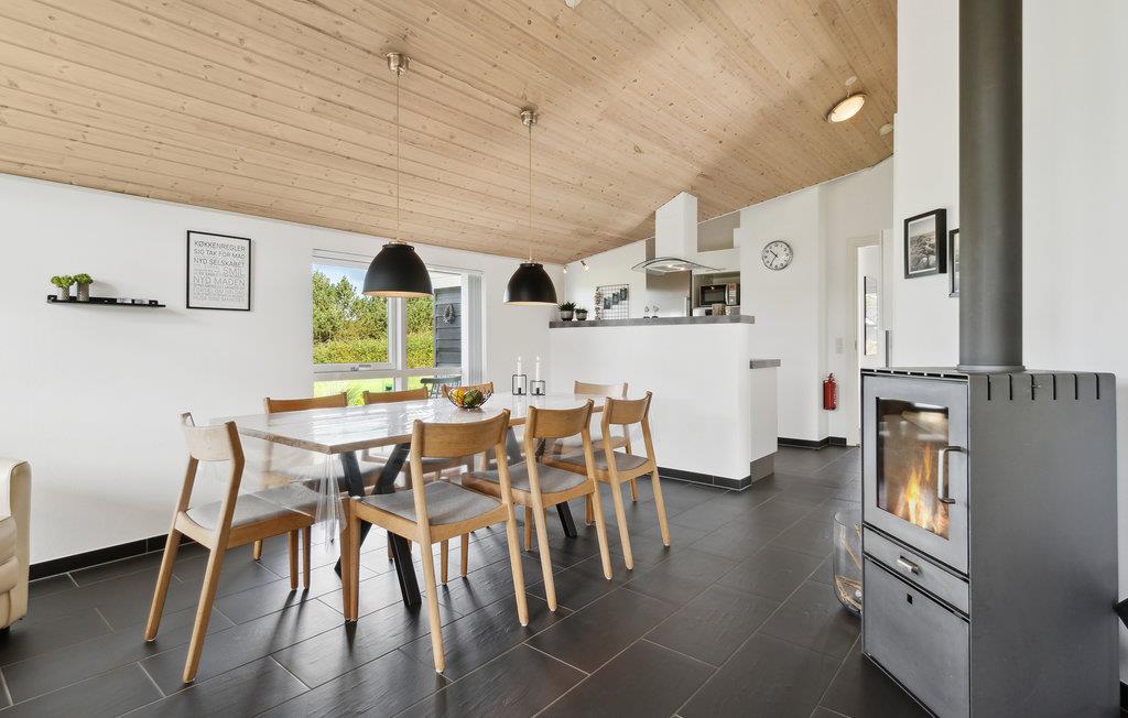 Welkom in dit lichte en mooie huis in Bork Havn. Het vakantiehuis ligt in een rustige straat en belooft je een heerlijke vakantie in een geweldige sfeer, met een aantrekkelijke inrichting en altijd uitzicht naar buiten. Kom samen met je geliefden in de open woonkamer, kook in de keuken, speel spelletjes aan de eettafel en ontspan op de bank, bij een knapperend haardvuur. Trakteer jezelf ook op wellness-uurtjes door een sauna te nemen of te ontspannen in het bubbelbad.