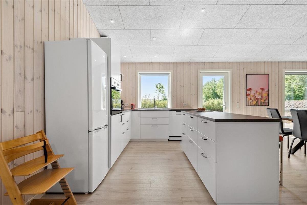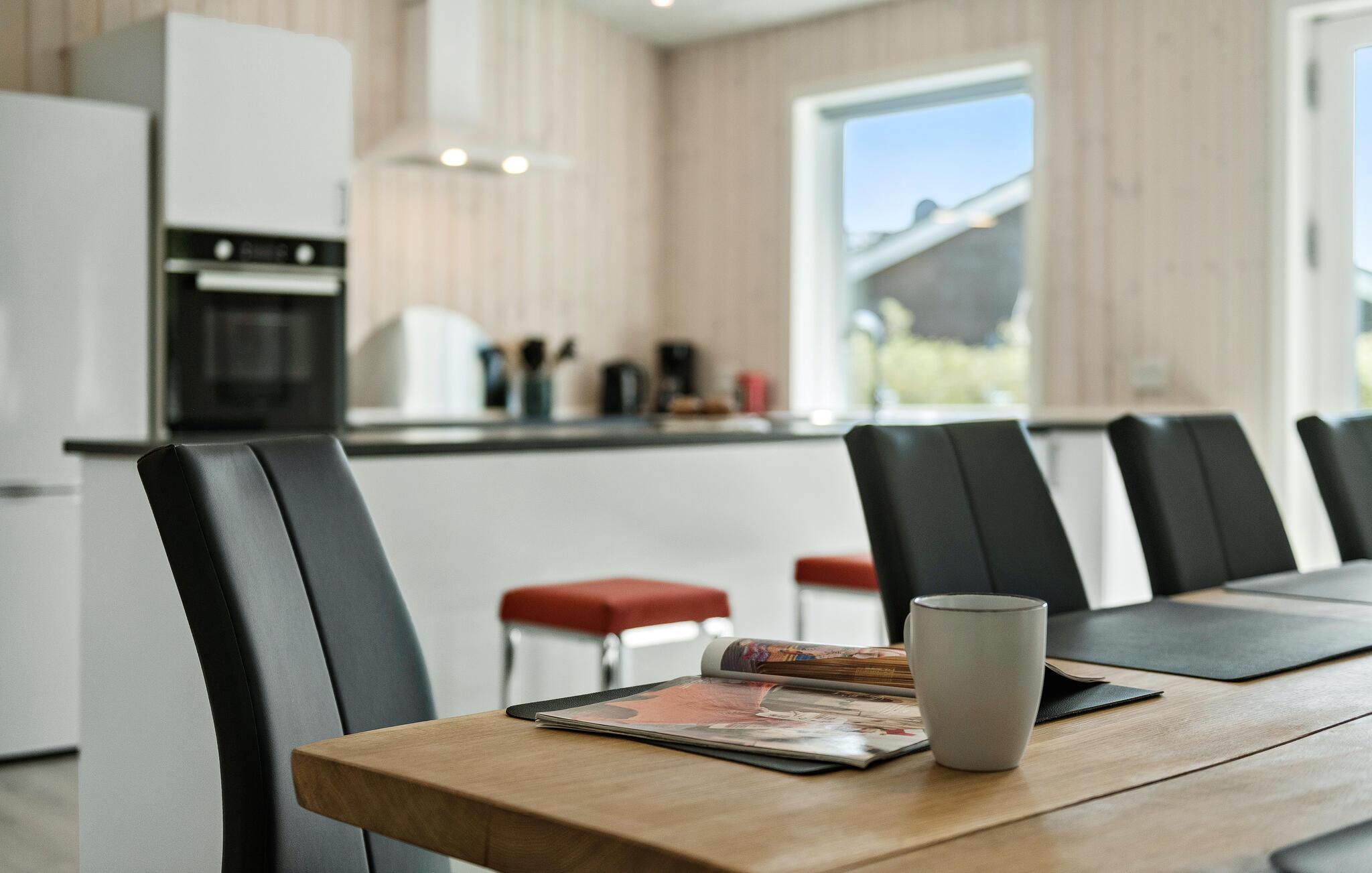 Je moderne vakantiehuis op een ongestoorde locatie biedt je een ontspannen verblijf met vele prachtige voorzieningen in Bork Havn aan Ringkøbing Fjord. Stap binnen en geniet van de lichte, luchtige kamers met grote ramen die u een prachtig uitzicht naar buiten geven. De stijlvolle banken en uitnodigende eethoek creëren een gezellige sfeer.