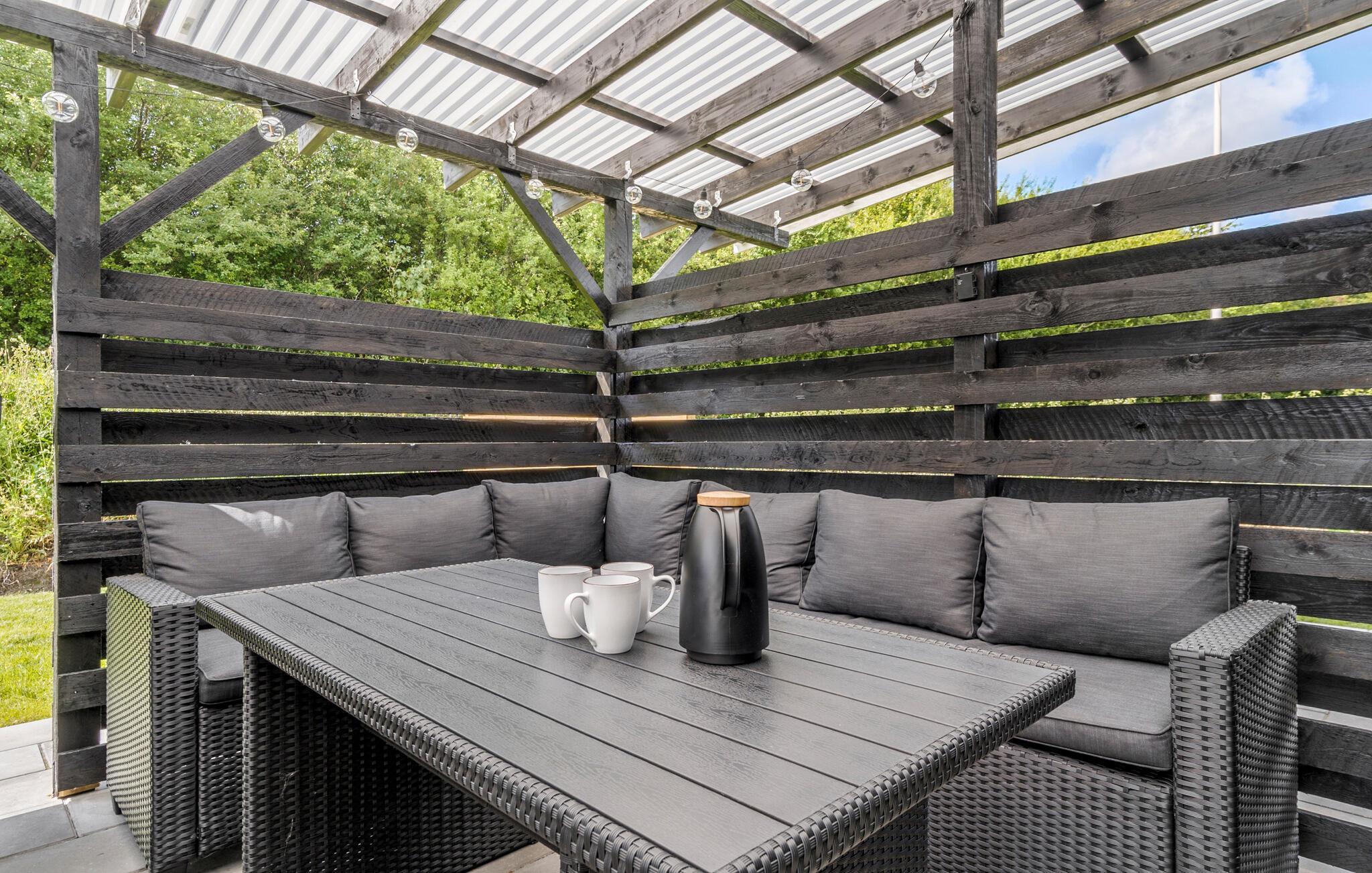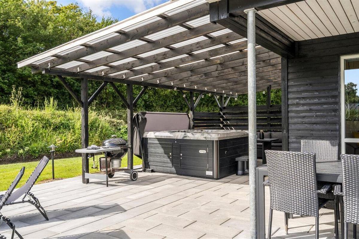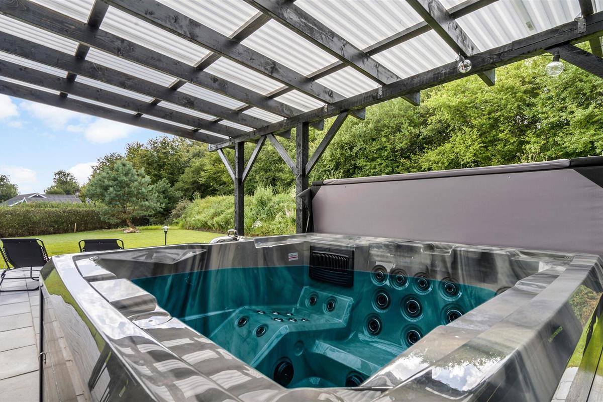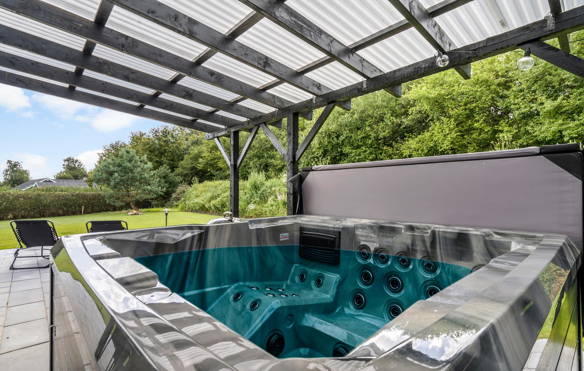 Breng zonnige dagen door op het ruime terras, dat is uitgerust met comfortabele ligstoelen en tuinmeubilair. Je kunt nog meer ontspannen met het hele gezin in je ruime hot tub buiten. En organiseer gezellige barbecue-avonden in de buitenlucht.