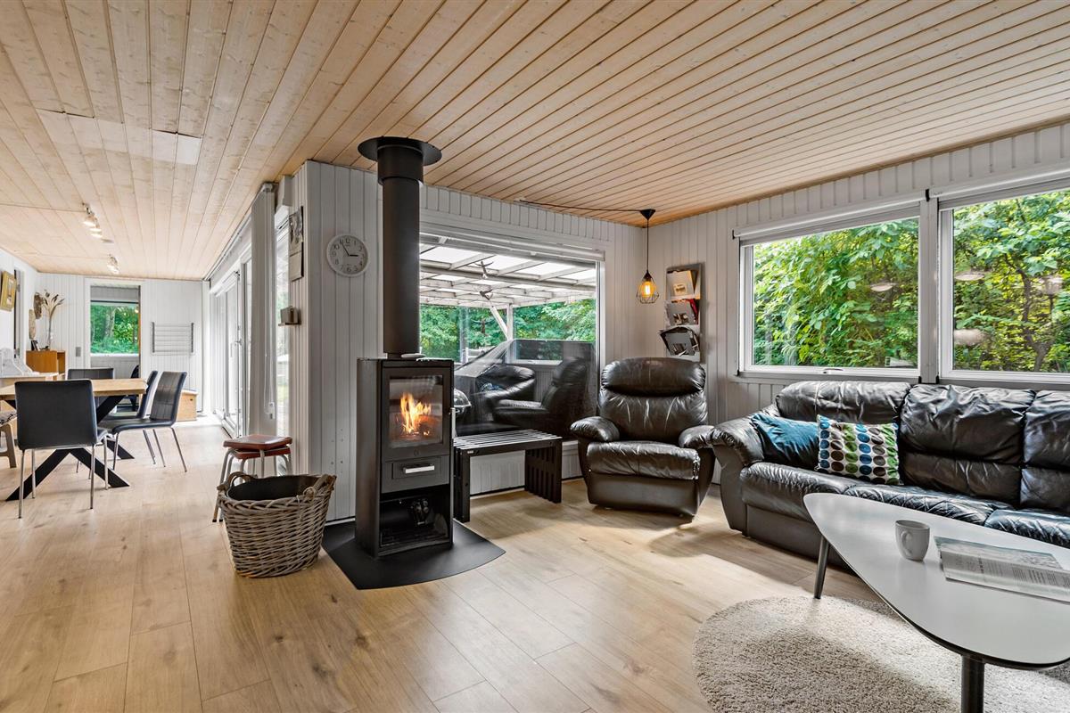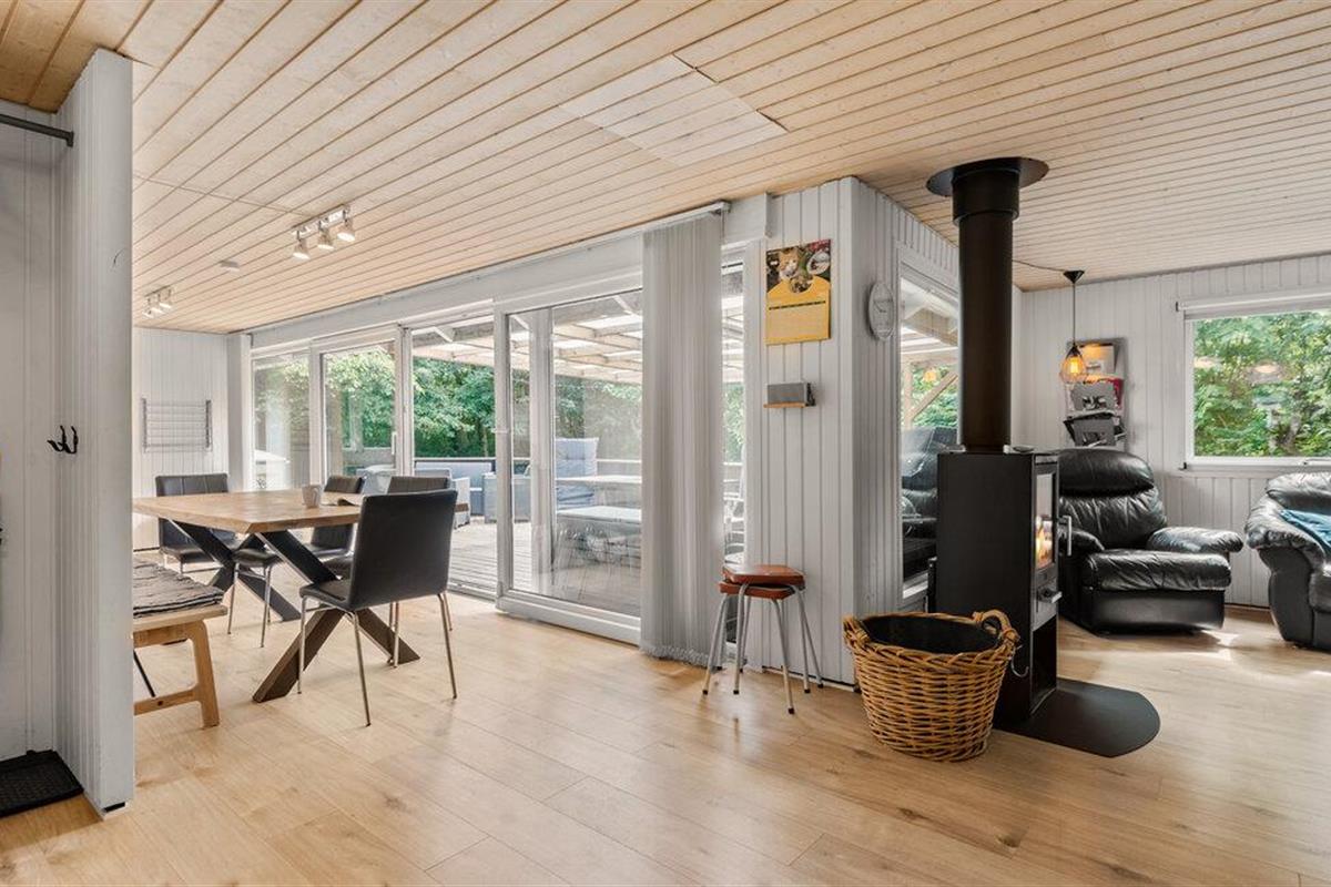 Ontspan met je gezin in dit praktische en aangename vakantiehuis, dat alles biedt wat je nodig hebt voor een zorgeloze vakantie. Voel je hier thuis, warm jezelf op voor de houtkachel en geniet van gezellige uurtjes met lekker eten of spelletjes aan de eettafel, vanwaar je door de terrasdeur op het grote, overdekte terras stapt. Geniet van de rust in de mooie, omheinde tuin en ontspan in het Finse houten bad in de open lucht.