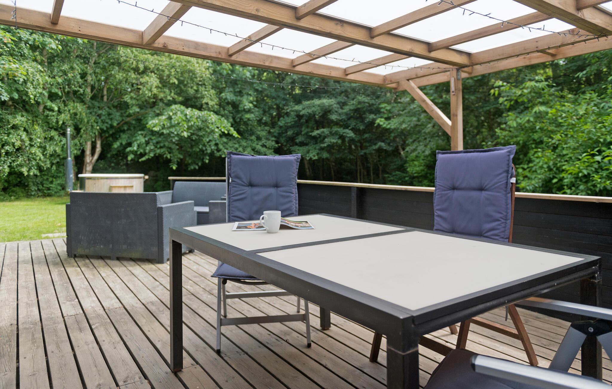 Ontspan in dit knusse vakantiehuis in Bork Havn met Finse houten bad en grote tuin, ideaal voor een rustige familievakantie.