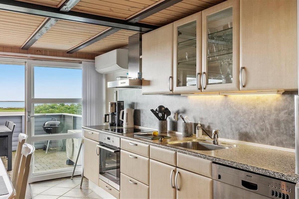 Het uitzicht is hier fenomenaal. Welkom in dit vakantiehuis, dat direct aan de kust van Ringkøbing Fjord ligt en je zal betoveren met zowel het panoramische uitzicht op de blauwe zee als de aantrekkelijke inrichting. In de keuken vind je een open en lichte sfeer die uitnodigt om samen te koken. Ontbijt samen aan de centrale eettafel met uitzicht op zee. Daarna neem je misschien je koffie mee naar een van de twee terrassen. Je kunt ontspannen aan de achterkant van het huis, beschut tegen de wind. Of je kunt genieten van de frisse lucht en het uitzicht aan de voorkant. De woonkamer biedt comfort met een gezellige zithoek, ideaal voor ontspannen filmavonden. Je kunt ook gebruik maken van je kleine privé wellnessruimte om te ontspannen in de whirlpool en sauna na een dag vol vakantieavonturen.