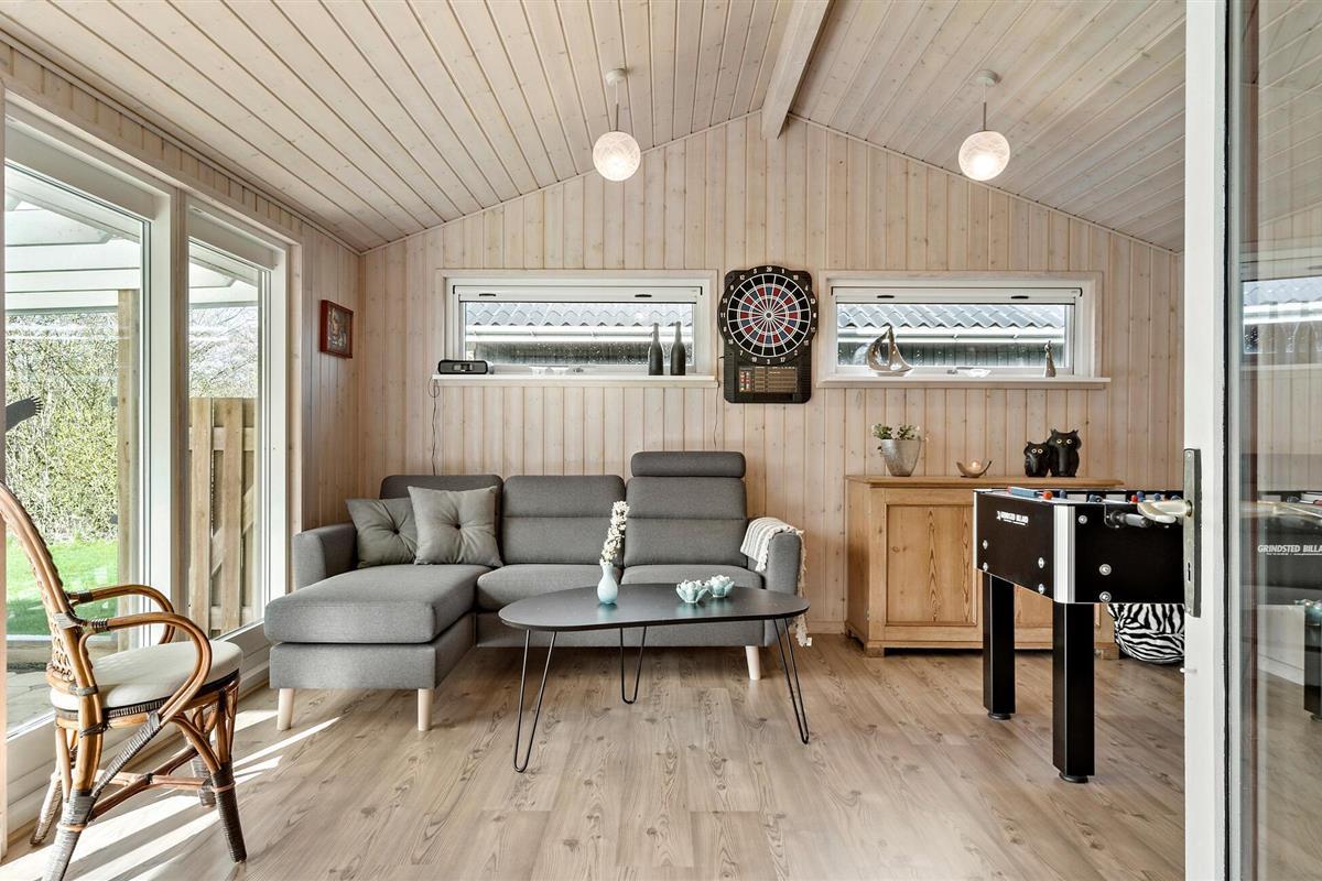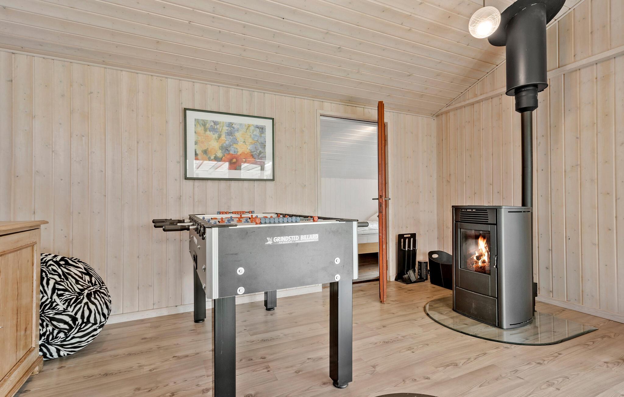 Reis met je gezin naar West-Jutland en verheug je op een ontspannen en gezellige vakantie in dit aantrekkelijke vakantiehuis. Gebruik de open woonkamer voor gezelligheid terwijl je kookt, eet en ontspant op de bank en kijk uit naar de aangrenzende activiteitenruimte met darts en tafelvoetbal, die ook baadt in het licht.