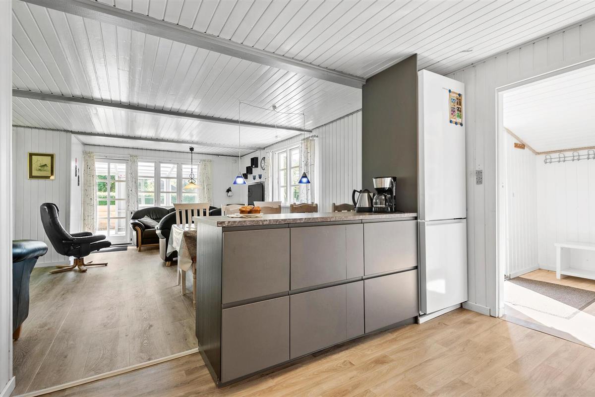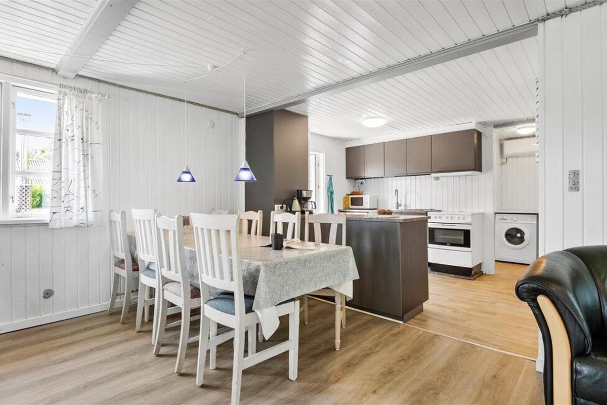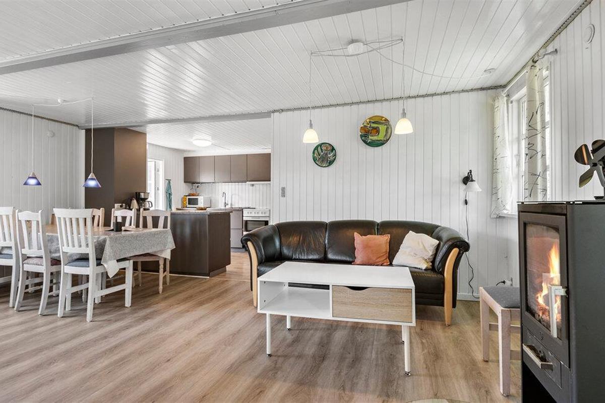 Een onvergetelijke vakantie aan het schilderachtige Ringkøbing Fjord wacht op u in uw vakantiehuis, dat u verwelkomt met lichte, verlichte kamers. De stijlvolle banken en gezellige eethoek creëren een gezellige sfeer die uitnodigt om te blijven hangen. De gezellige houtkachel draagt hier ook aan bij en zorgt voor behaaglijke warmte op koelere dagen.