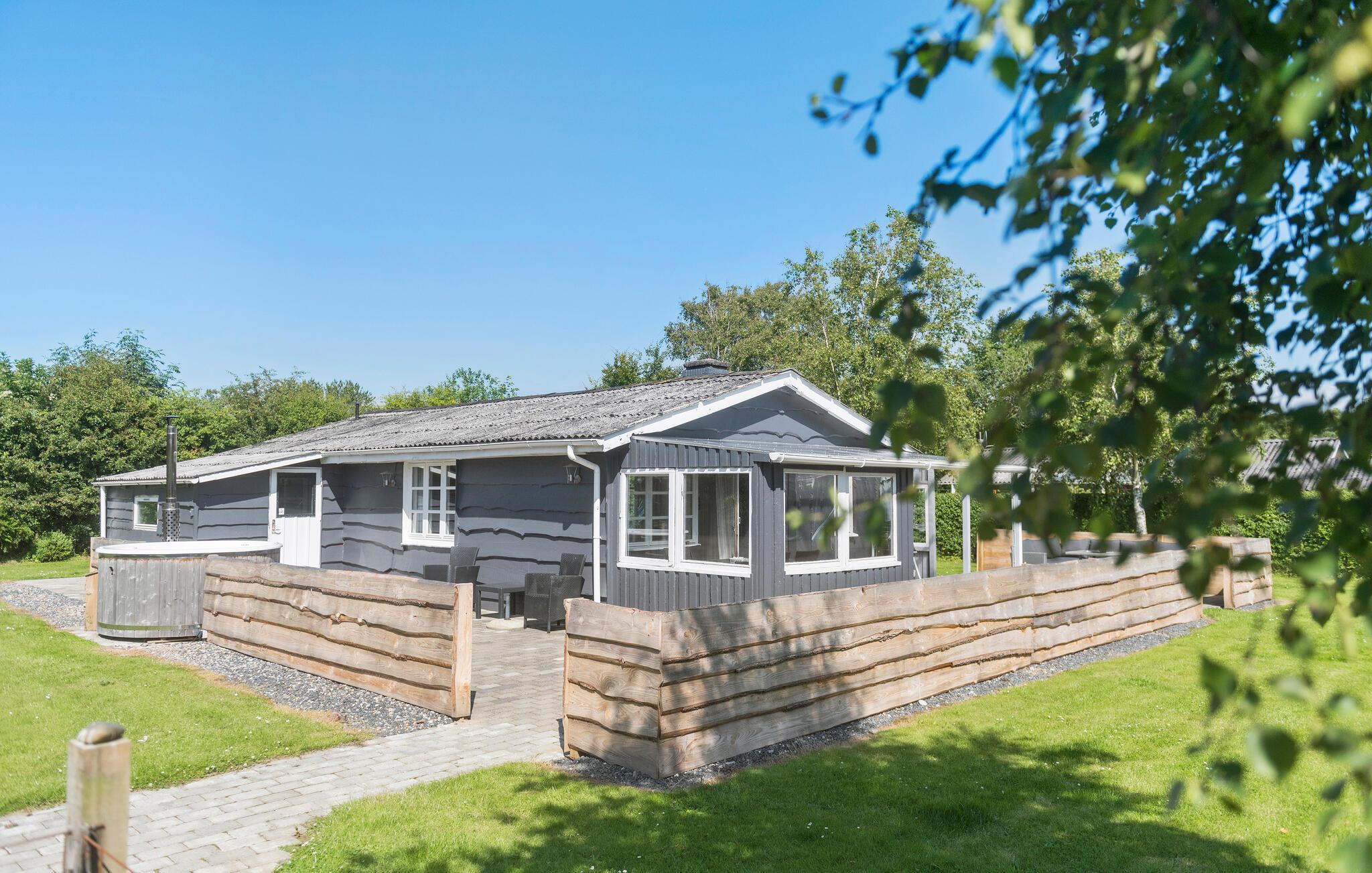 Ontspan in dit sfeervolle vakantiehuis aan Ringkøbing Fjord met houtkachel en Finse hot tub.