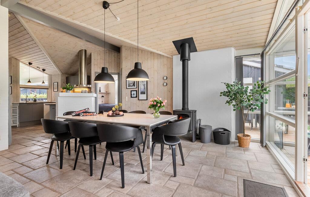 Maak het jezelf gemakkelijk in de ruime, lichtovergoten woonkamer. De hoge plafonds, grote ramen en harmonieuze houttinten creëren een open, vriendelijke sfeer. Neem plaats op de zachte bank, kijk samen een film of geniet van een uitgebreid diner aan de eettafel. Kook in de keuken met moderne apparatuur en ontspan daarna in de sauna of trakteer jezelf op een warm bad in de whirlpool in de badkamer.