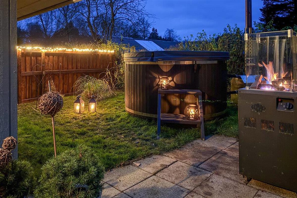Je kunt ook heerlijk dineren op het gedeeltelijk overdekte terras bij de warme gashaard. Je kinderen zullen dol zijn op de grote tuin met schommels, zandbak en buitenfaciliteiten. Een rustige avond kun je afsluiten in het Finse houten bad in de open lucht, waar je direct toegang toe hebt vanaf een ander ruim terras.