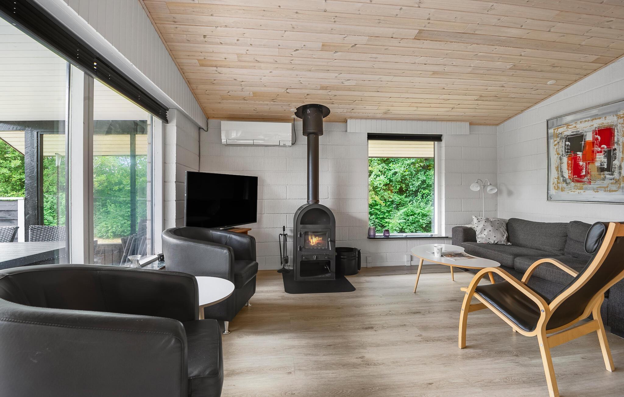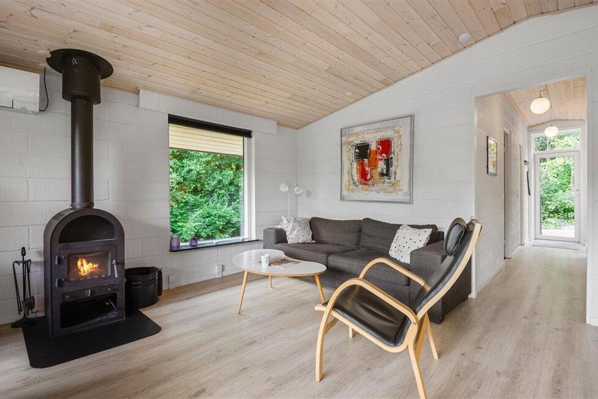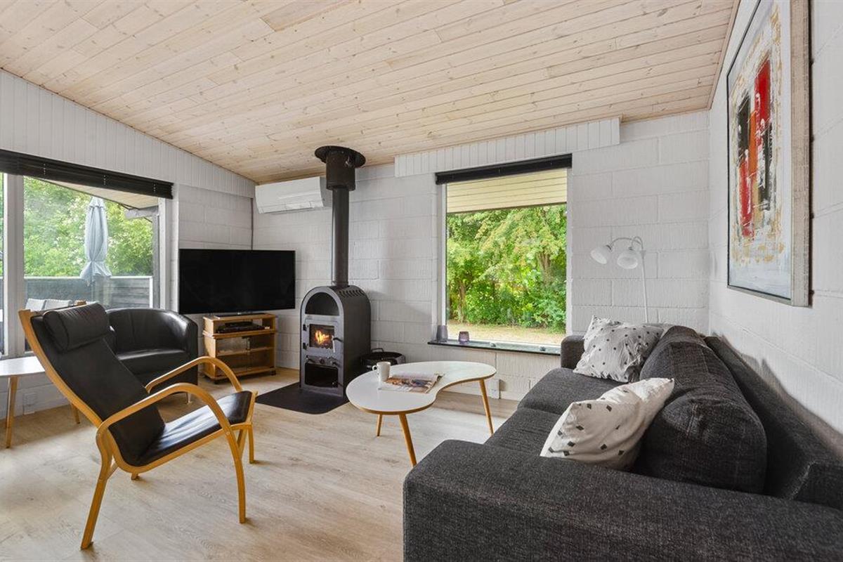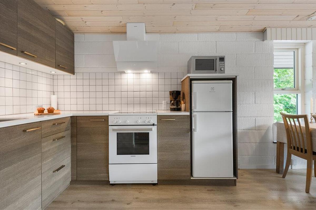Maak het jezelf gemakkelijk in de lichte woonkamer met houtkachel. Ontspan op de bank, speel leuke bordspellen of sluit de dag af met een film. Kook in de praktische keuken en geniet van je maaltijden in de open en vriendelijke sfeer. Trakteer jezelf op een bezoek aan de sauna en voel hoe de warmte je lichaam en geest ontspant.