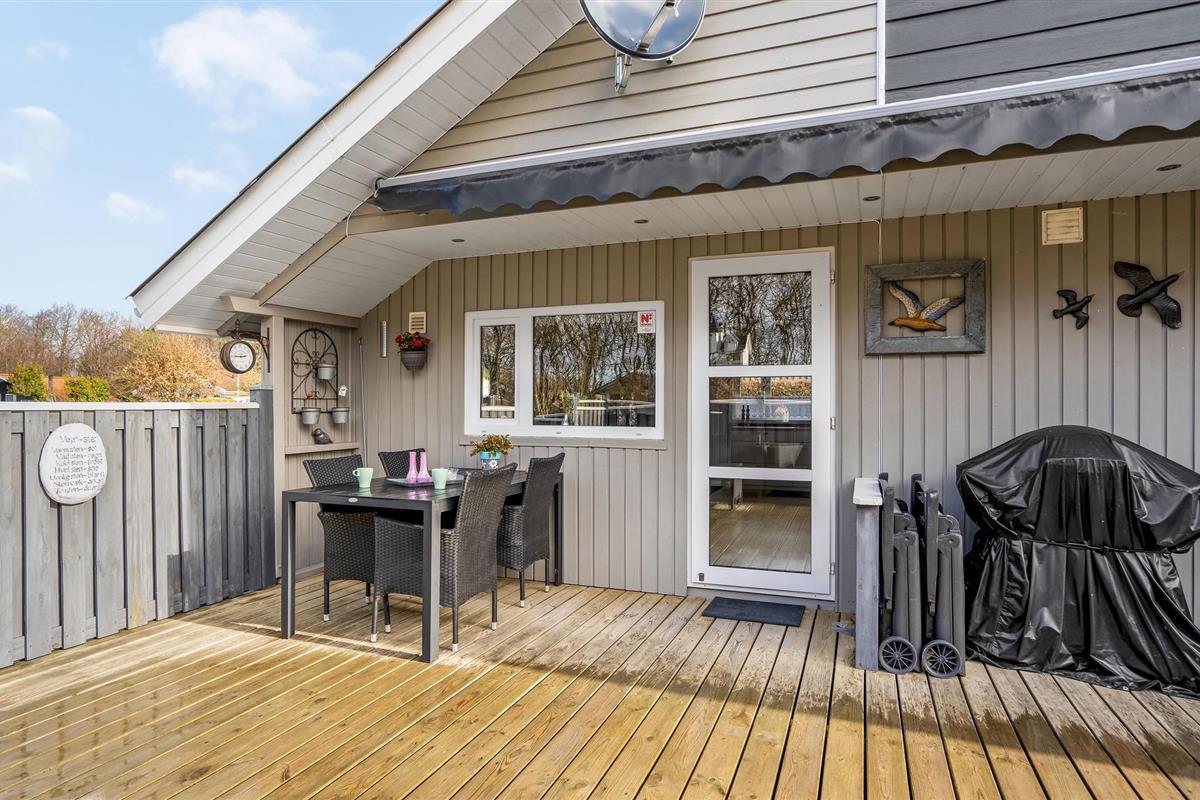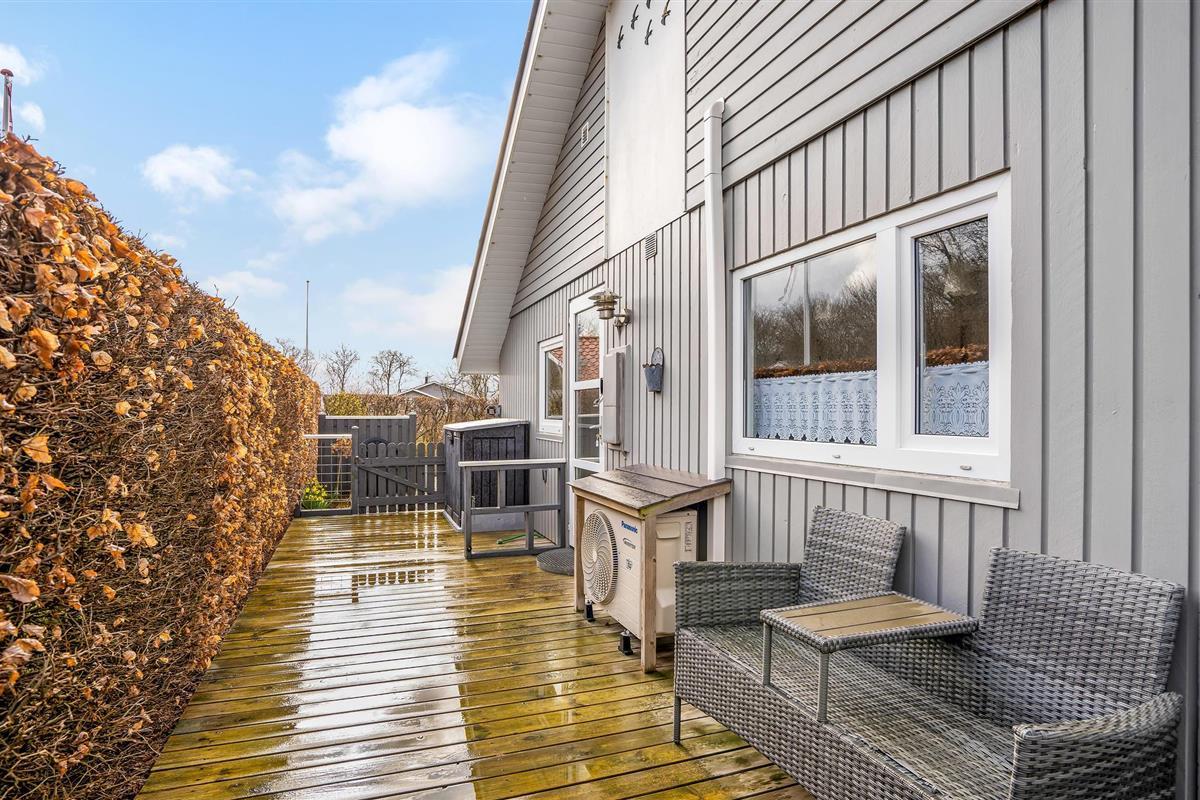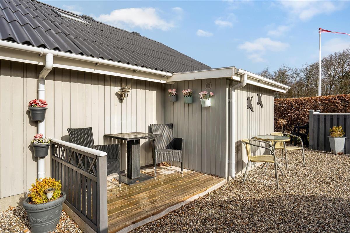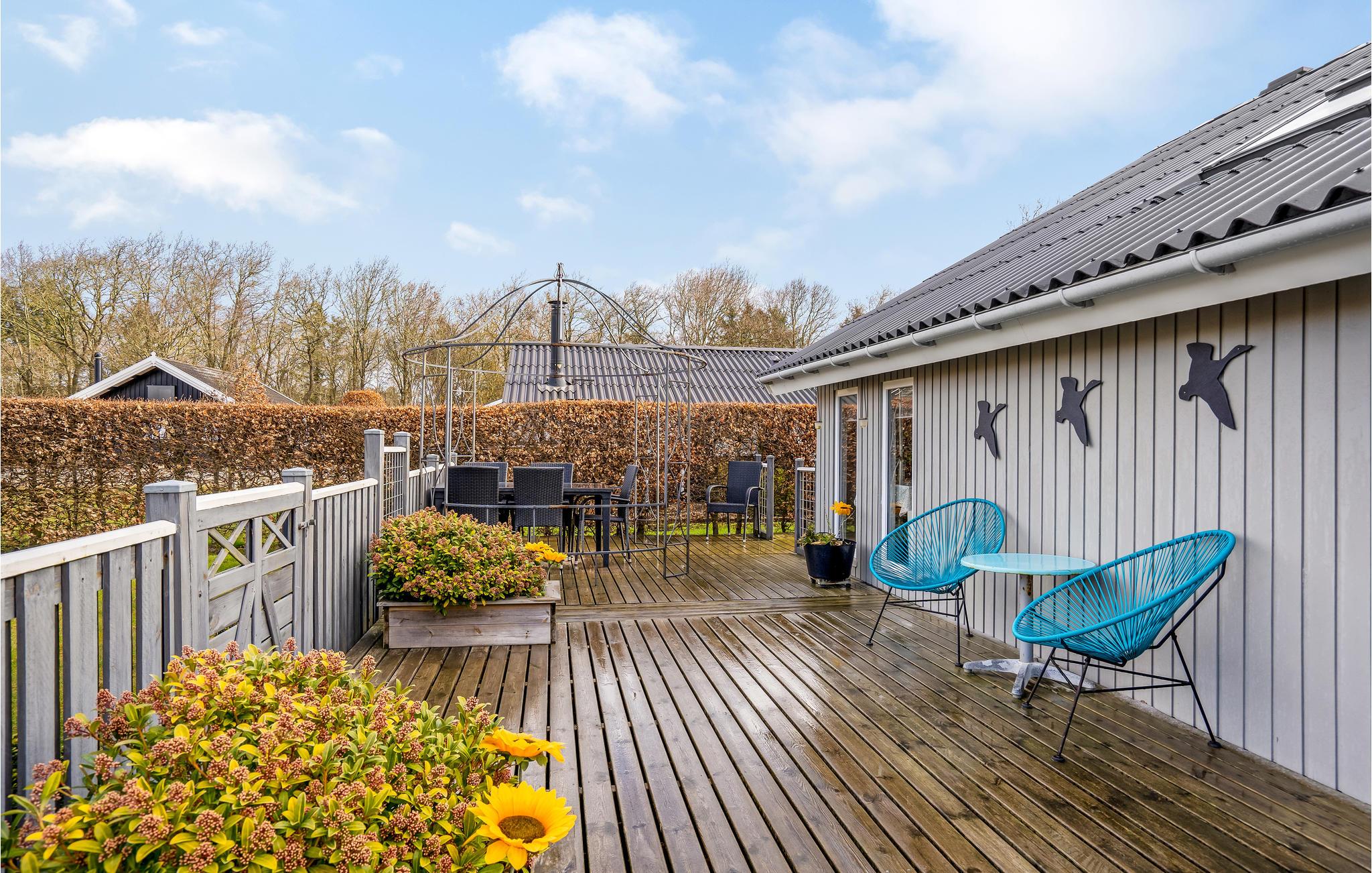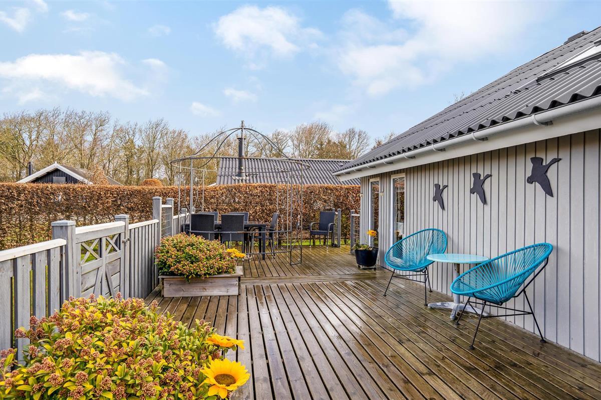 Gezellig en energiezuinig vakantiehuis nabij Ringkøbing Fjord met groot terras en tuin voor ontspanning.