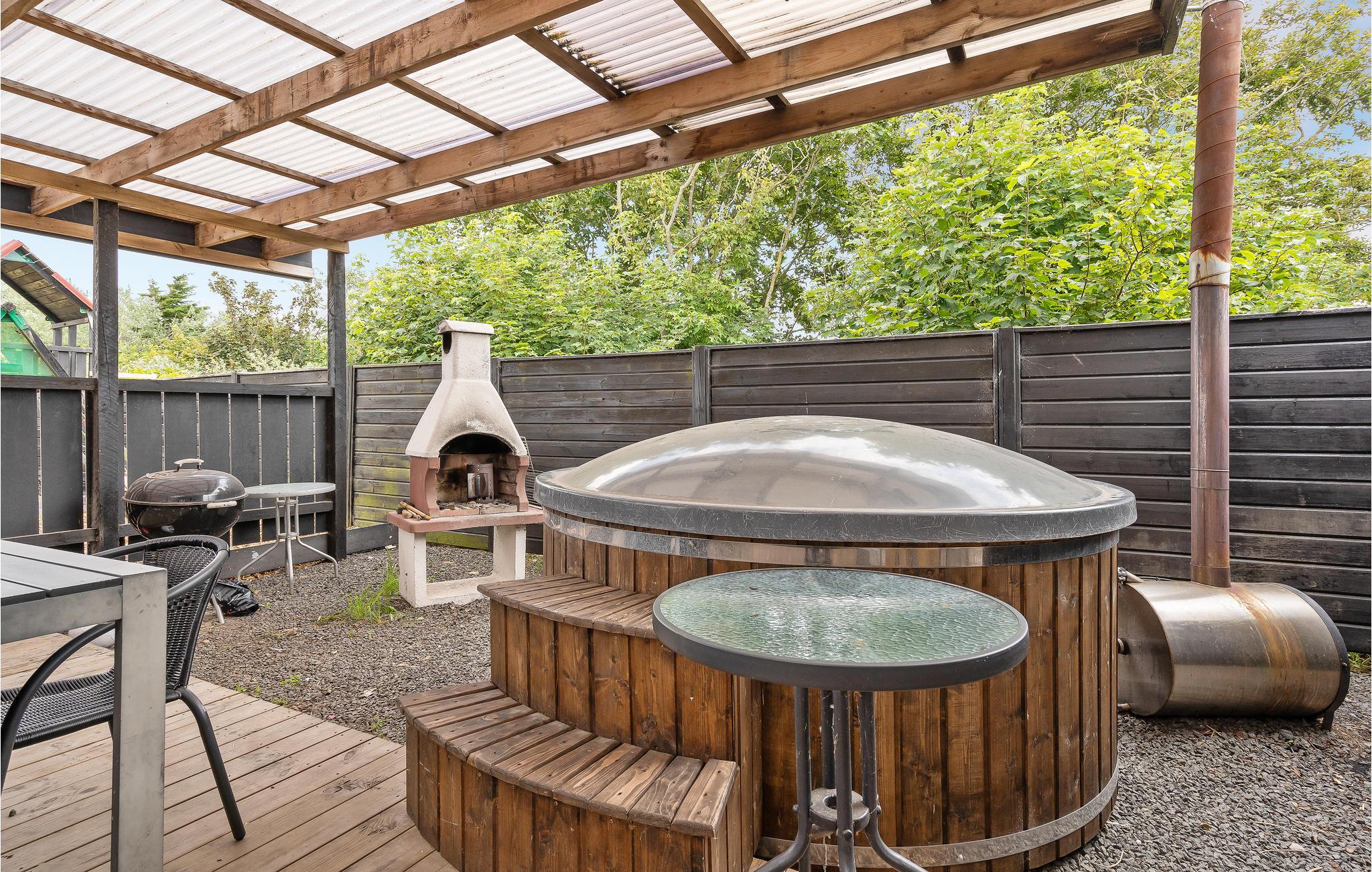 Stap uit op het overdekte terras, dat is uitgerust met tuinmeubilair, een barbecue en ligstoelen. Ontspan in het Finse houten bad, dat je zelf kunt verwarmen, en geniet van de frisse lucht. Kinderen zullen dol zijn op de kleine speeltuin met glijbaan en speeltoren, terwijl volwassenen kunnen ontspannen in de gezellige zithoek of bij de barbecue. Er is ook een beschut gedeelte met een vuurplaats en schuilhut voor lange avonden buiten.
