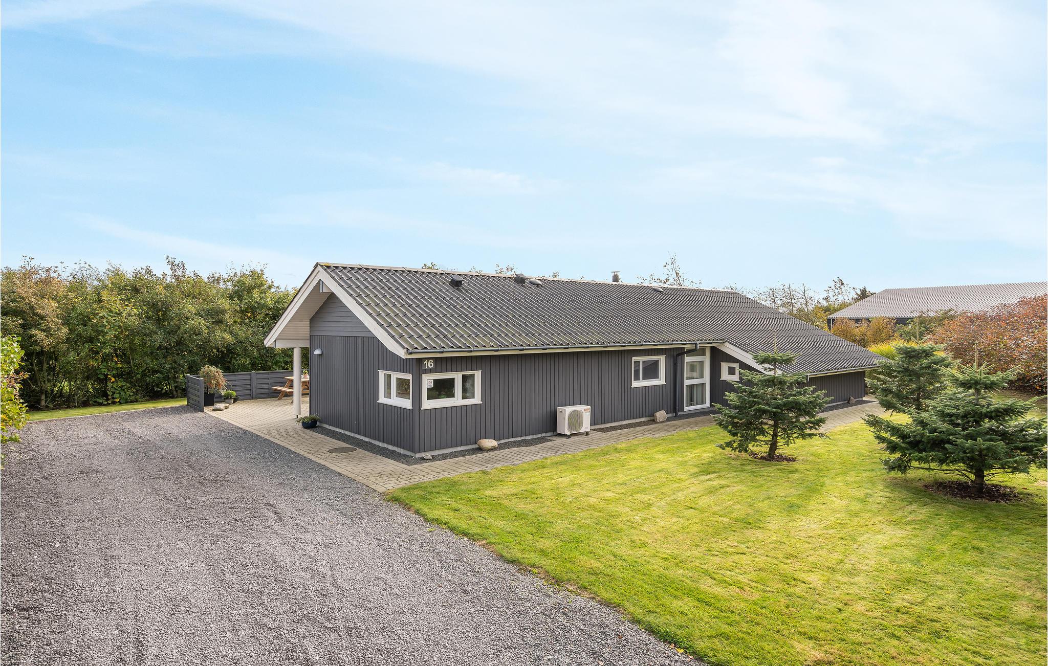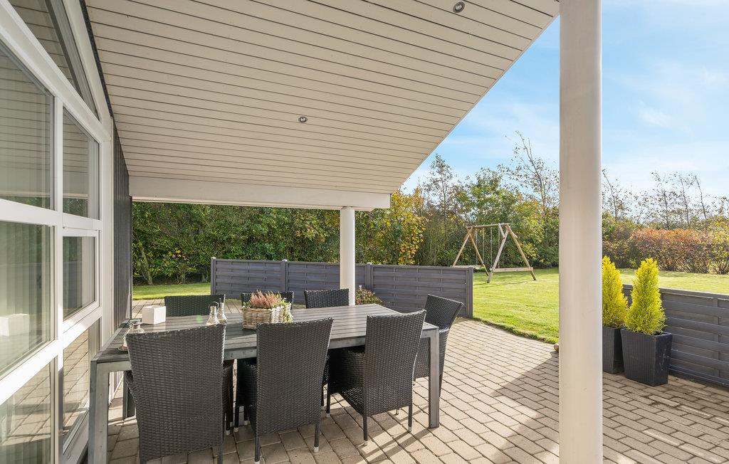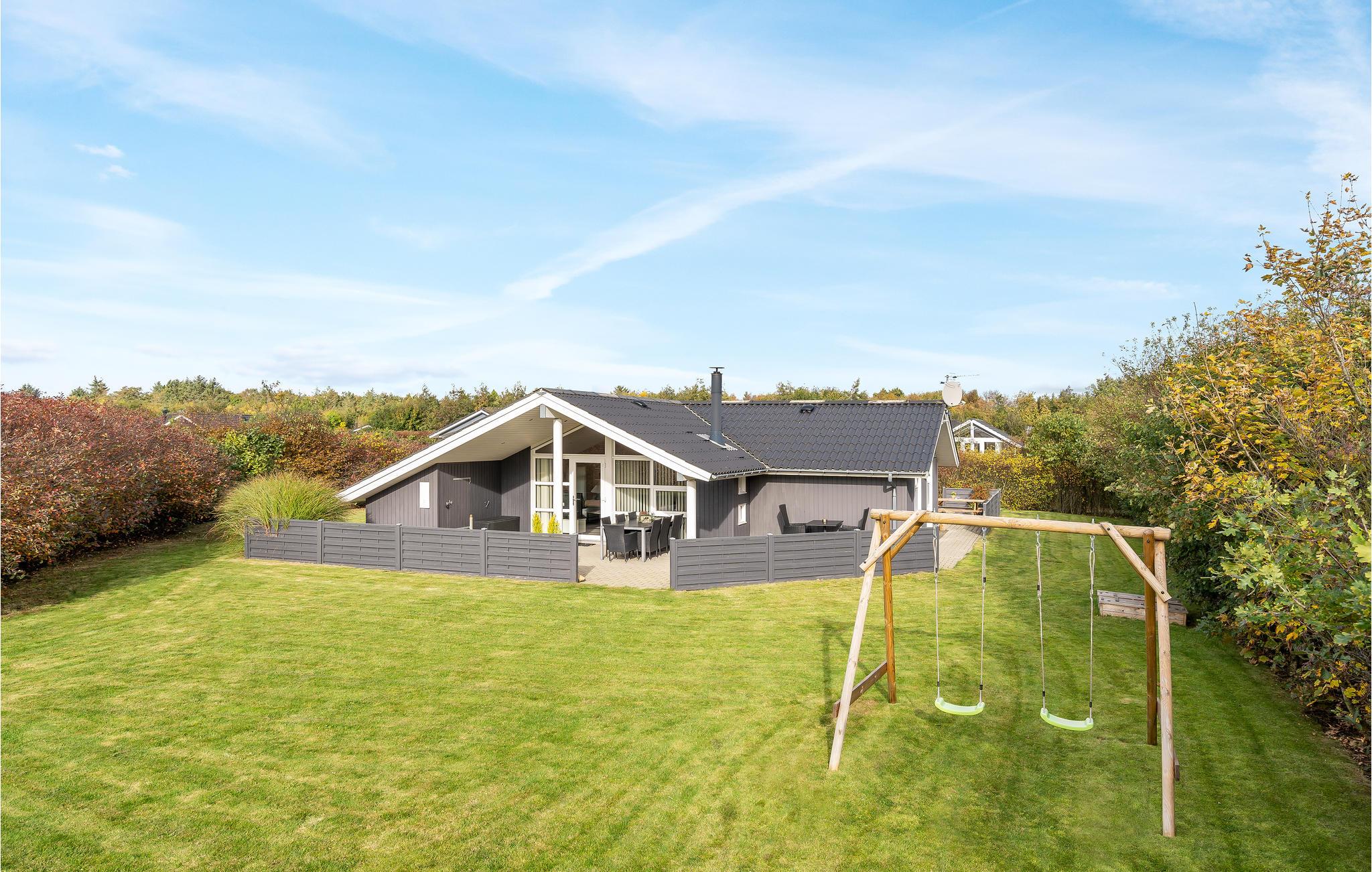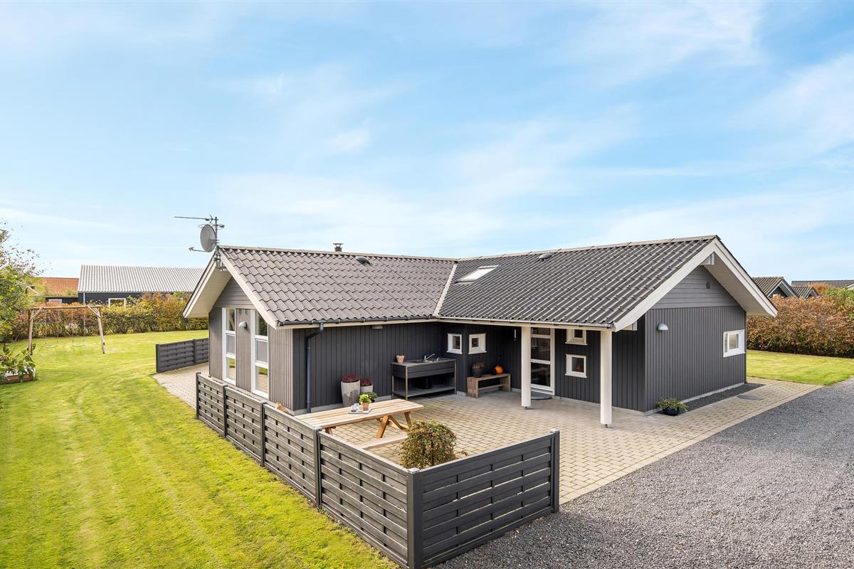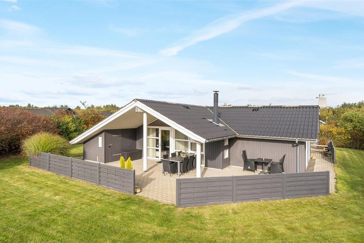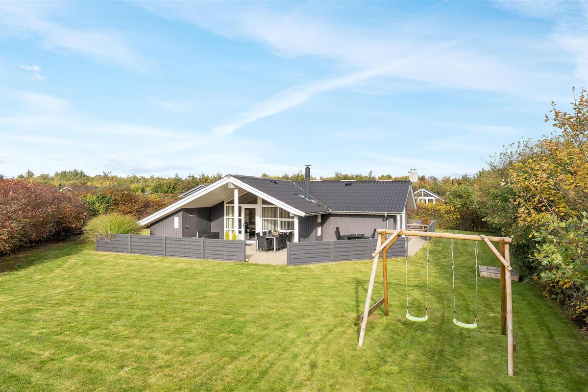 Dit mooie vakantiehuis is bijzonder geschikt voor een ontspannen vakantie. Het is van alle gemakken voorzien en ligt aan het einde van een doodlopende weg en volledig vrij van verkeerslawaai. Het ongestoorde perceel met luwte en de drie terrassen zorgen ervoor dat je echt van de zon kunt genieten. Het huis ligt dicht bij de Fahl herberg, het Vikinge dorp Vikinge-landsby en 800 meter van het fjord. De omgeving is ideaal om te wandelen, hiken en fietsen. Het Blåbjerg MTB-centrum ligt op slechts 10 km afstand. De bruisende Noordzee ligt op slechts 8 km afstand.