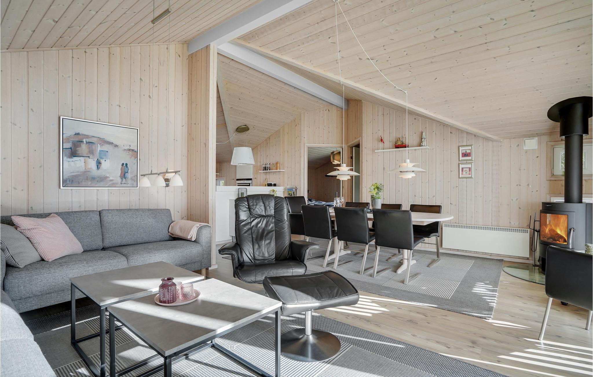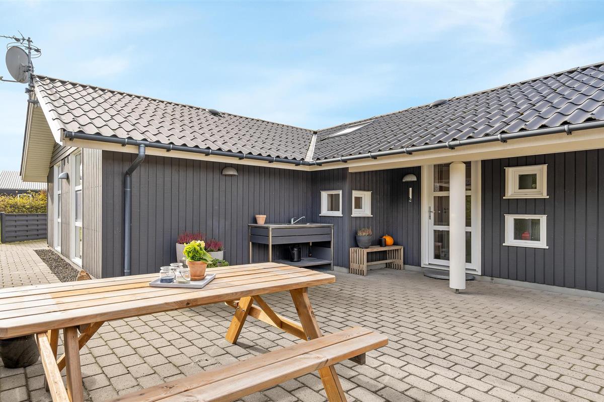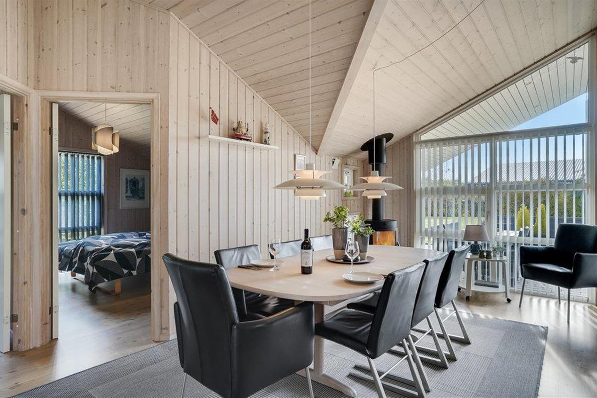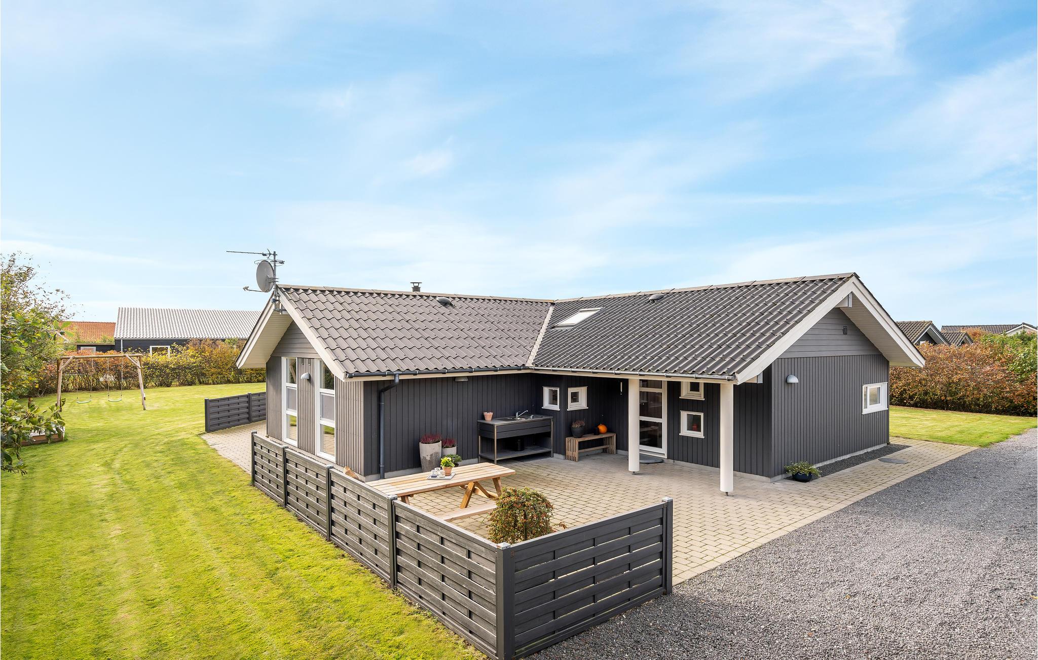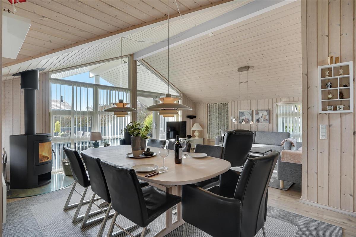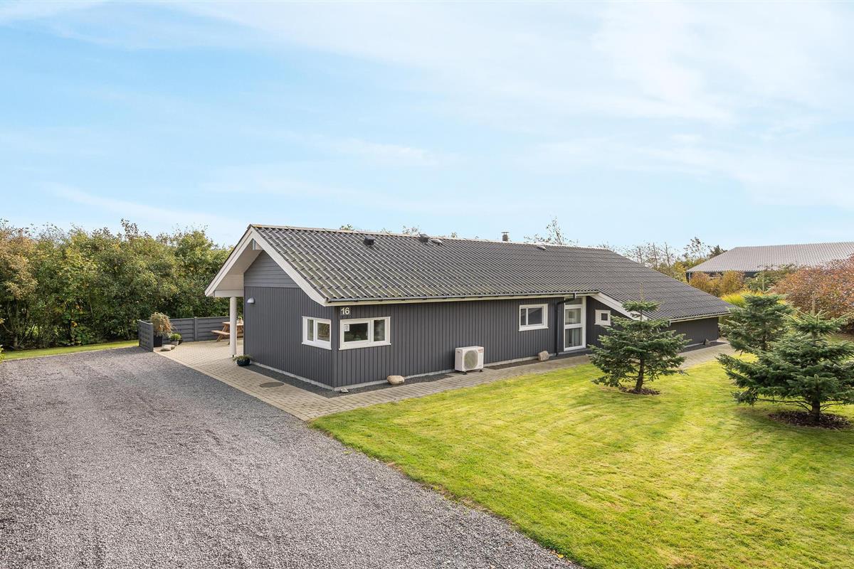 Dit mooie vakantiehuis is bijzonder geschikt voor een ontspannen vakantie. Het is van alle gemakken voorzien en ligt aan het einde van een doodlopende weg en volledig vrij van verkeerslawaai. Het ongestoorde perceel met luwte en de drie terrassen zorgen ervoor dat je echt van de zon kunt genieten. Het huis ligt dicht bij de Fahl herberg, het Vikinge dorp Vikinge-landsby en 800 meter van het fjord. De omgeving is ideaal om te wandelen, hiken en fietsen. Het Blåbjerg MTB-centrum ligt op slechts 10 km afstand. De bruisende Noordzee ligt op slechts 8 km afstand.