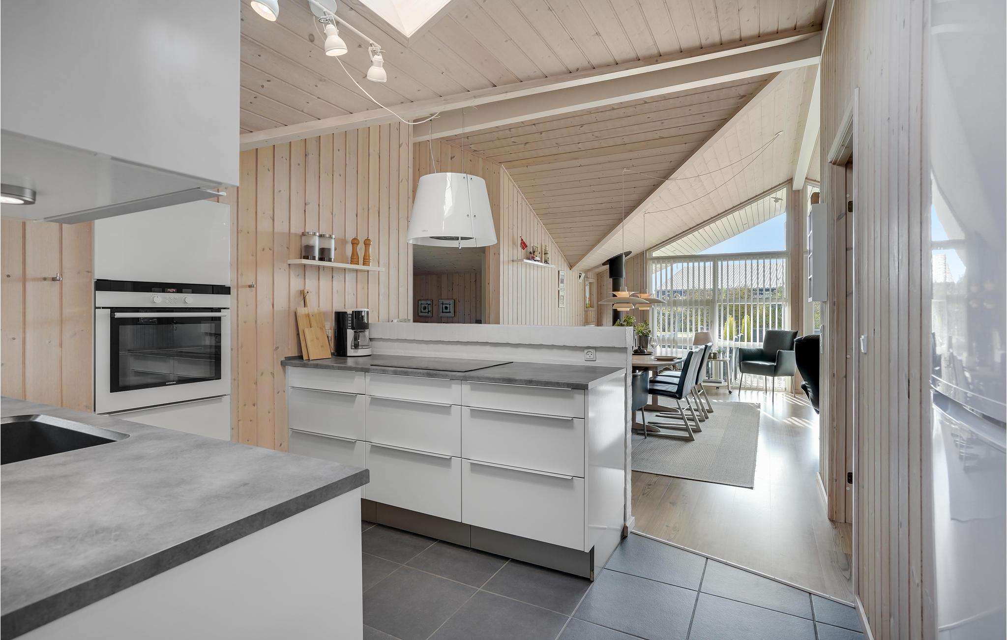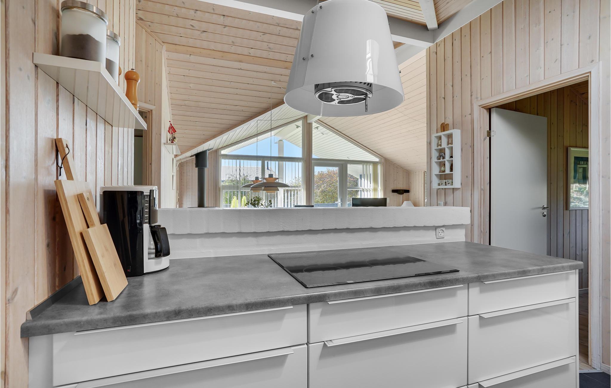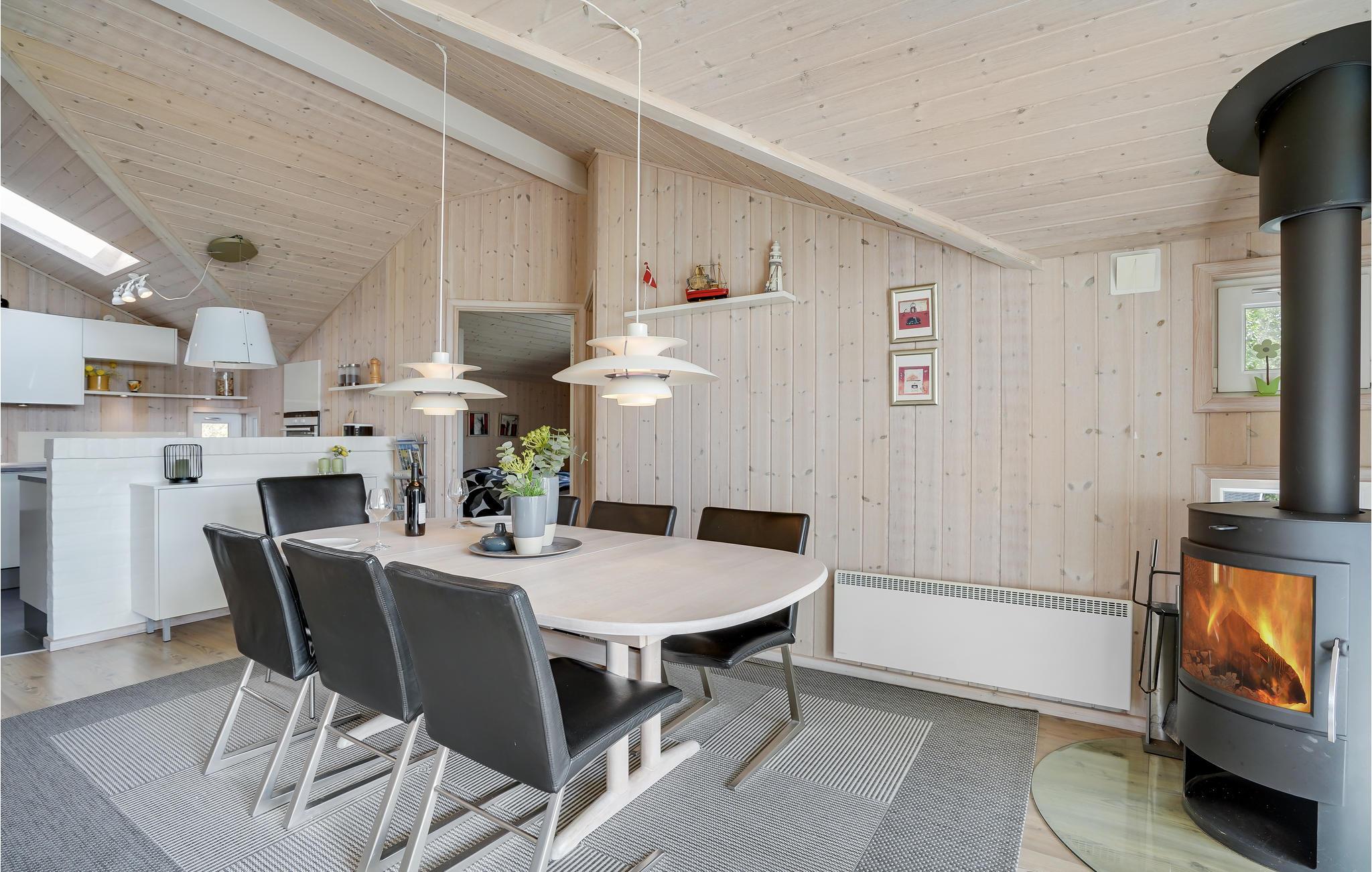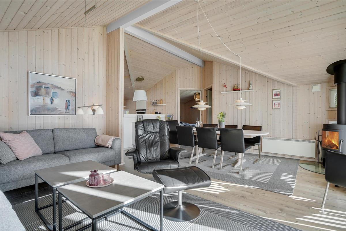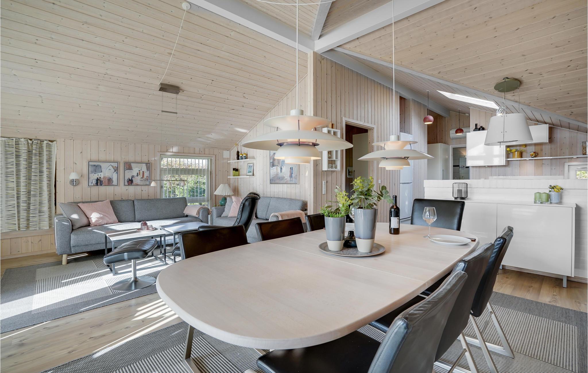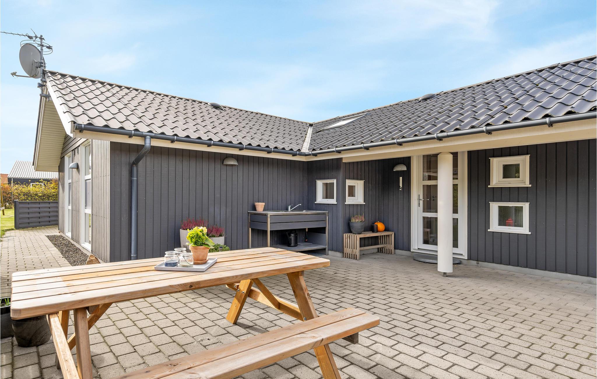 Dit mooie vakantiehuis is bijzonder geschikt voor een ontspannen vakantie. Het is van alle gemakken voorzien en ligt aan het einde van een doodlopende weg en volledig vrij van verkeerslawaai. Het ongestoorde perceel met luwte en de drie terrassen zorgen ervoor dat je echt van de zon kunt genieten. Het huis ligt dicht bij de Fahl herberg, het Vikinge dorp Vikinge-landsby en 800 meter van het fjord. De omgeving is ideaal om te wandelen, hiken en fietsen. Het Blåbjerg MTB-centrum ligt op slechts 10 km afstand. De bruisende Noordzee ligt op slechts 8 km afstand.