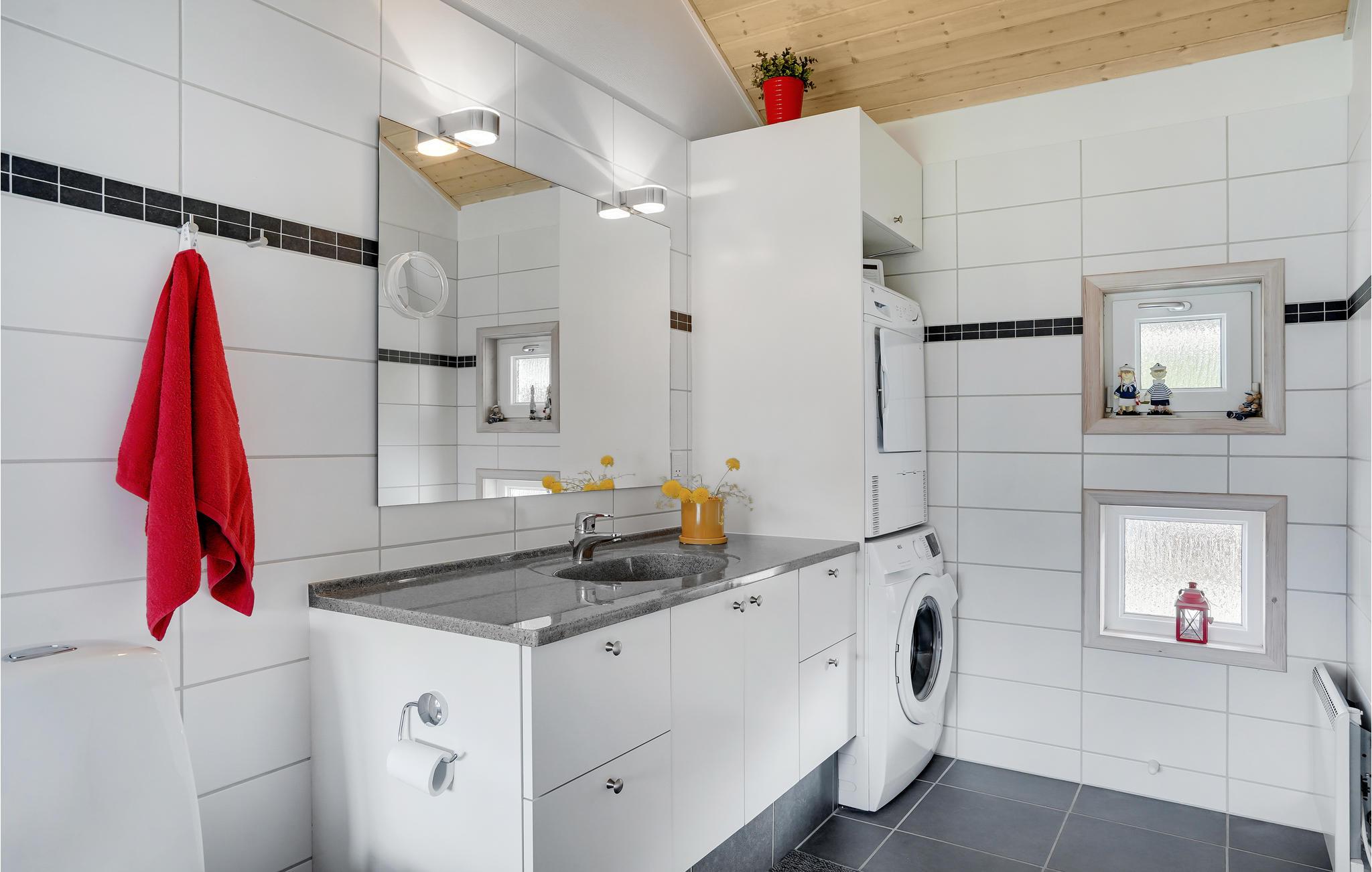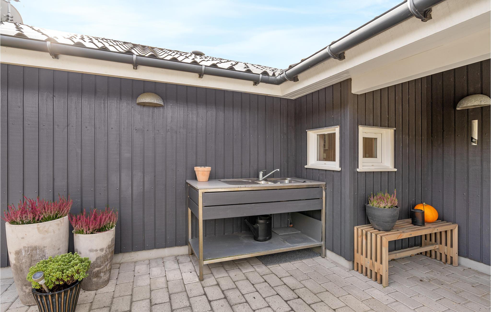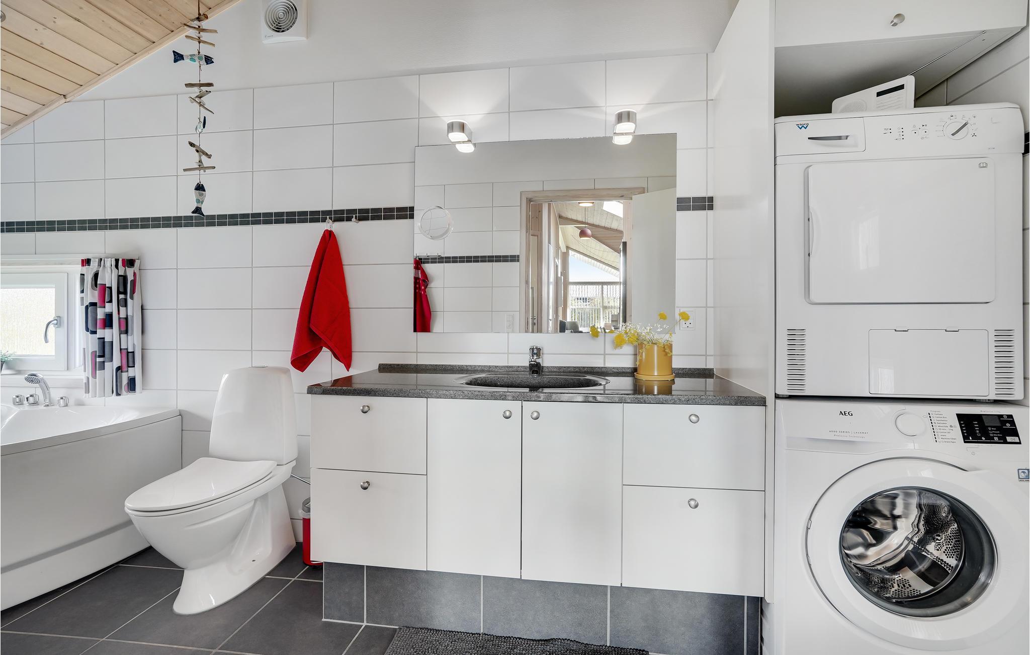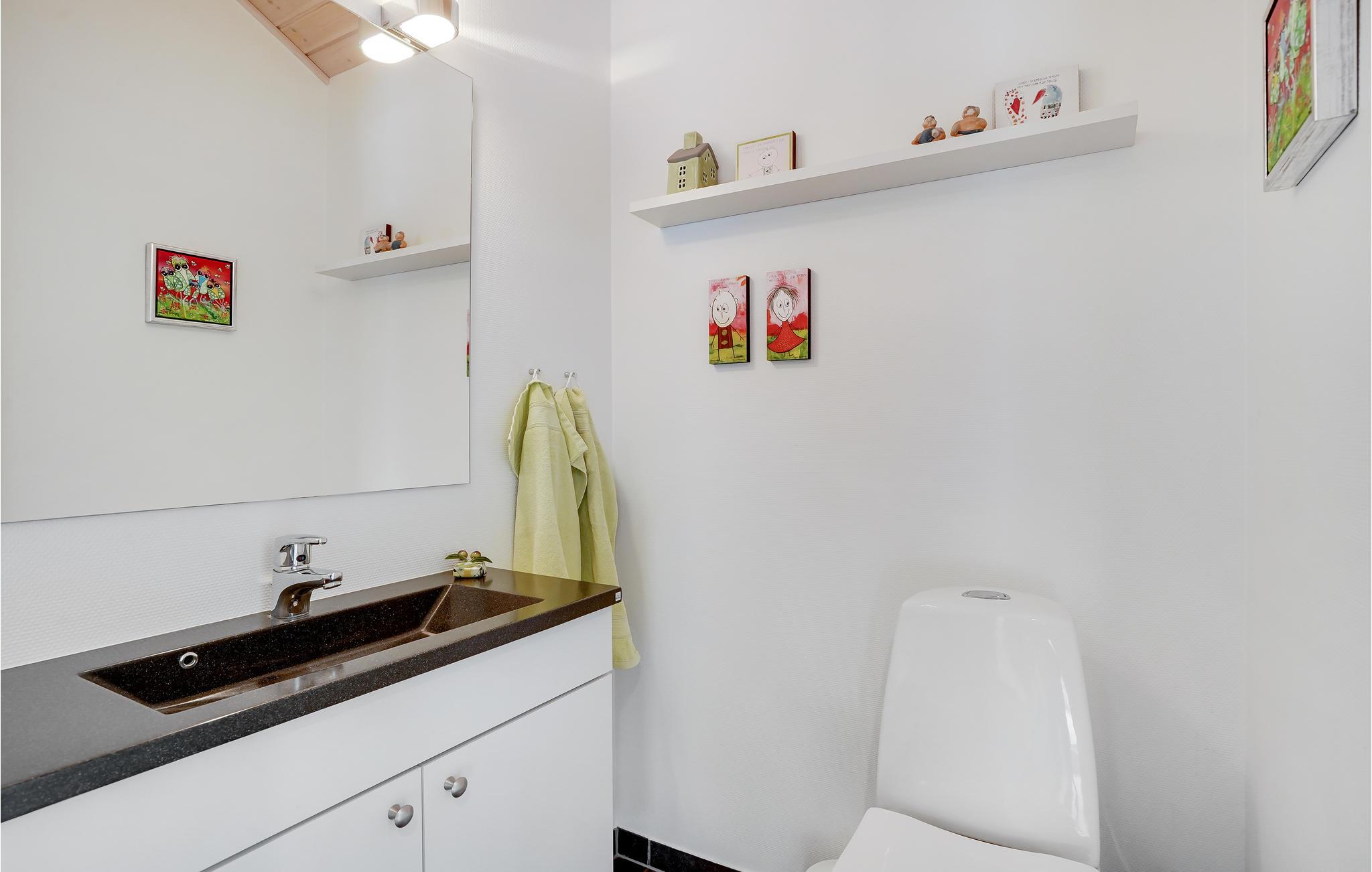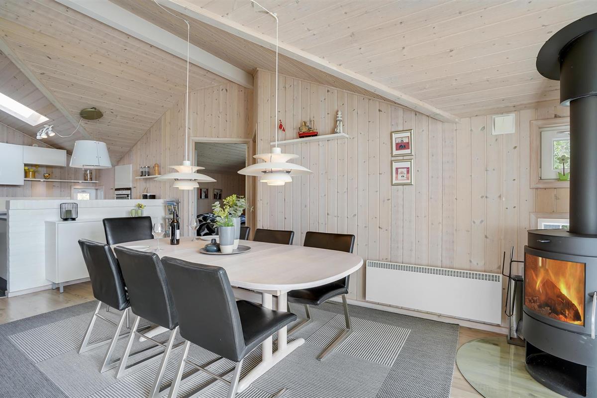 Dit mooie vakantiehuis is bijzonder geschikt voor een ontspannen vakantie. Het is van alle gemakken voorzien en ligt aan het einde van een doodlopende weg en volledig vrij van verkeerslawaai. Het ongestoorde perceel met luwte en de drie terrassen zorgen ervoor dat je echt van de zon kunt genieten. Het huis ligt dicht bij de Fahl herberg, het Vikinge dorp Vikinge-landsby en 800 meter van het fjord. De omgeving is ideaal om te wandelen, hiken en fietsen. Het Blåbjerg MTB-centrum ligt op slechts 10 km afstand. De bruisende Noordzee ligt op slechts 8 km afstand.