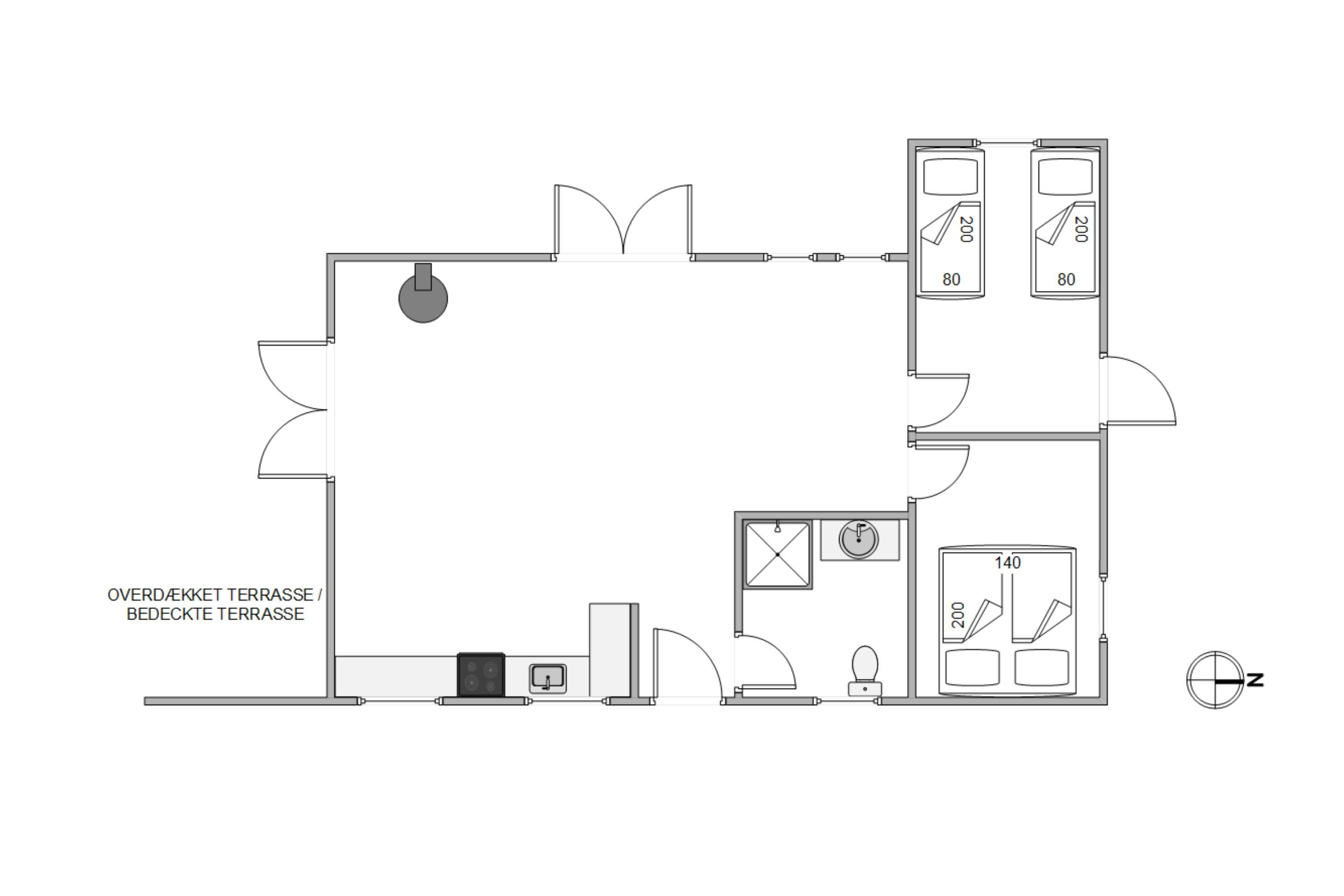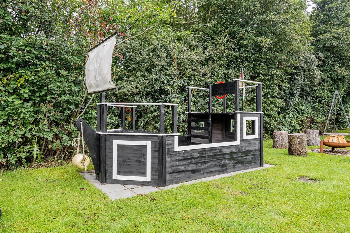 The covered terrace is ideal for comfortable outdoor living in any weather – whether for breakfast in the morning sun or a barbecue with family and friends. The sandpit ensures that even the youngest guests have plenty of fun.
