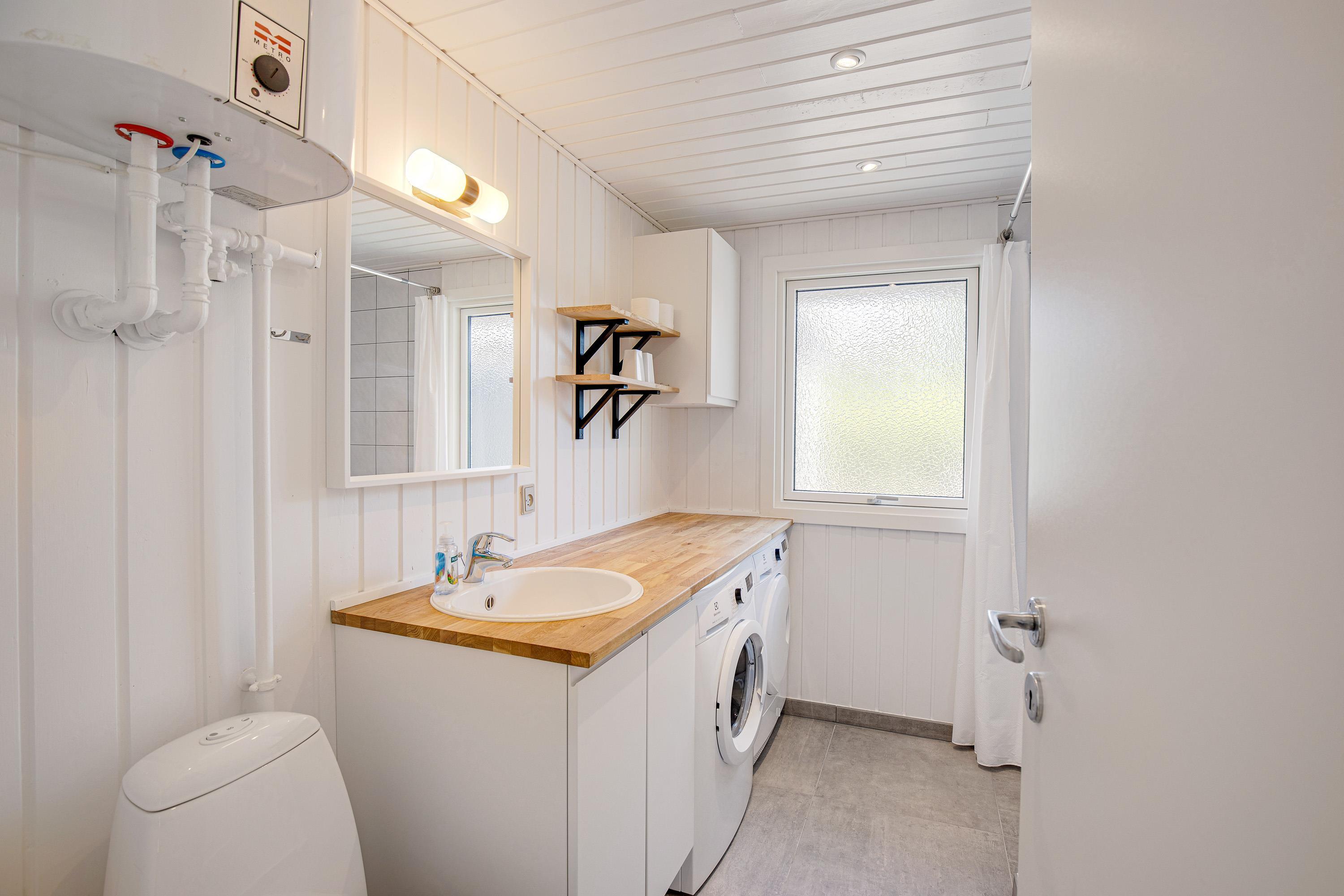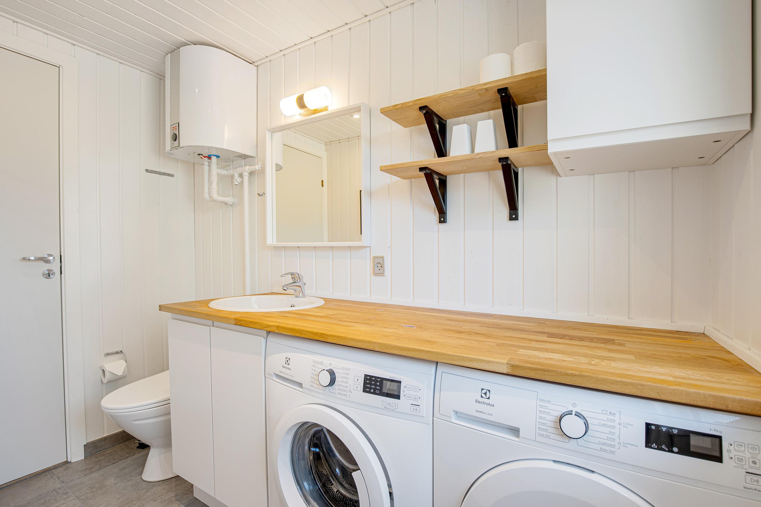The bathroom features underfloor heating, ensuring warm feet throughout your stay. A washing machine and tumble dryer are also provided for added convenience.