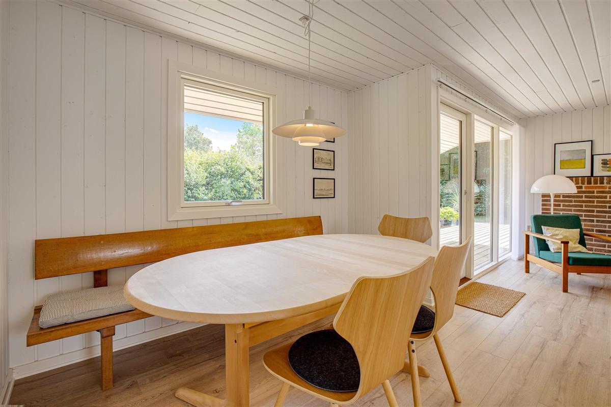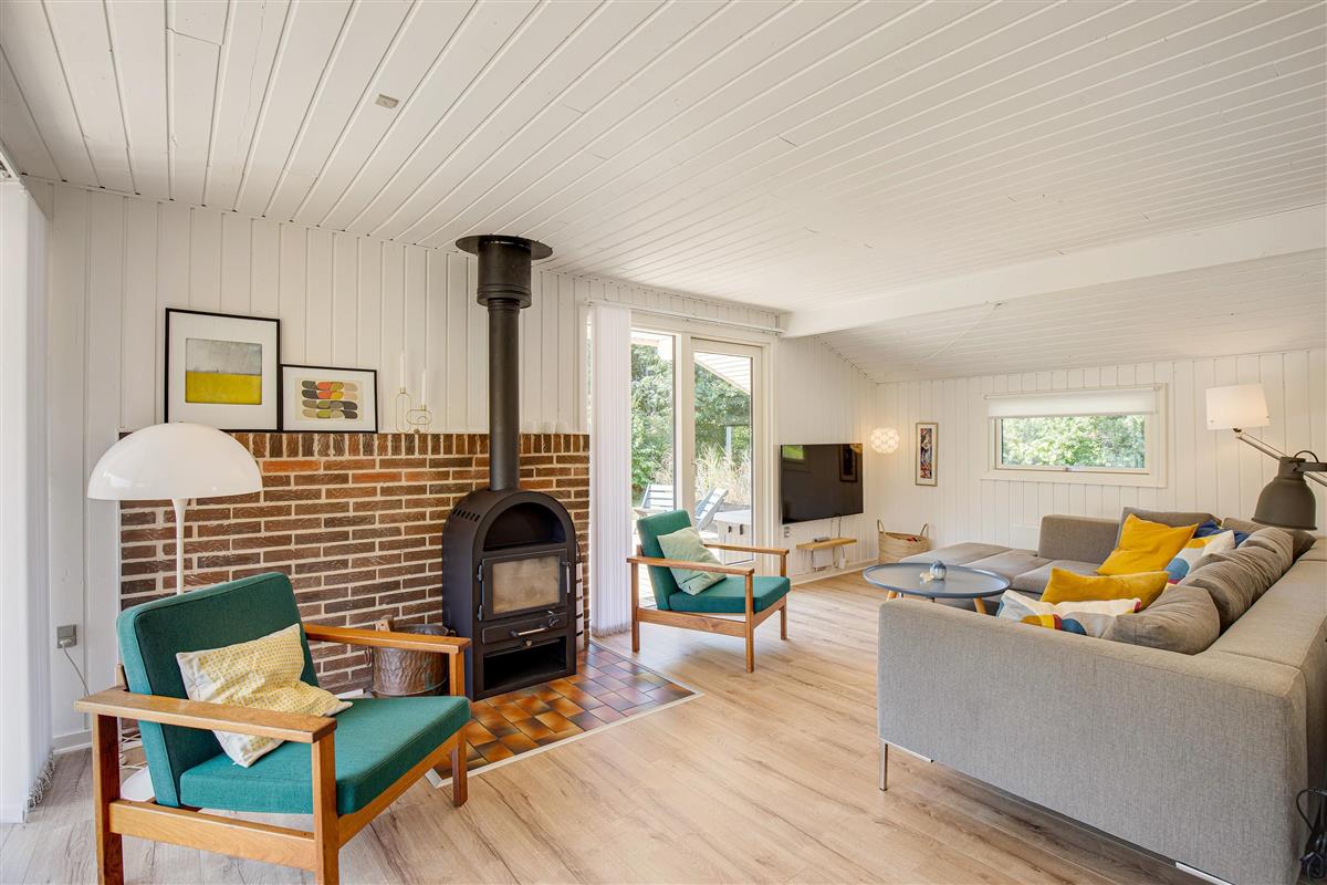 The holiday home area is idyllically situated among trees and shrubs, surrounded by verdant nature. Here you can find relaxation in peaceful surroundings. Just steps away, a walking path through the area invites you on short hikes and exploratory walks. In Bork Havn, you're not only close to the fjord but also just minutes from Holmsland Klit, with its impressive dunes and endless beaches.