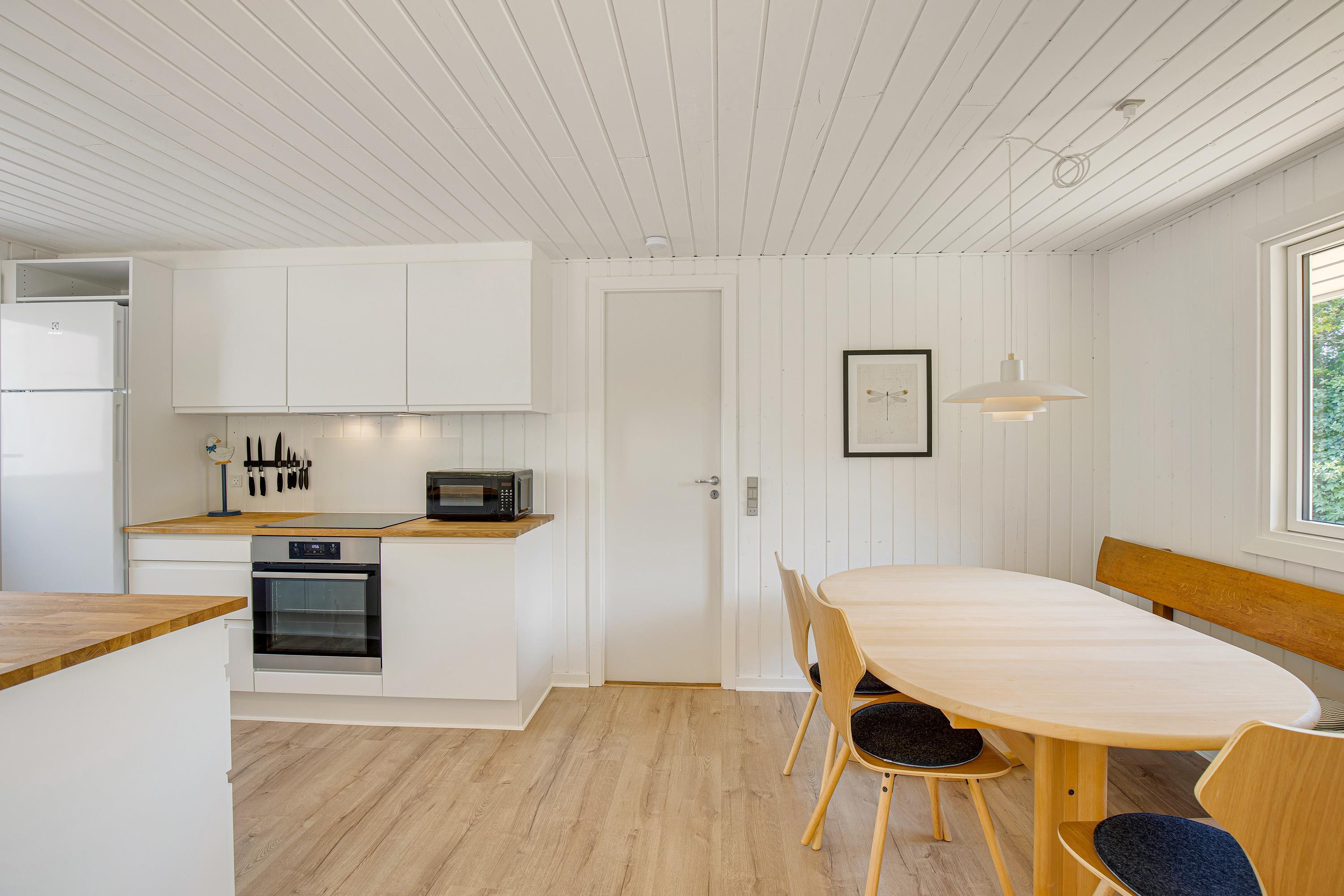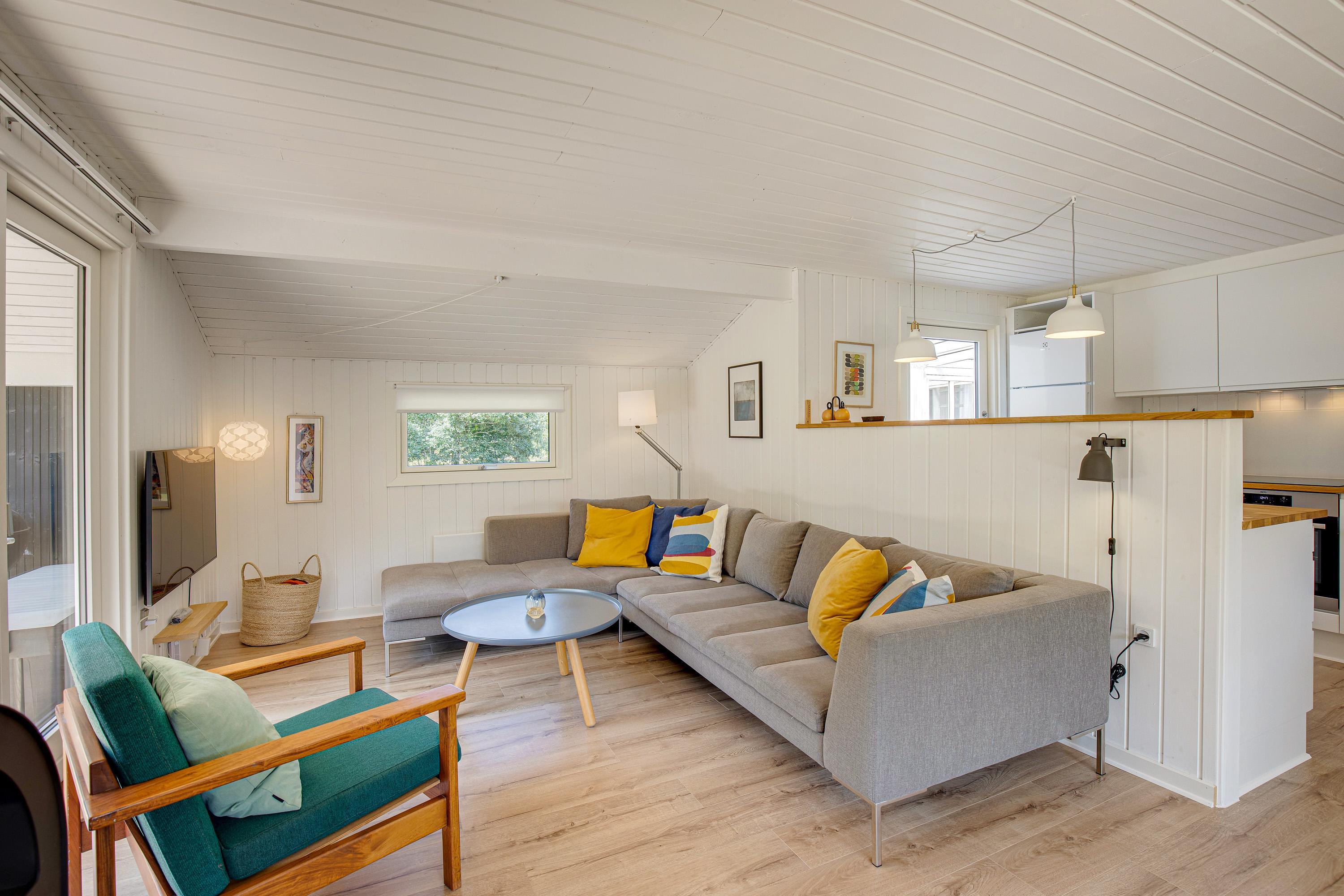The holiday home accommodates up to 6 people across 3 comfortable bedrooms. One is particularly suitable for children, featuring bunk beds. The open-plan living area, combined with the kitchen and dining space, is perfect for cooking and relaxing together. For evening entertainment, you can use the provided Chromecast to watch your favourite shows.