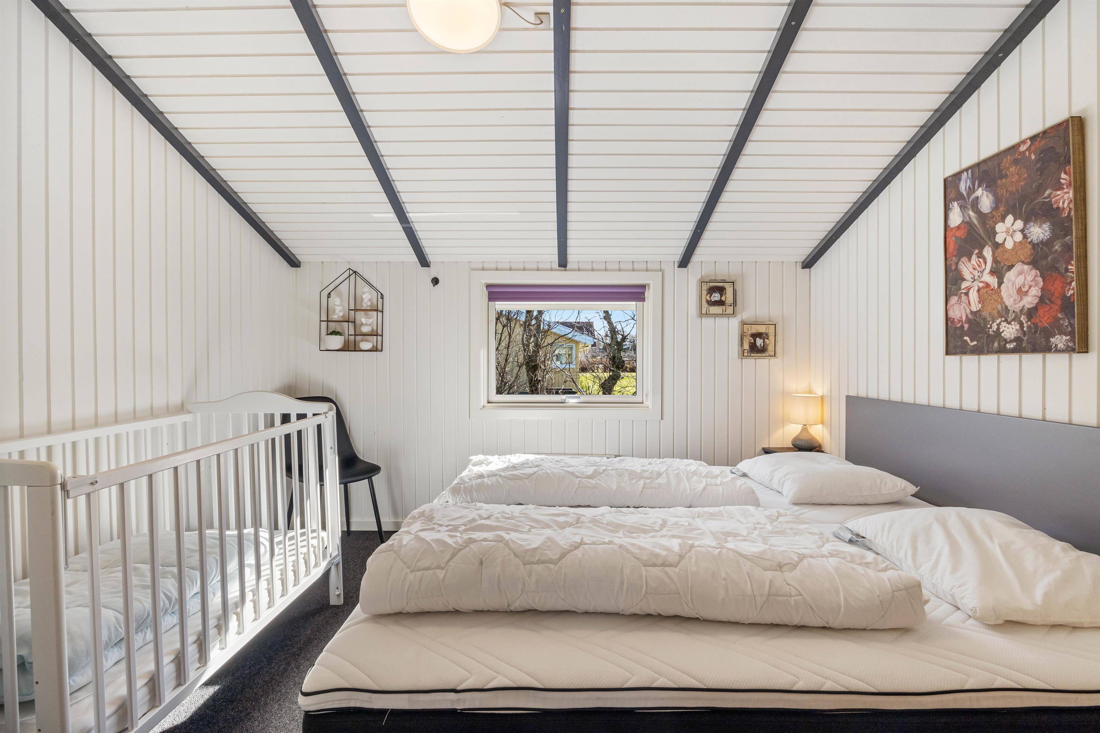 As soon as you enter the holiday home, you'll slip straight into holiday mode. The hallway leads to three bedrooms, two with double beds and one with twin beds. The modern bathroom features underfloor heating, a shower, washing machine and tumble dryer – perfect for families with children.