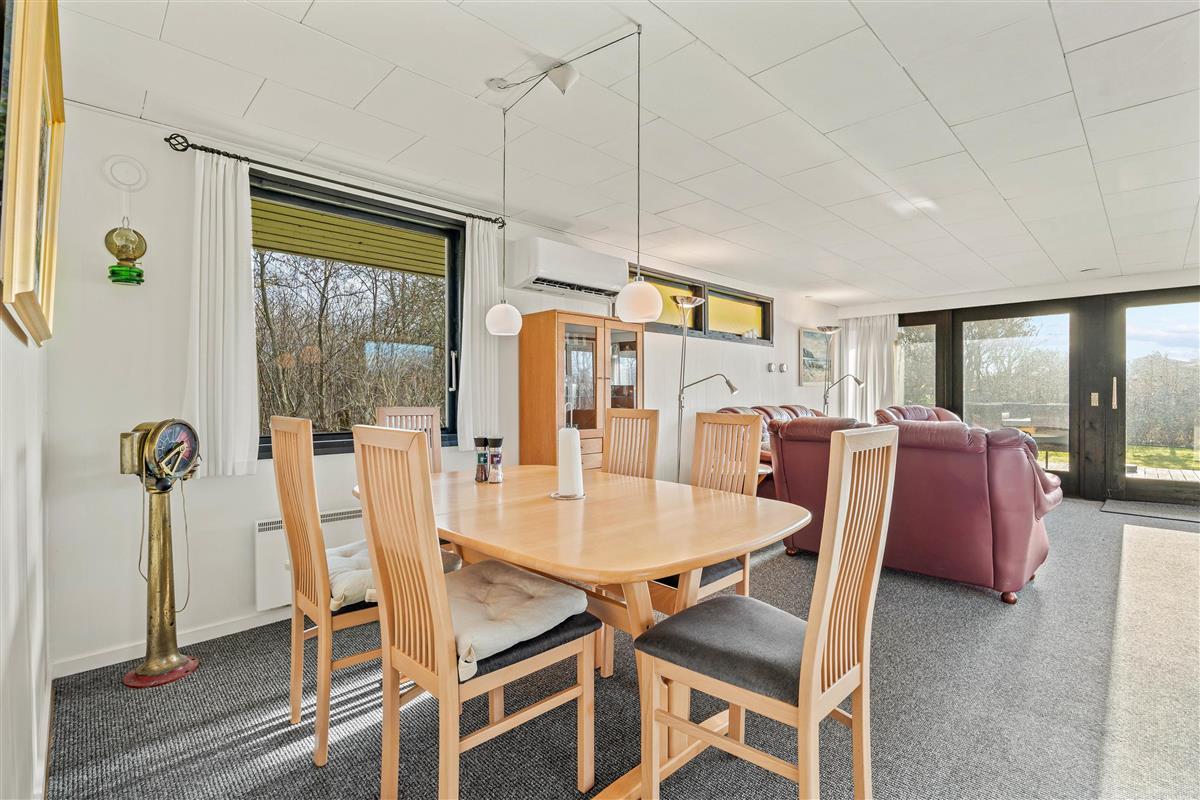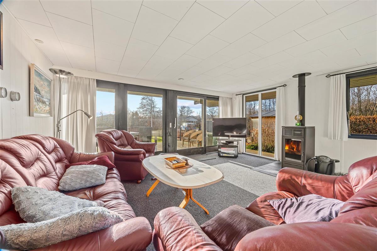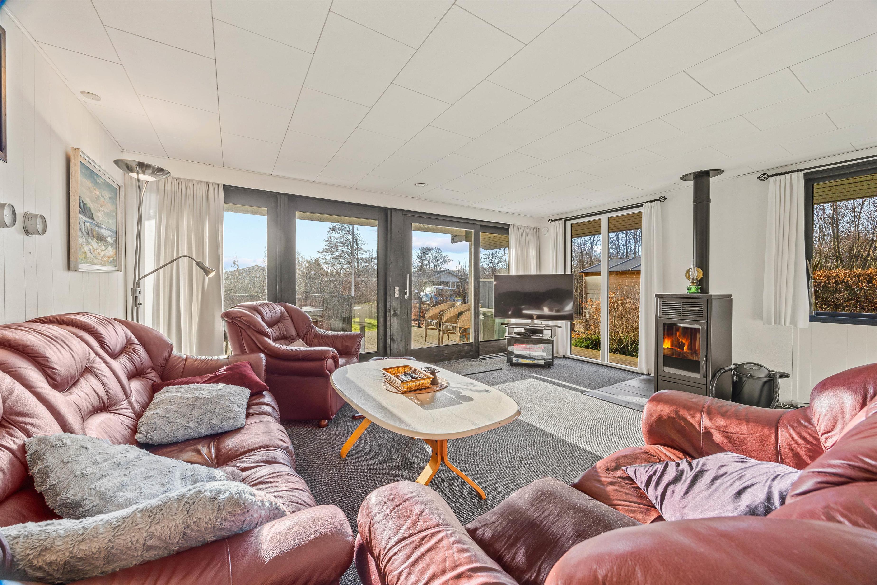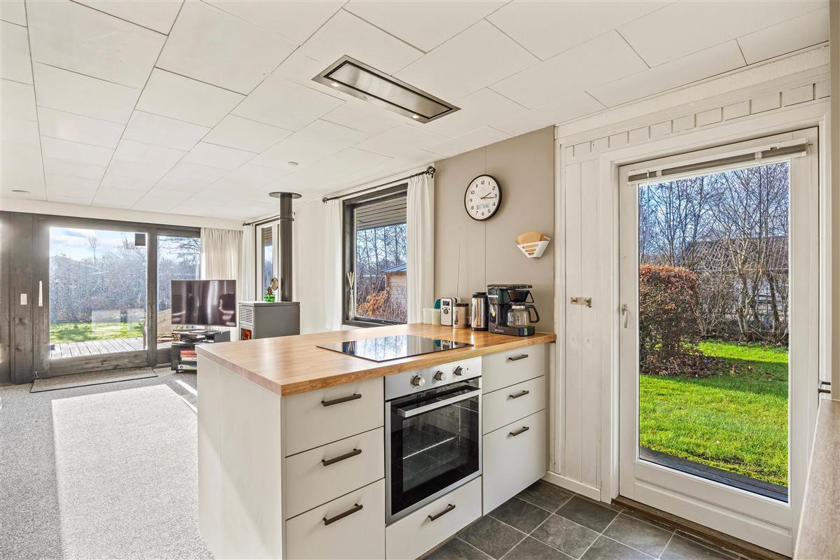 The other section of the holiday home features a spacious living area with an integrated kitchen, renovated in 2023, where the whole family can gather to spend quality time together. Whether cooking together, enjoying a cosy games night at the dining table or watching films - the gentle warmth from the pellet stove creates a wonderfully comfortable atmosphere. Throughout the holiday home, numerous windows flood the rooms with natural light, creating an open and welcoming feel. You can enjoy lovely views of the outdoors from every corner.